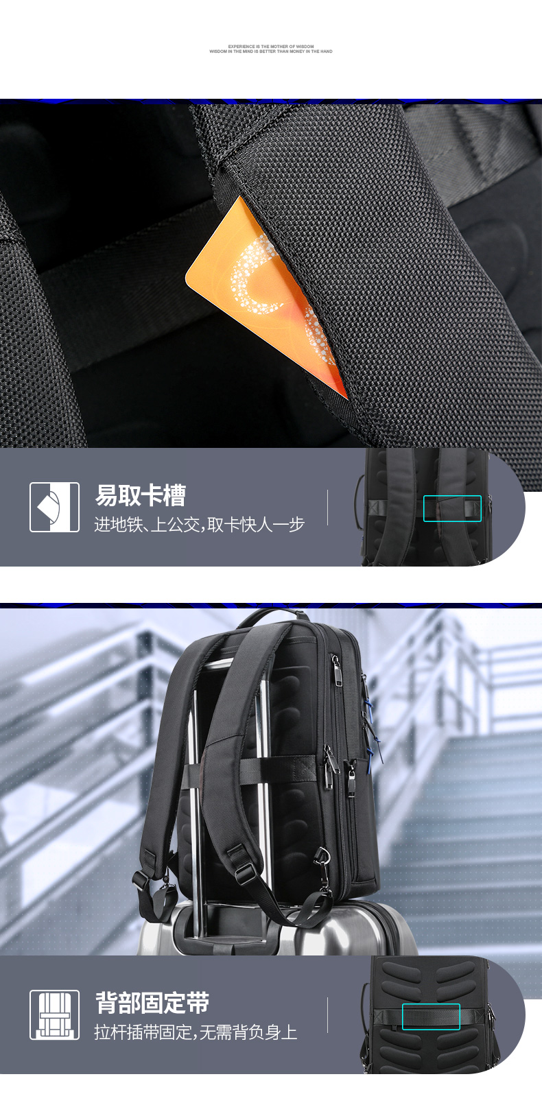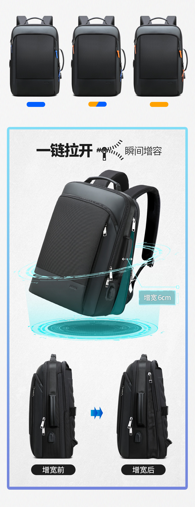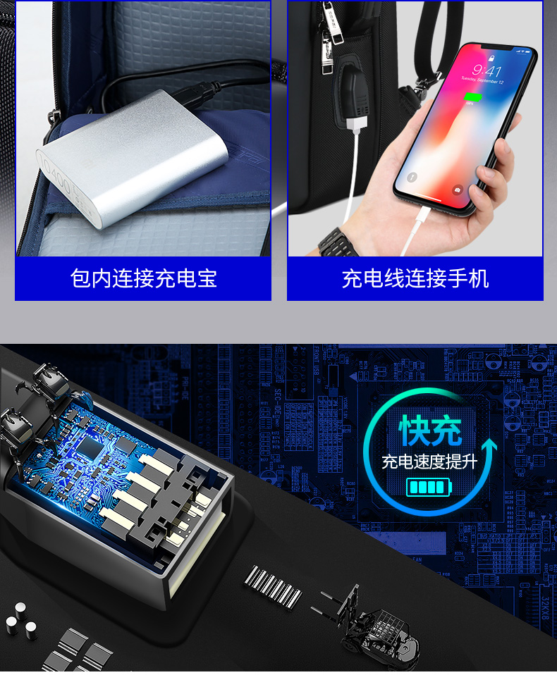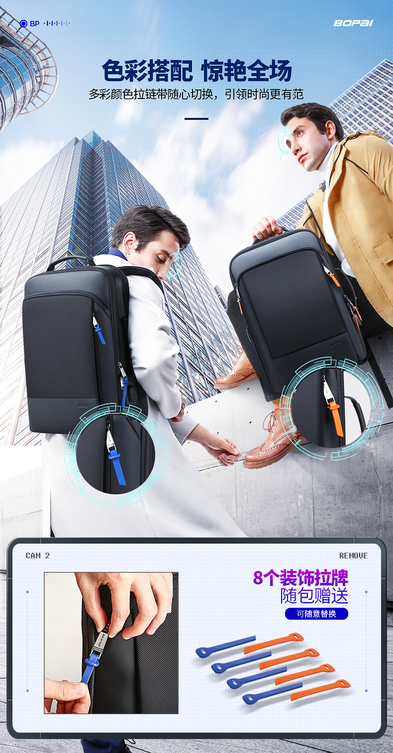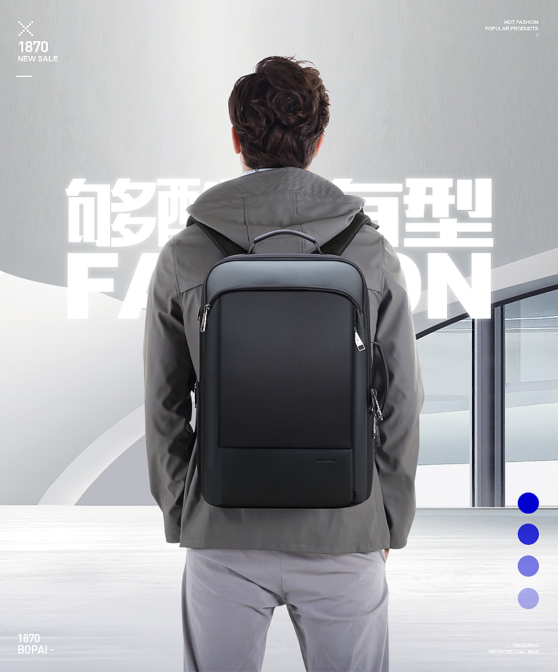 博牌Bopai商务双肩包 背包男充电防盗15英寸电脑包 多功能出差帆布旅行包韩版 黑色61-07311