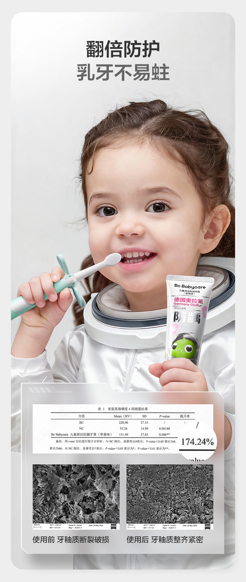 babycare奥拉氟儿童牙膏含氟防龋齿婴宝宝1岁+