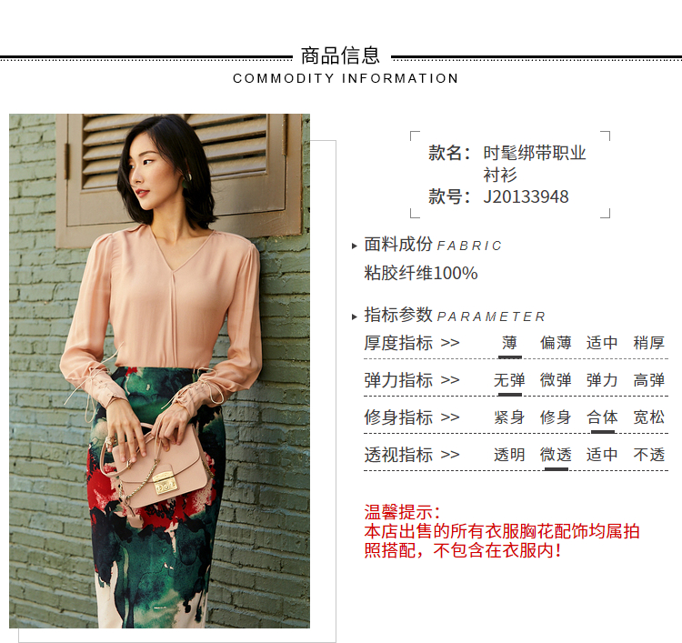 孤品-颈袖添香新款ol衬衫修身时尚袖口绑带女士衬衣J20133948A(四季可穿)不退可换