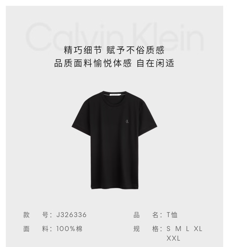 CKJ新款男士休闲简约印花丝光棉光滑短袖T恤J326336