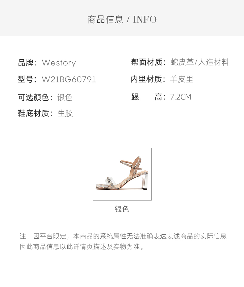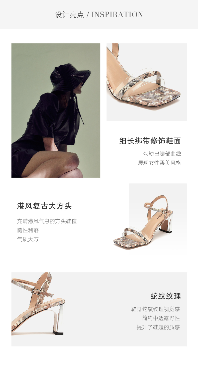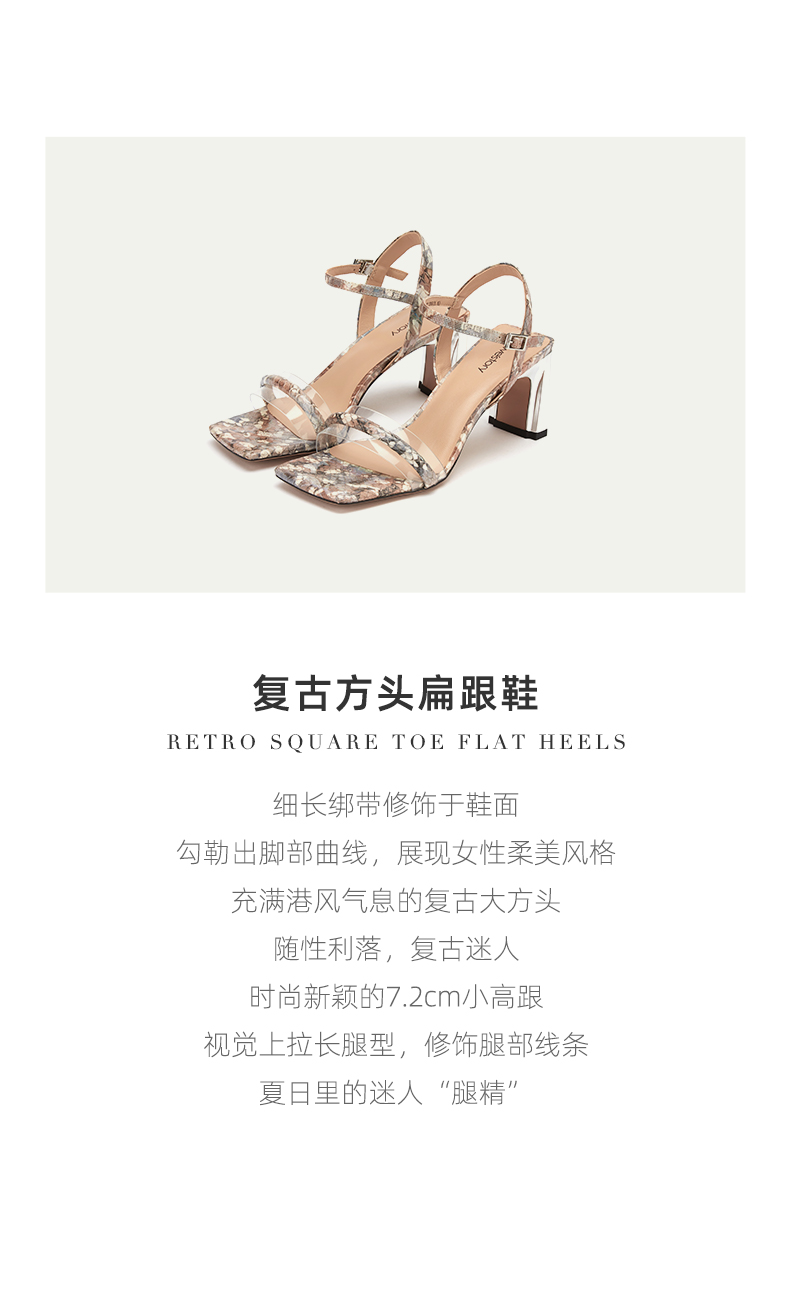 westory女鞋2021夏季新款漆皮方头高跟一字带凉鞋外穿W21BG60791