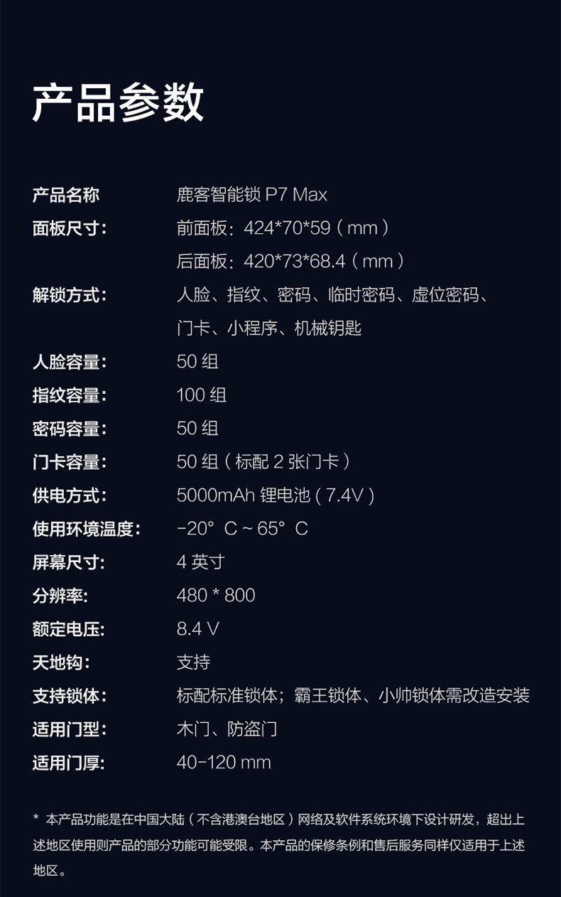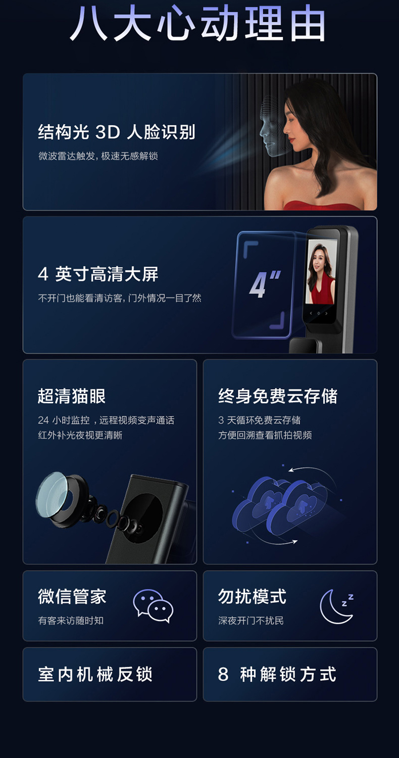 鹿客(LOOCK)P7 Max 结构光3D人脸识别 猫眼高清大屏 智能锁指纹锁密码锁 P7