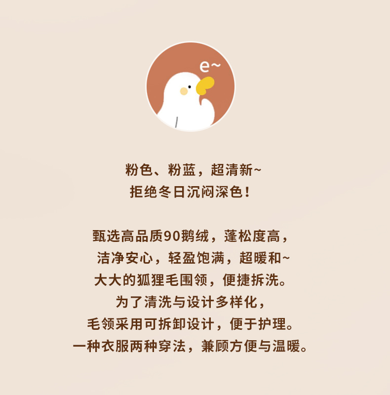 | 是否带帽子: 有帽不可拆 | 填充物: 白鹅绒 |