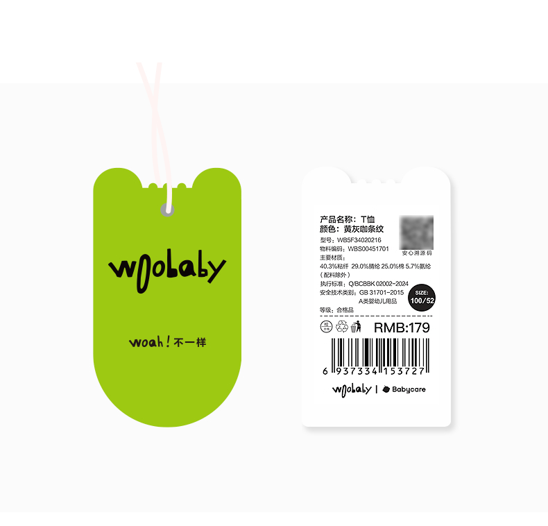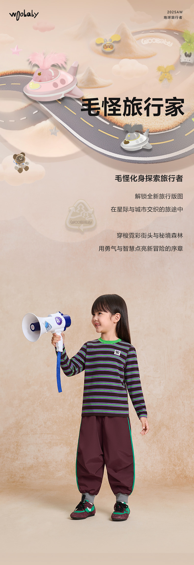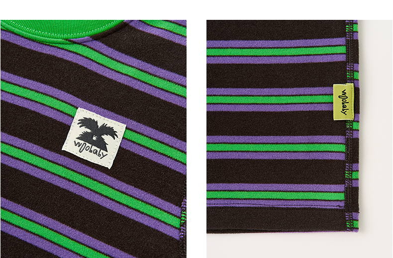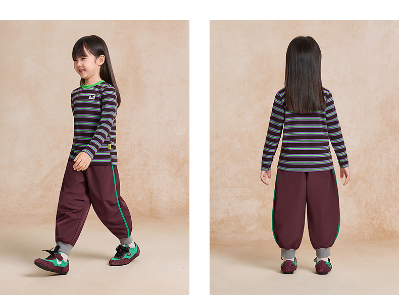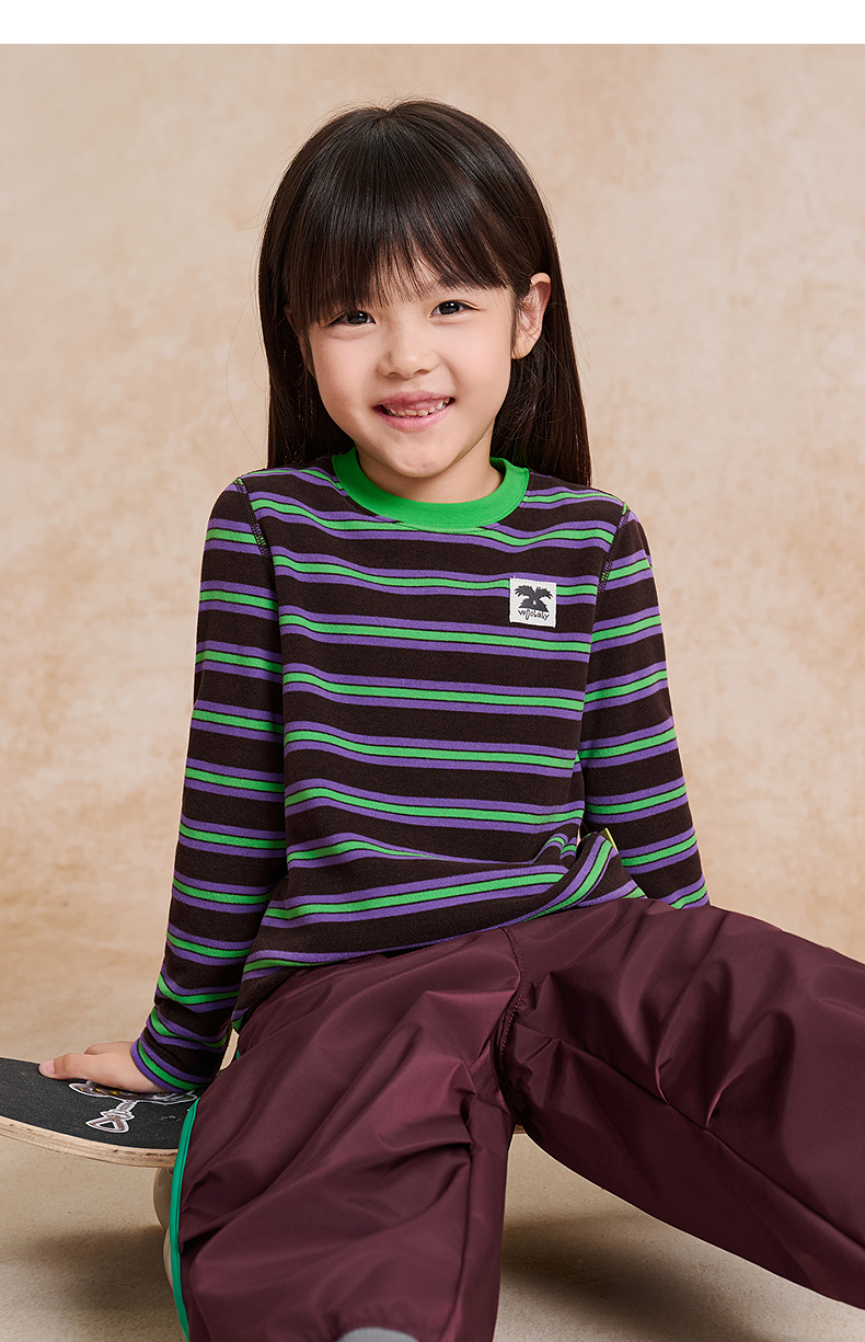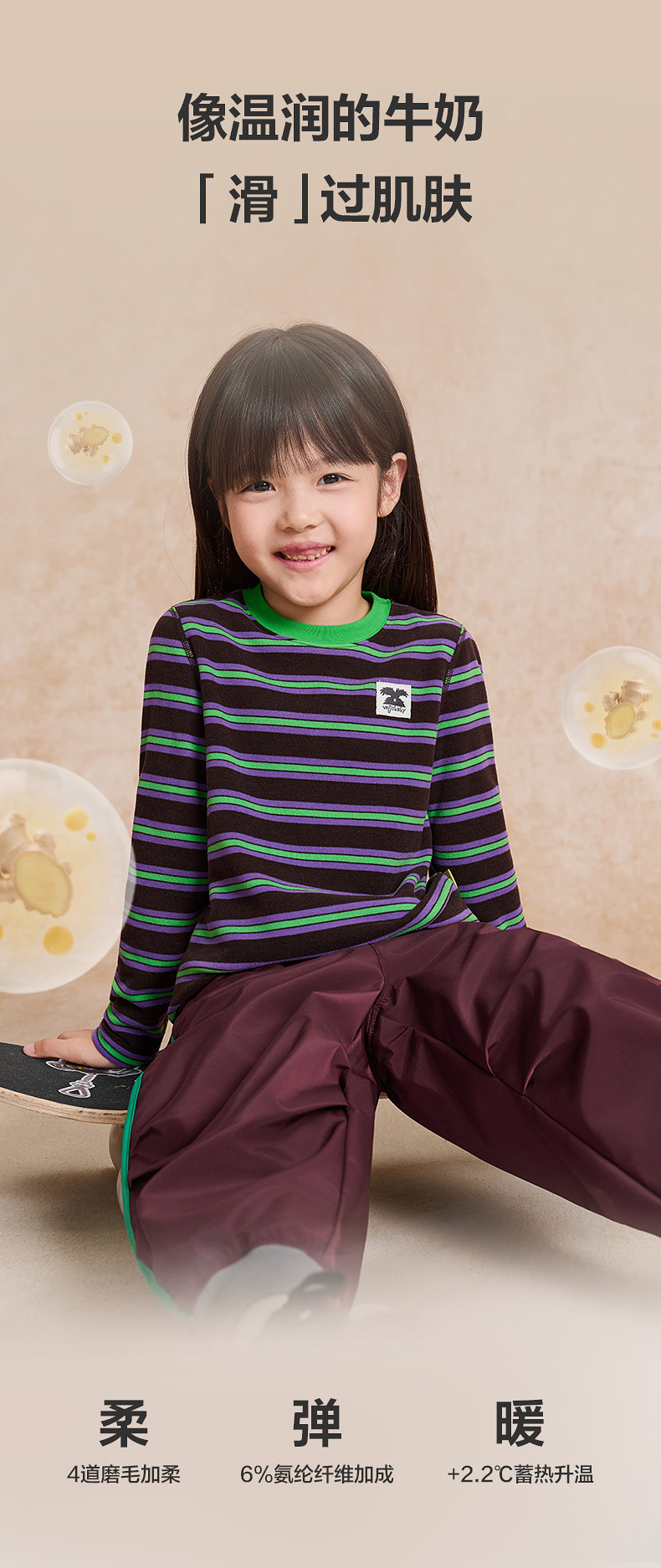 【woobaby】【远红外发热】儿童条纹T恤25秋新品男女童上衣磨毛柔软内搭