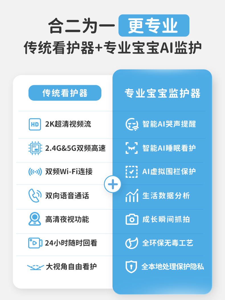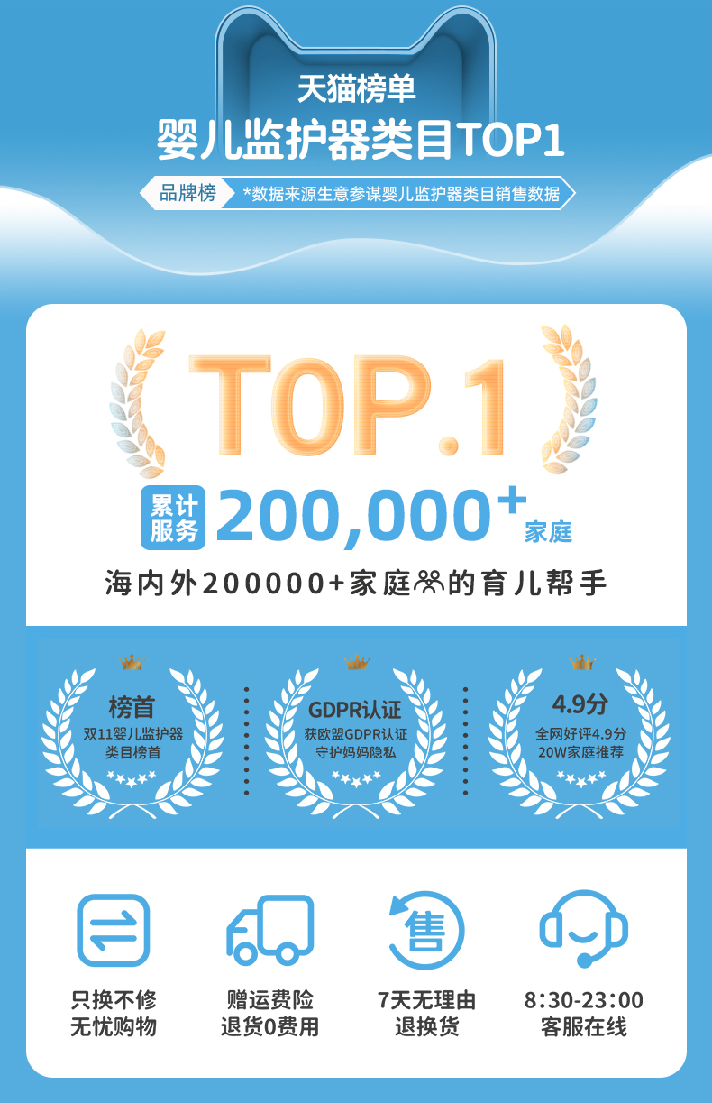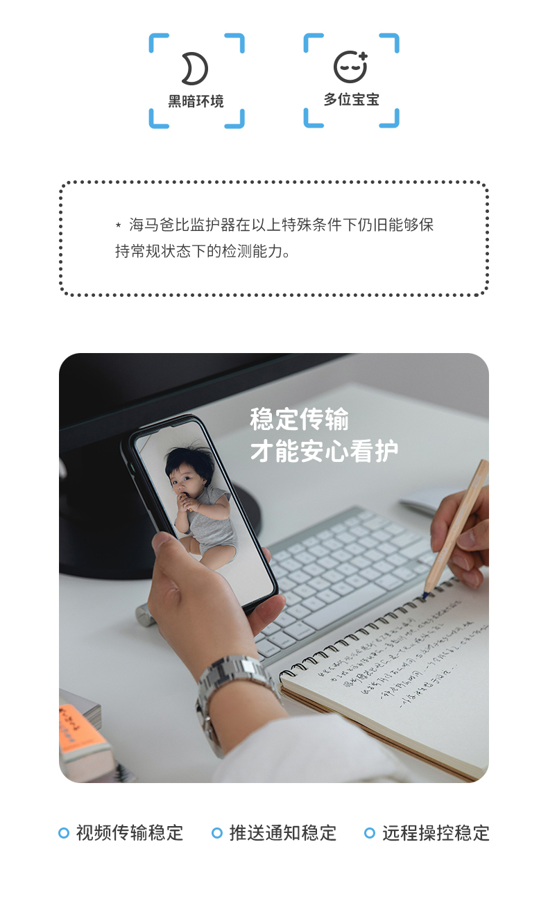 海马爸比AI婴儿监护器 Pro儿童监视器看护机哭声监听看娃神器(64G)