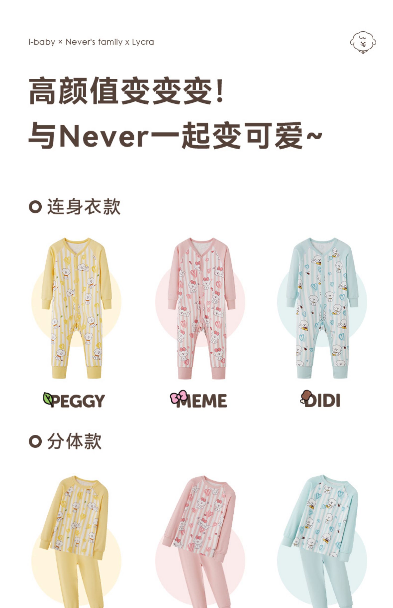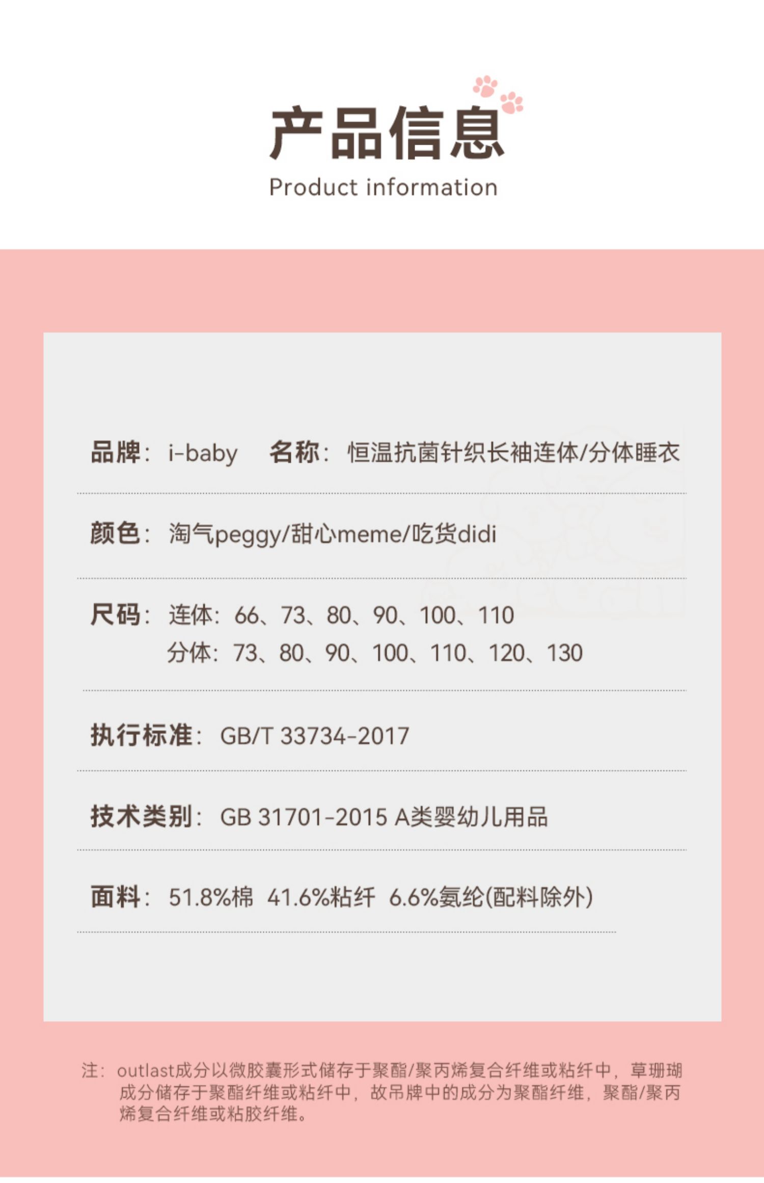 【99元任选3件 单件不退】i-baby/英伦宝贝&奈娃联名儿童恒温睡衣 婴幼儿连体内衣分体套装66码73码