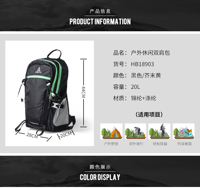 HUMTTO悍途 20L小型双肩登山包男女透气登山徒步包 QJHB18903