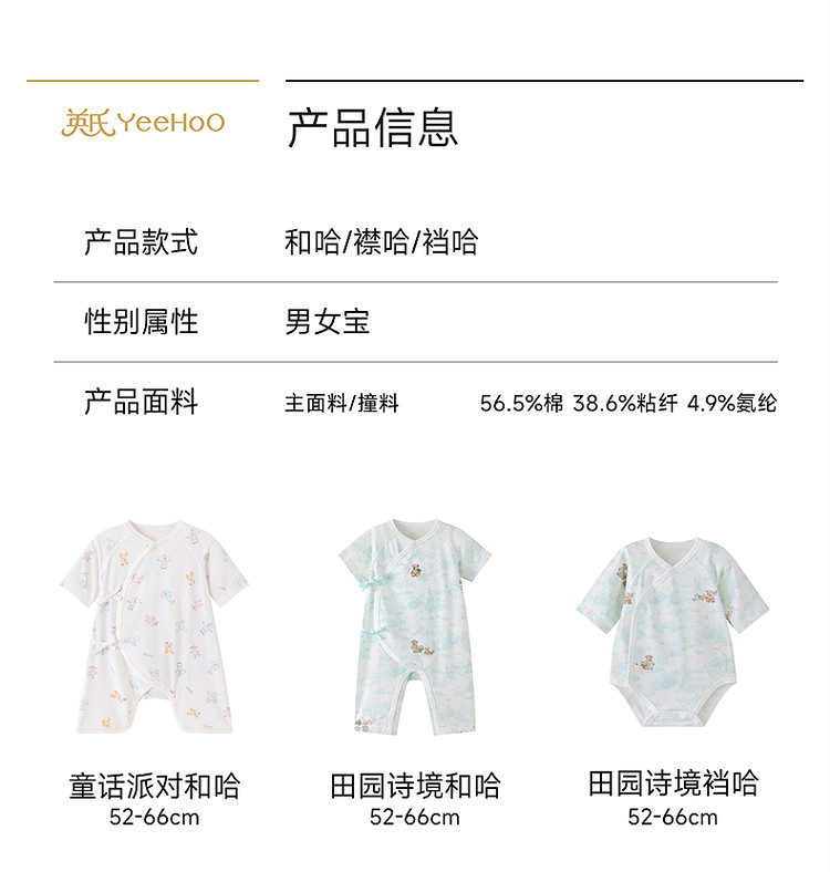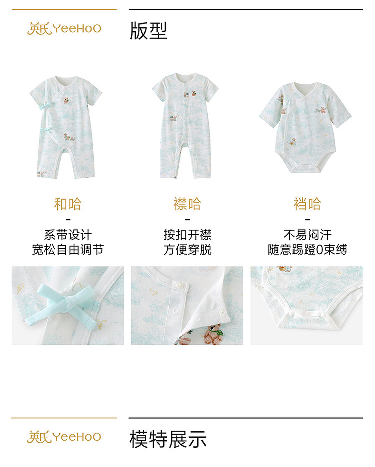 英氏益身棉婴儿连体衣宝宝夏季短袖哈衣防螨抗菌睡衣YLHBJ2S003A YLDBJ2S004A YLDBJ2S003A YLABJ2S004A
