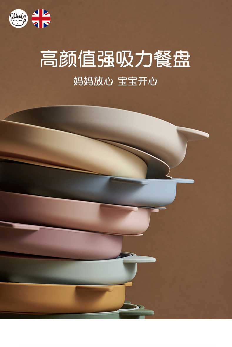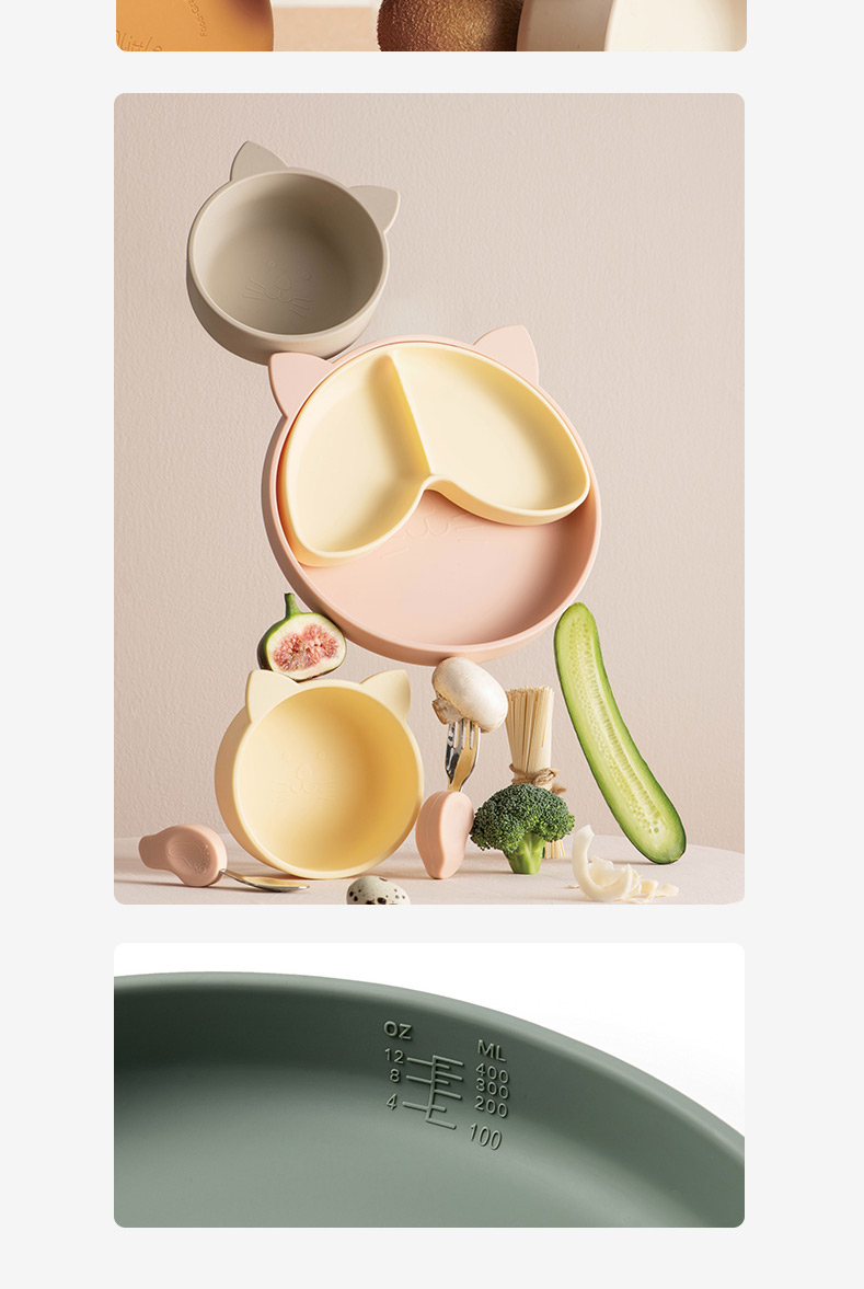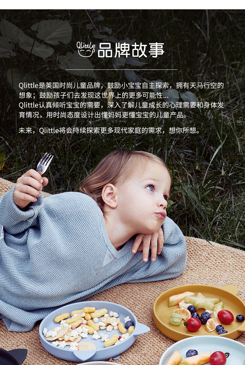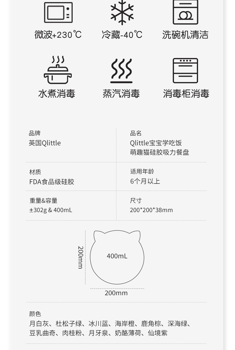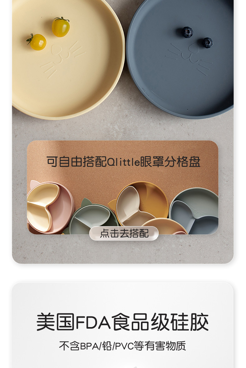 Qlittle硅胶盘 儿童宝宝学吃饭萌趣猫硅胶吸力分格餐盘食品级硅胶训练餐具 易清洗 6m+
