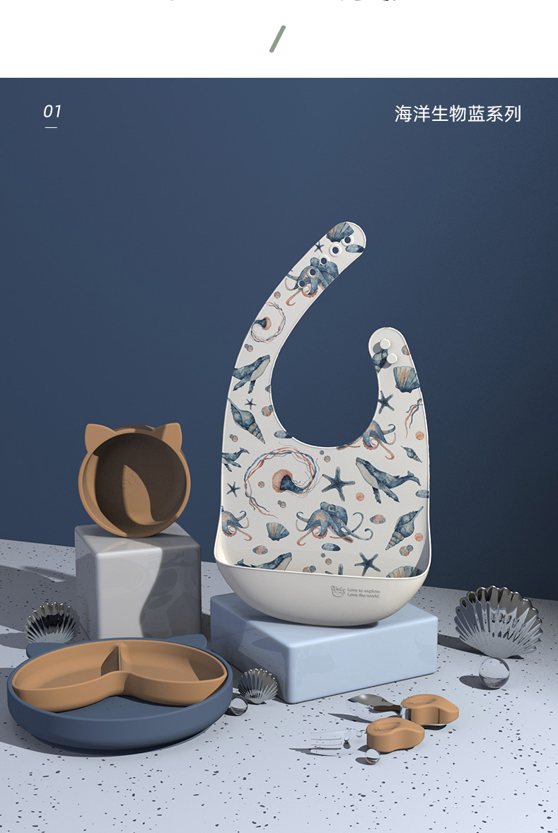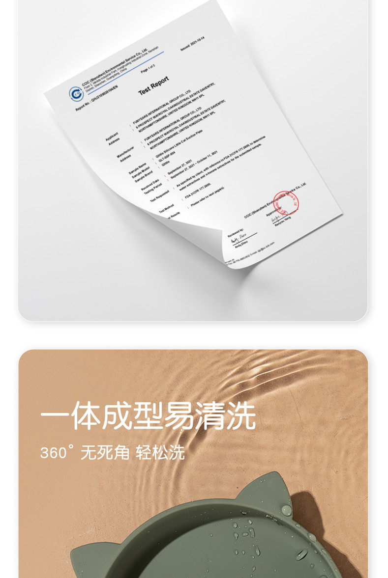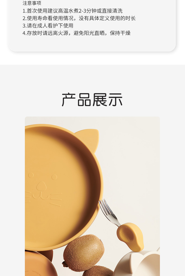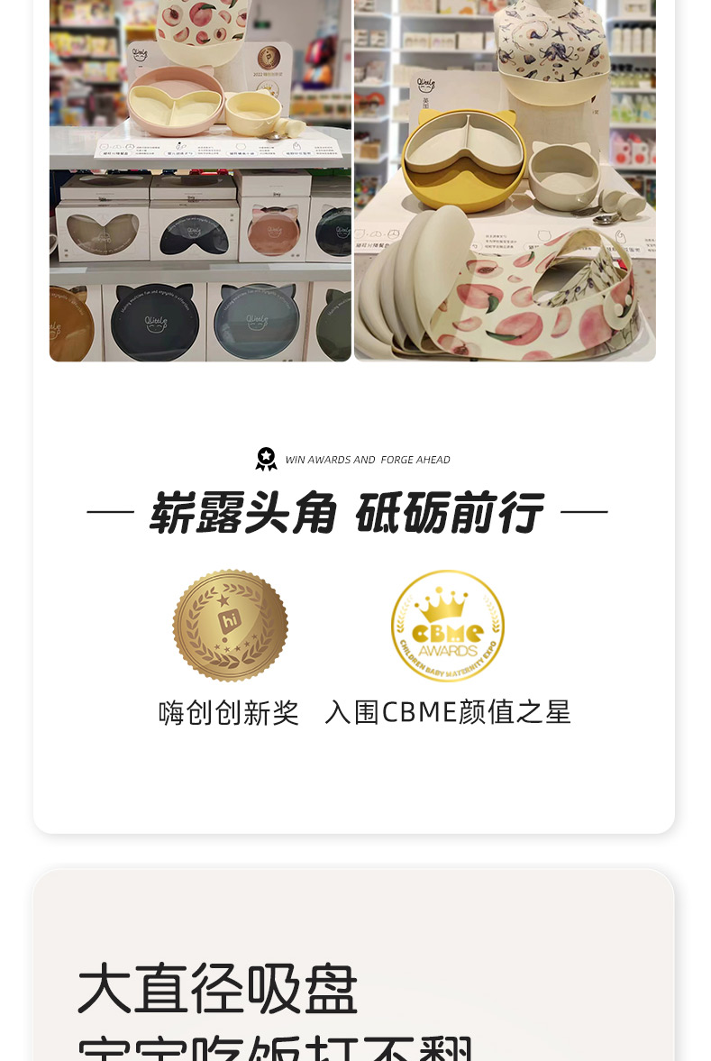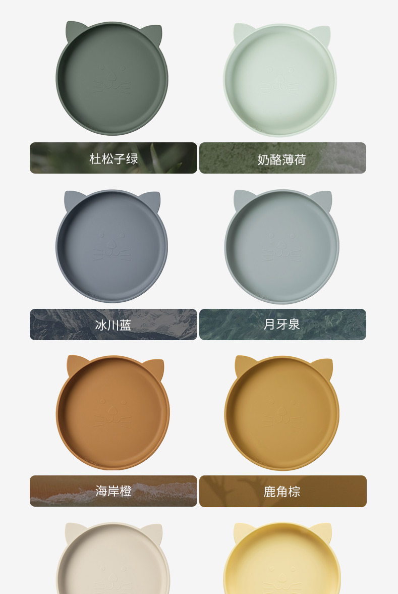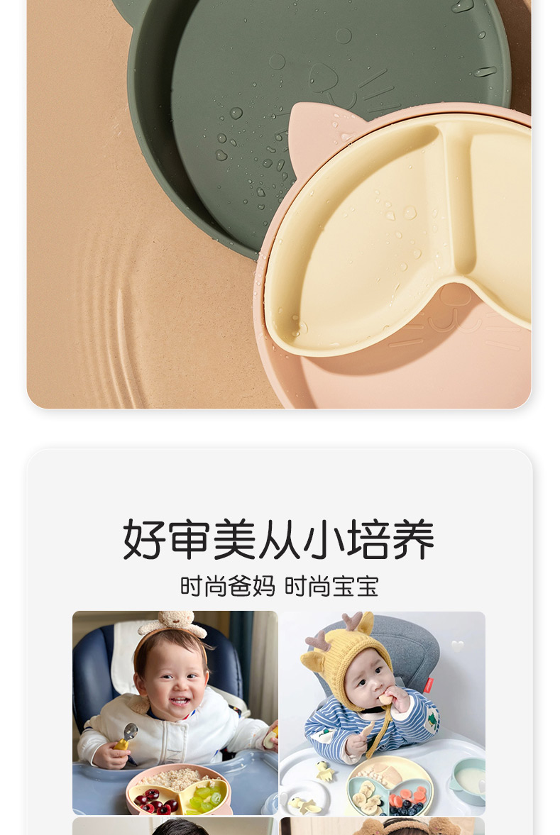 Qlittle硅胶盘 儿童宝宝学吃饭萌趣猫硅胶吸力分格餐盘食品级硅胶训练餐具 易清洗 6m+