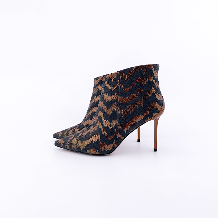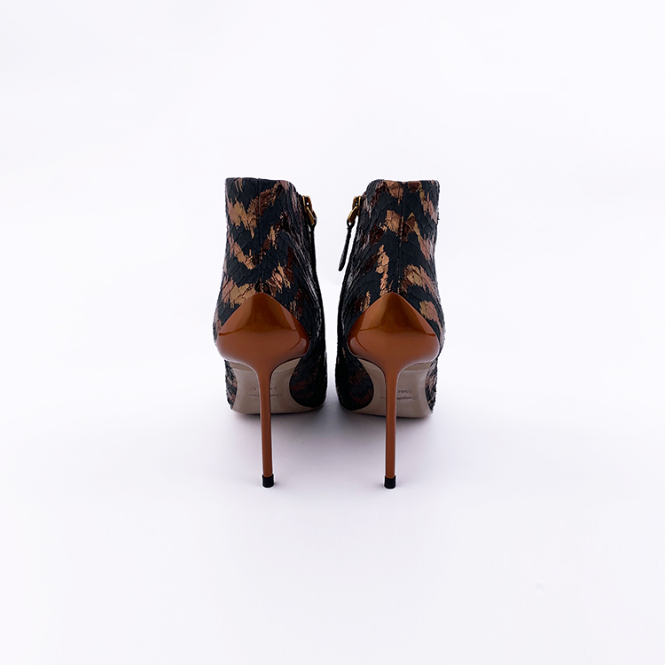 SAFICOO 定制烫金工艺蛇皮尖头细跟短靴