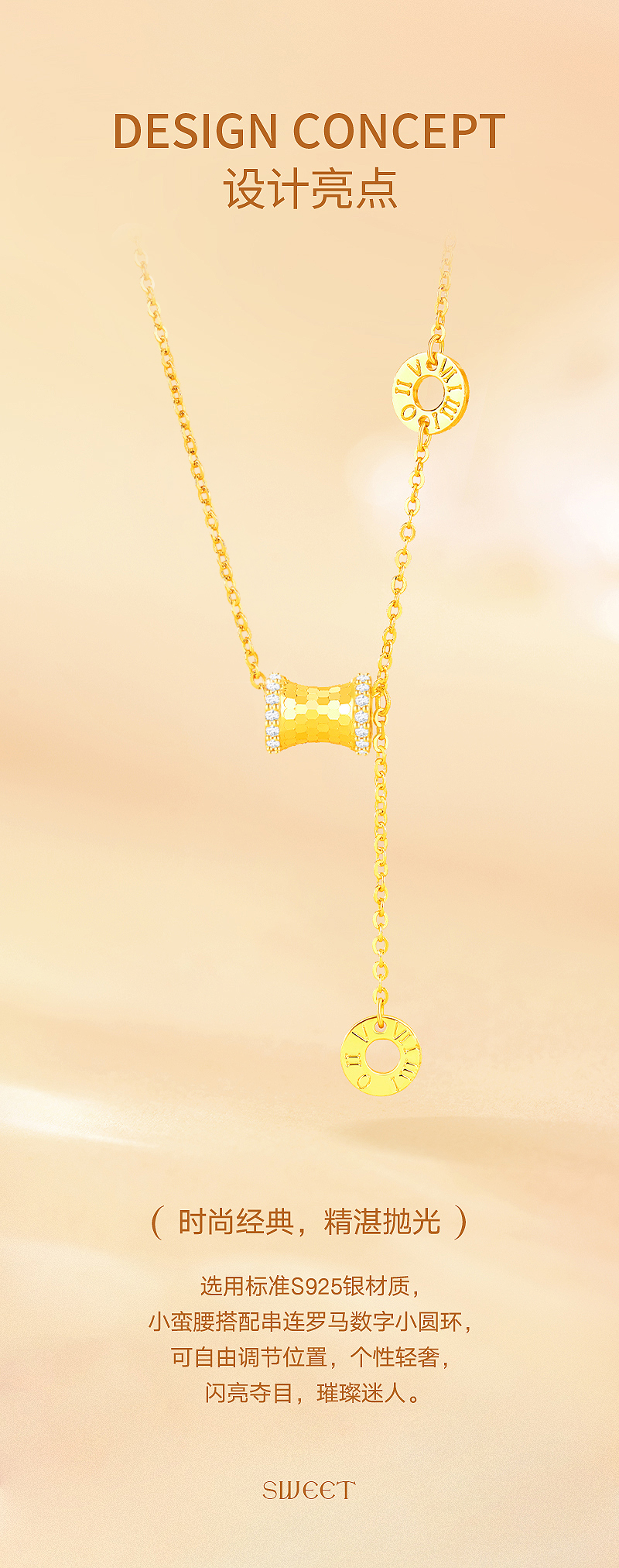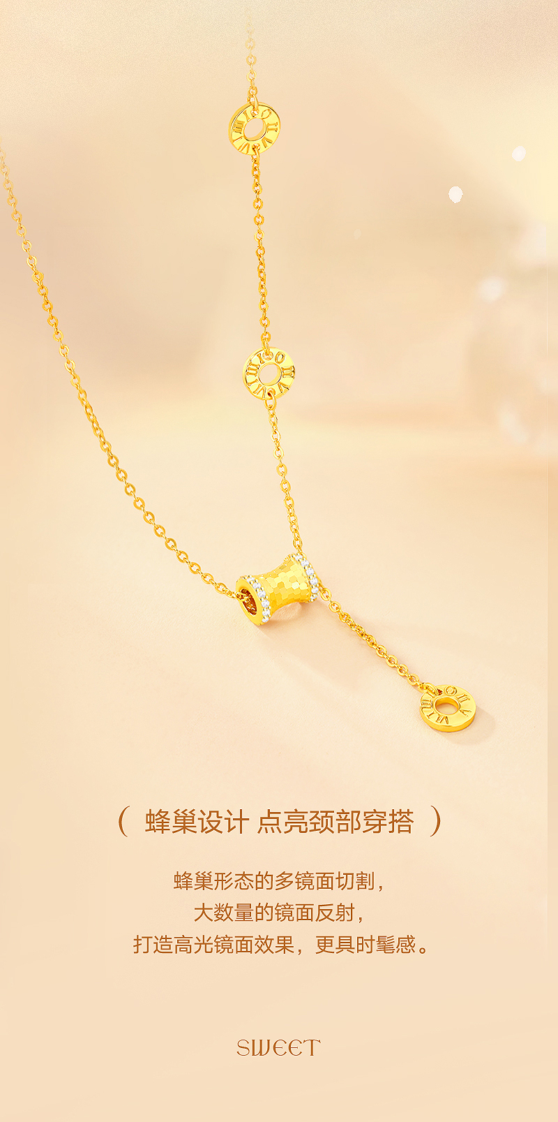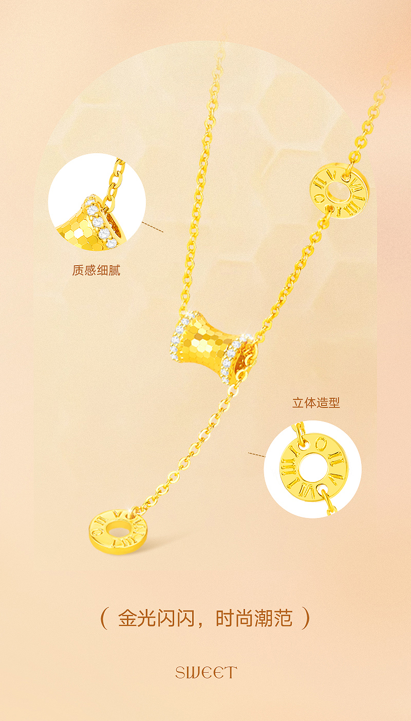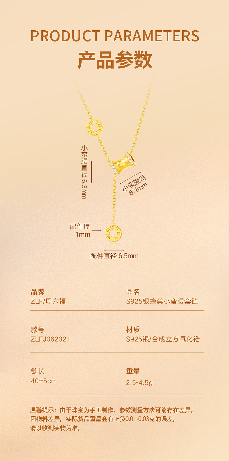 周六福S925银蜂巢小蛮腰套链ZLFJ062321★