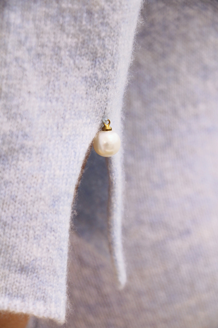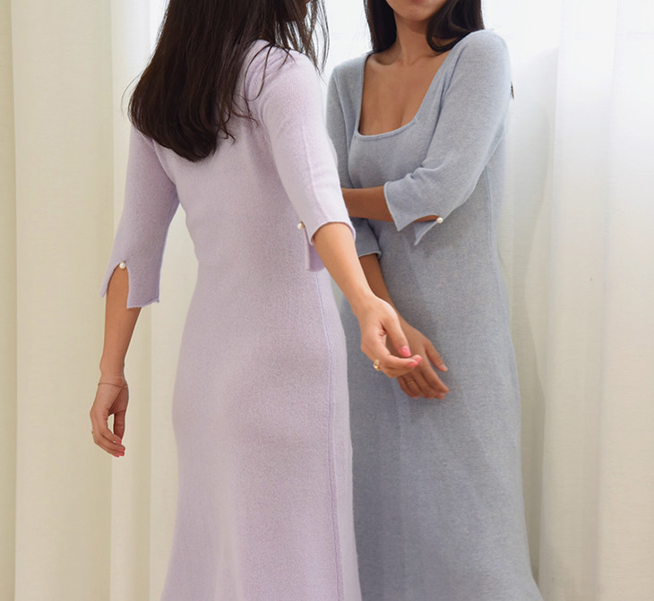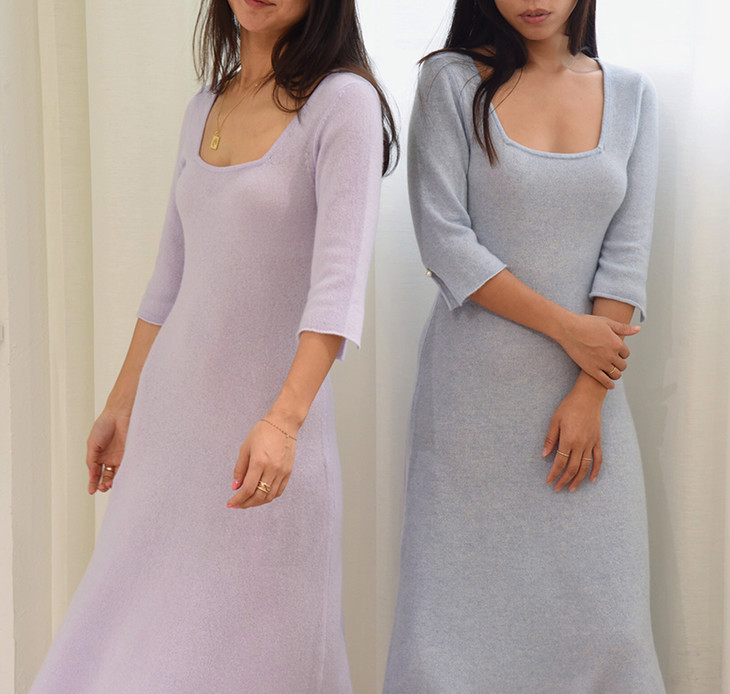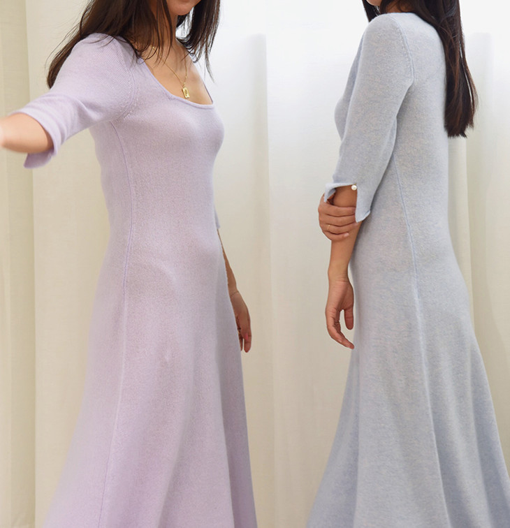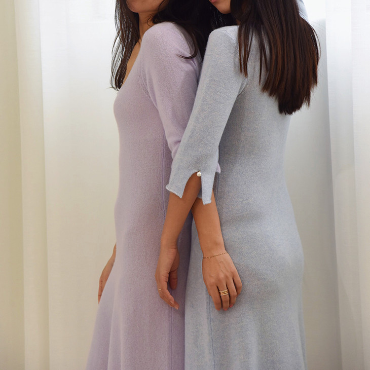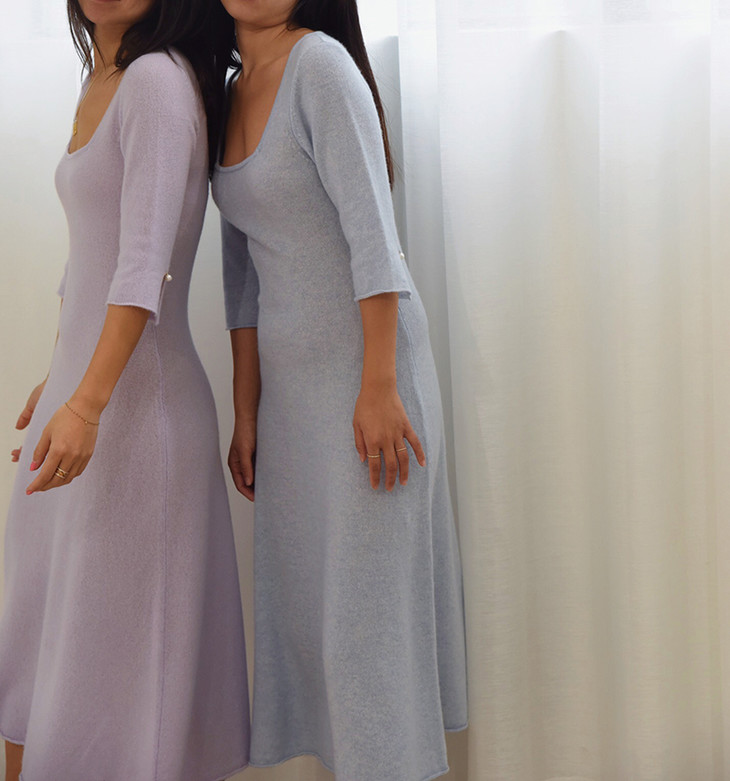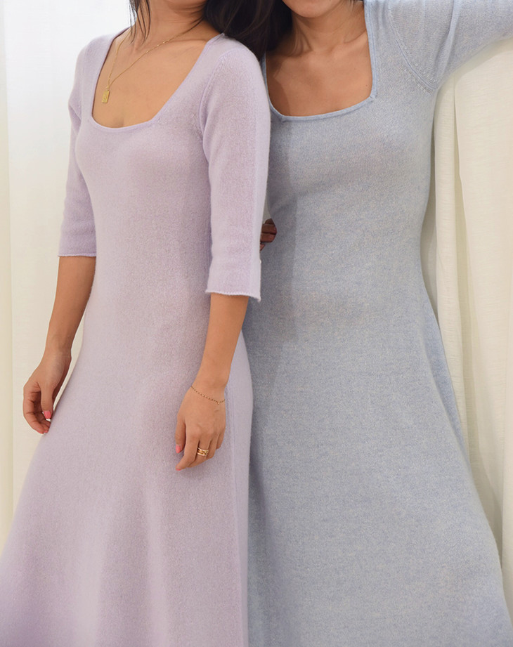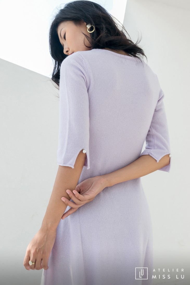 AtelierMissLu / Letitia 浅熏紫方领珍珠羊绒连身裙