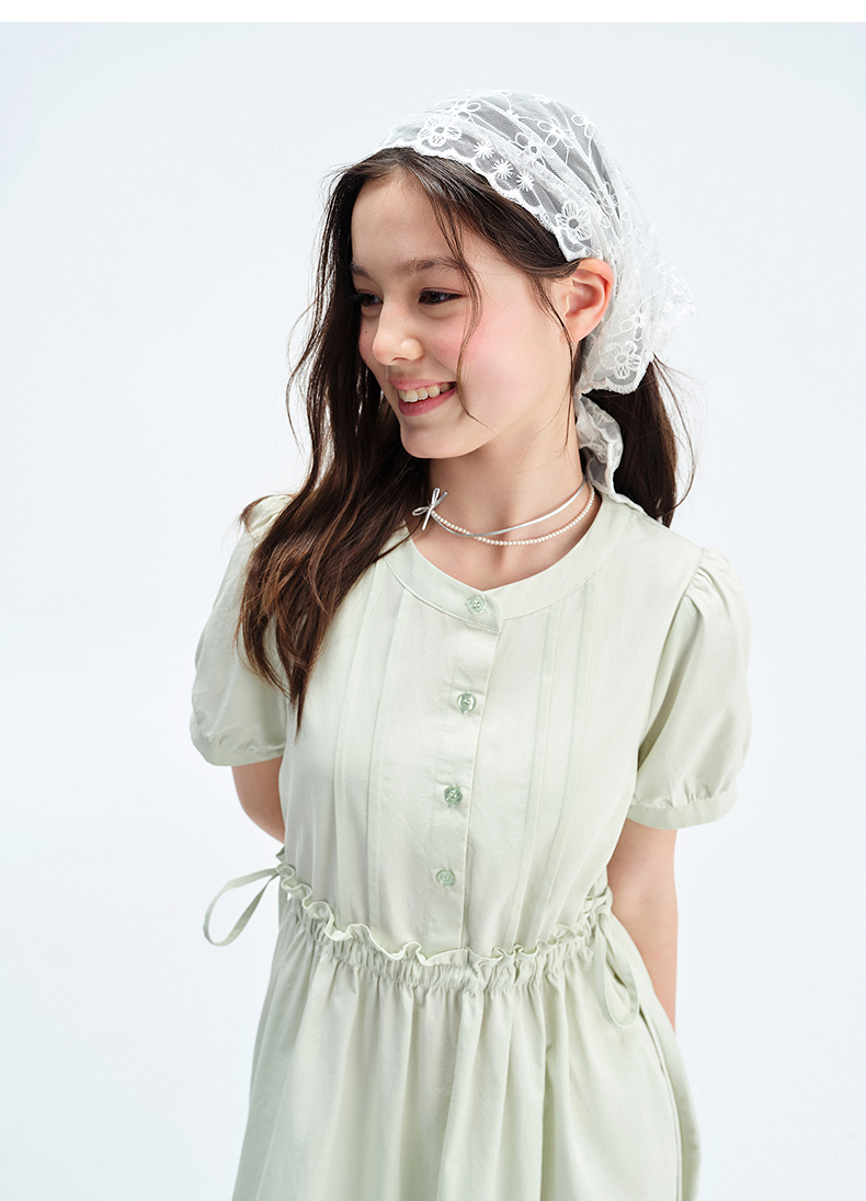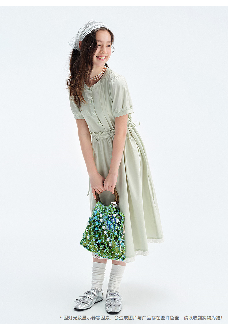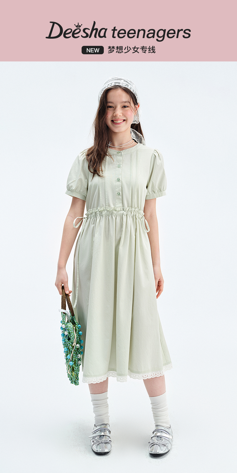 笛莎Deesha青少年女童连衣裙2025夏季女童短袖棉布裙