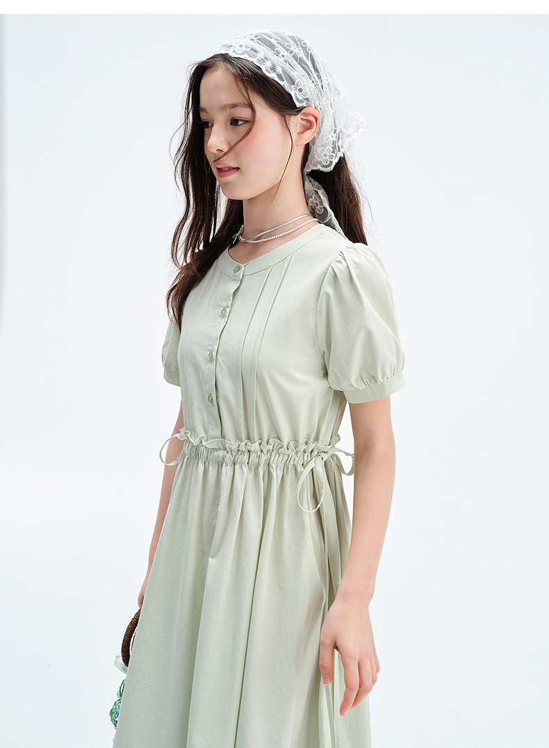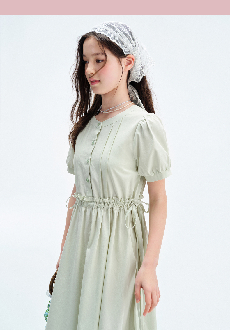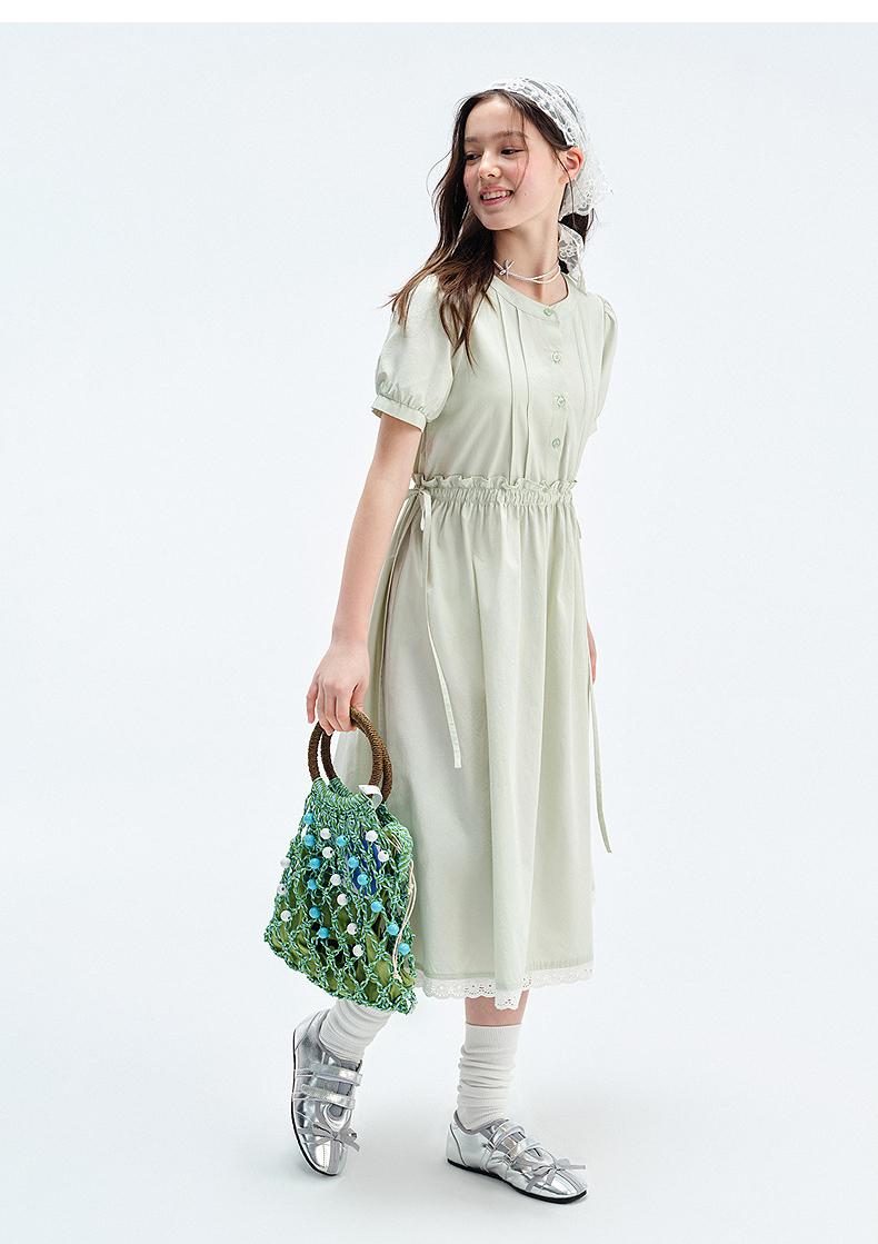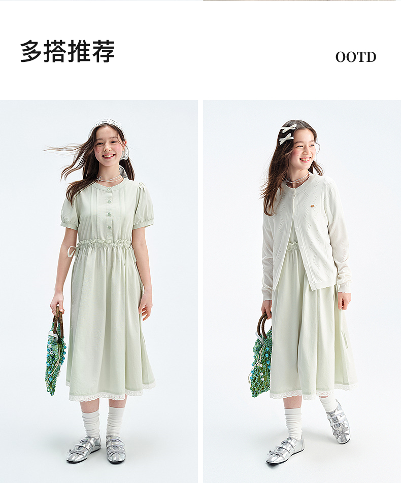 笛莎Deesha青少年女童连衣裙2025夏季女童短袖棉布裙