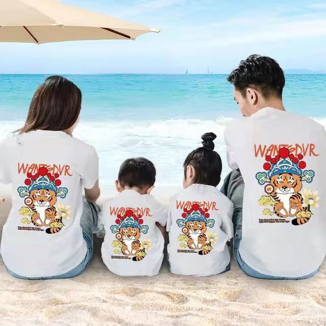 黛唯梵亲子装春夏2022年新款短袖纯棉t恤一家三四五六口家庭装洋气上衣国庆清明出游