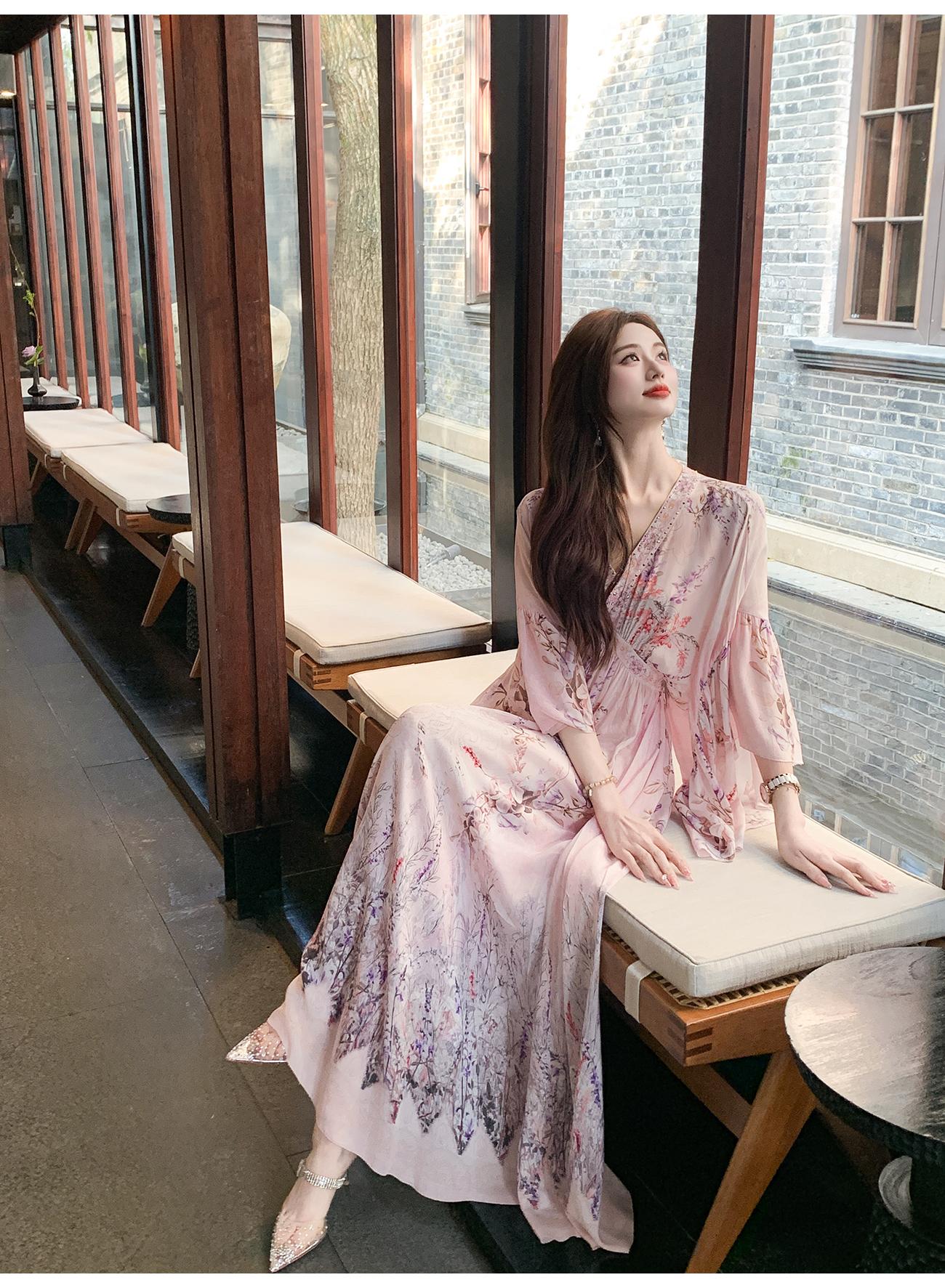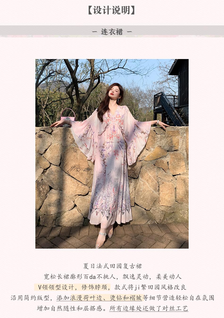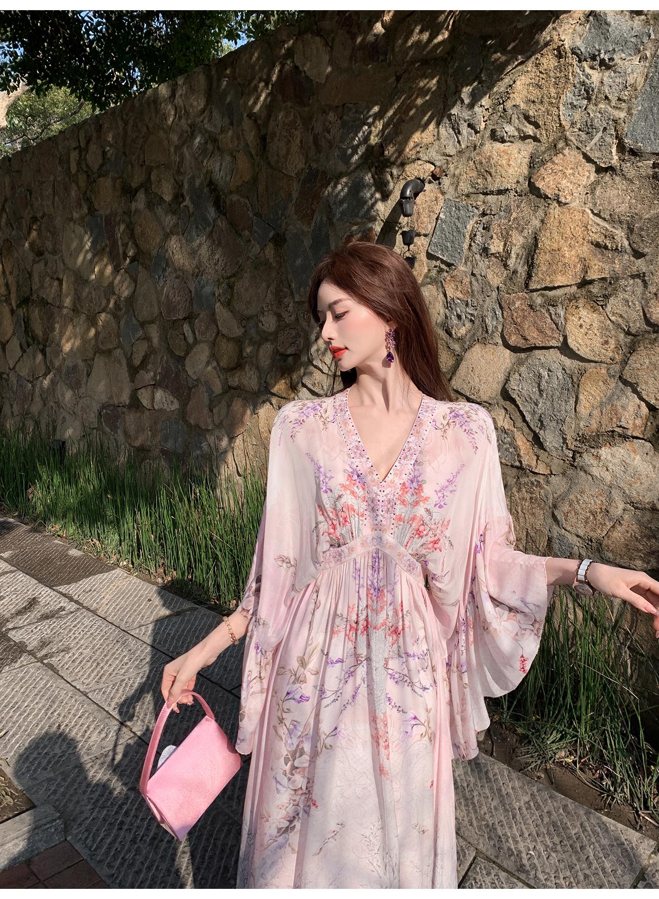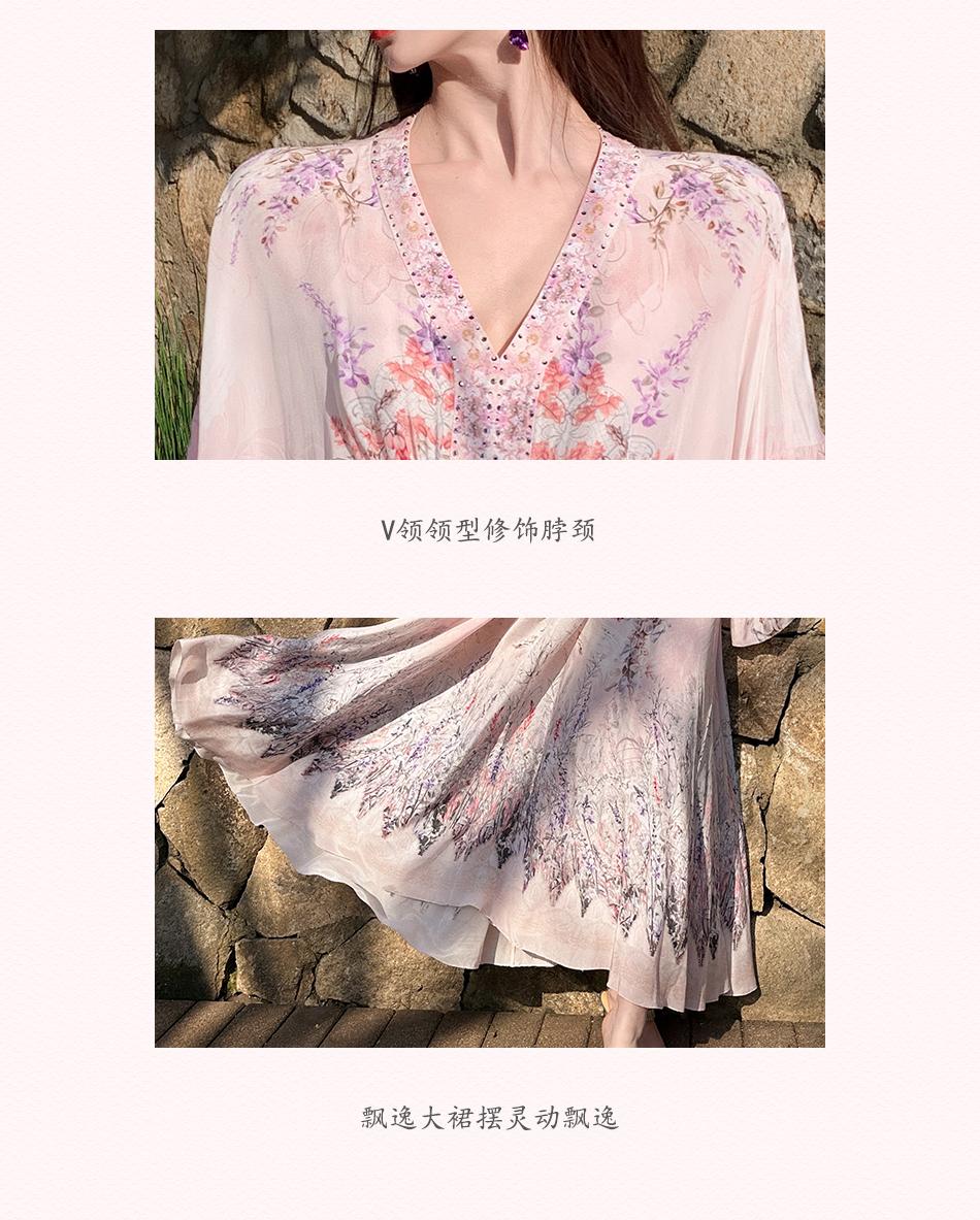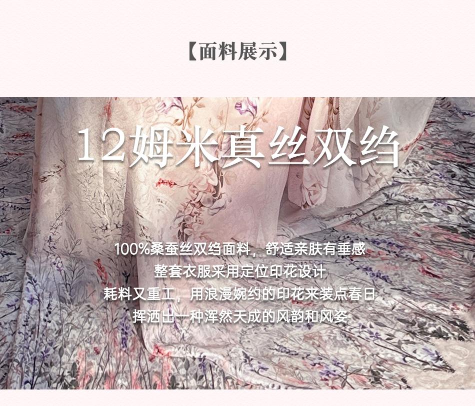 【孤品样衣,不退不换】【花海绘梦】法式浪漫印花桑蚕丝双绉夏日田园烫钻复古连衣裙