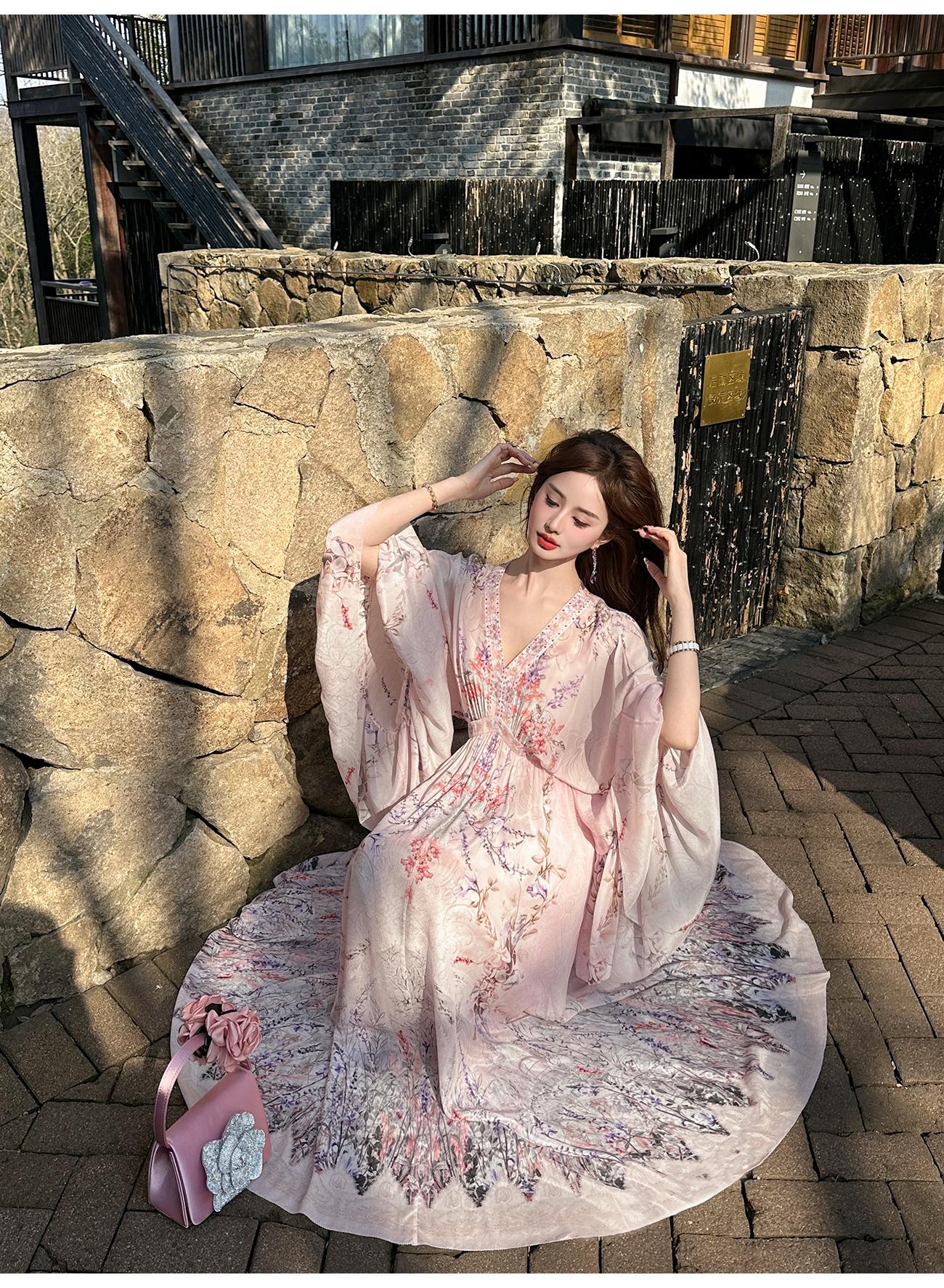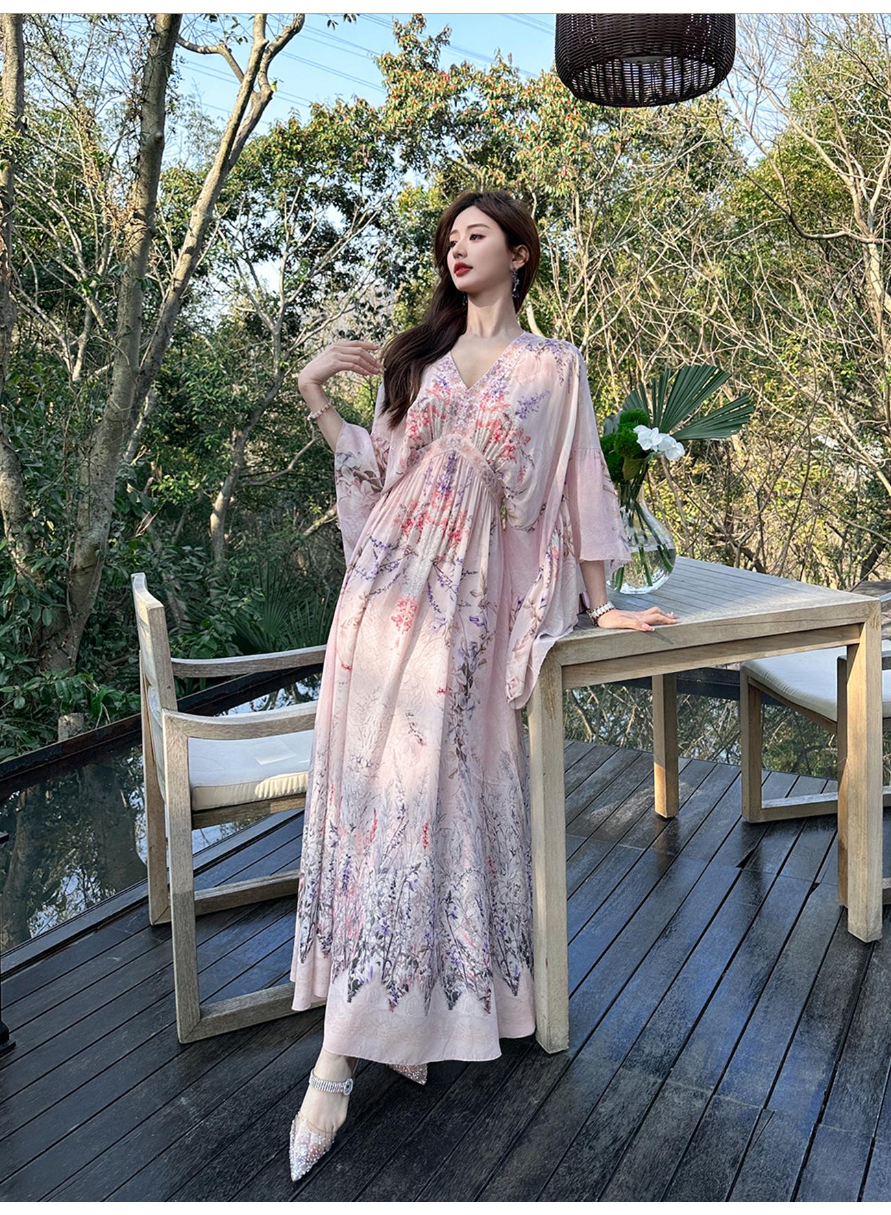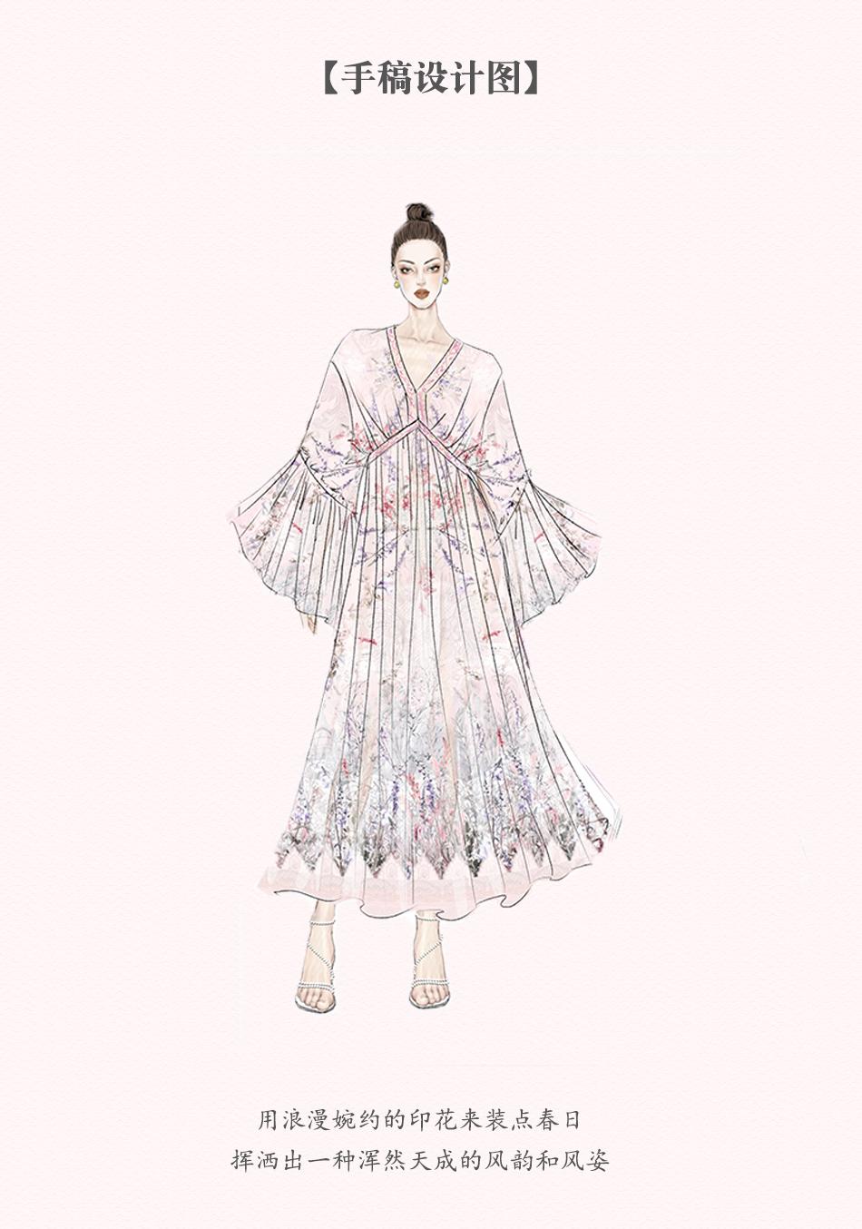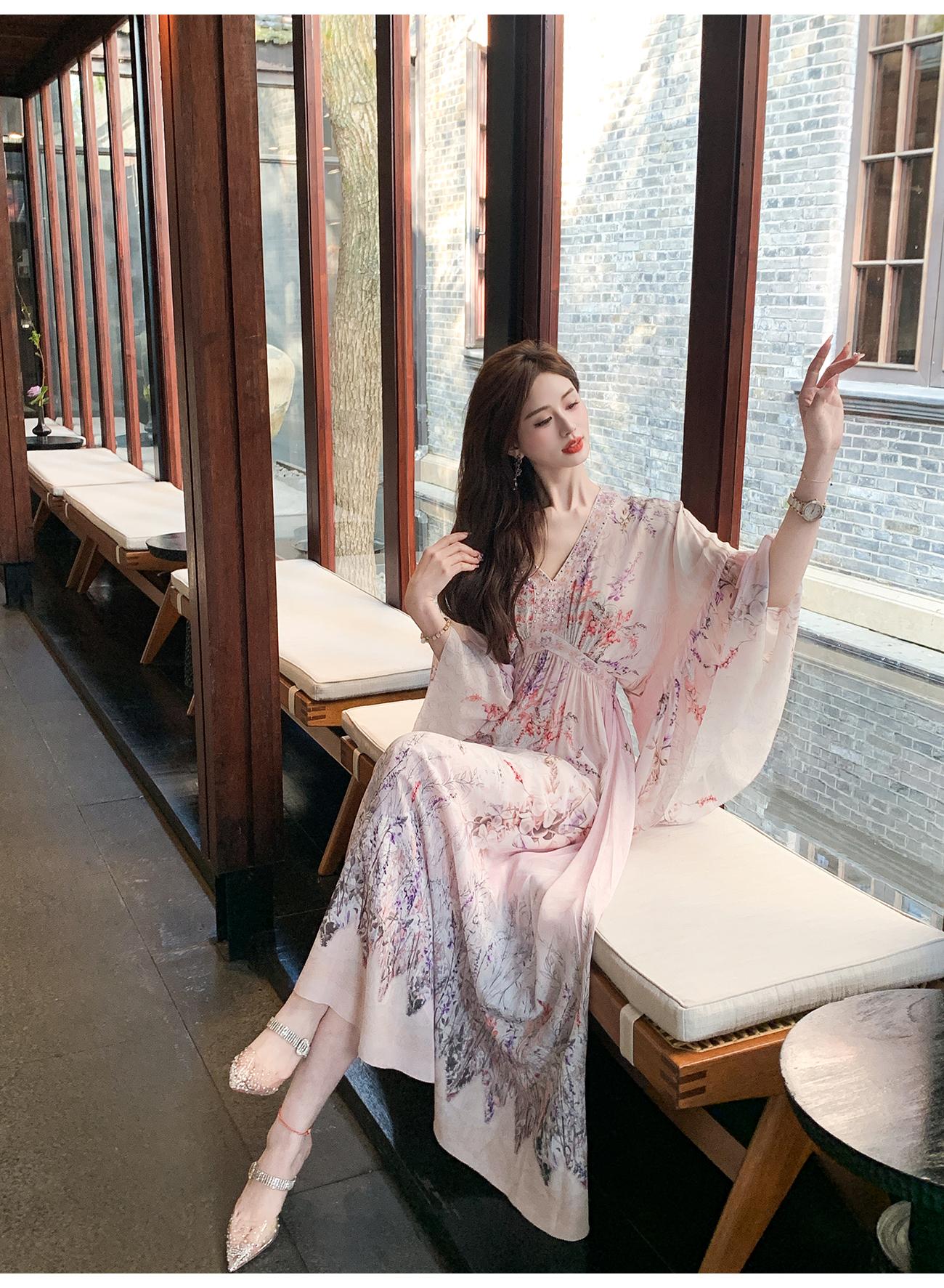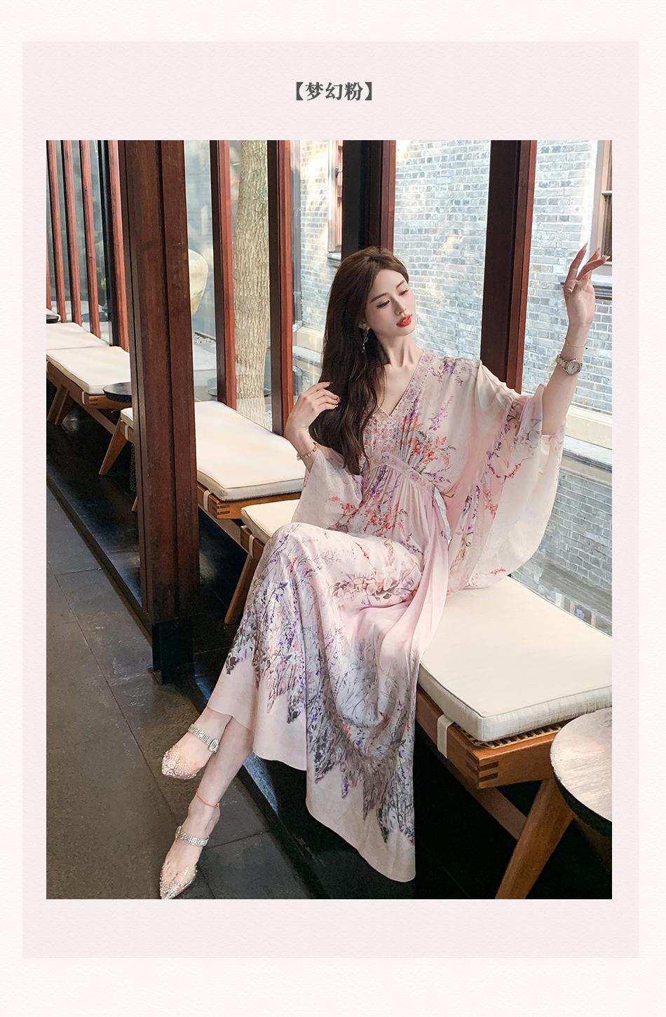 【孤品样衣,不退不换】【花海绘梦】法式浪漫印花桑蚕丝双绉夏日田园烫钻复古连衣裙