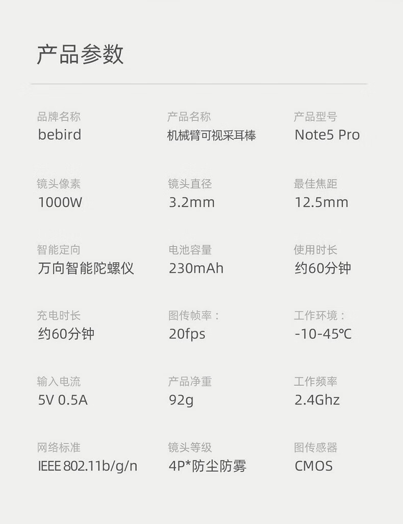 bebird可视洁耳仪Note5pro 挖耳勺采镊耳棒高清内窥镜