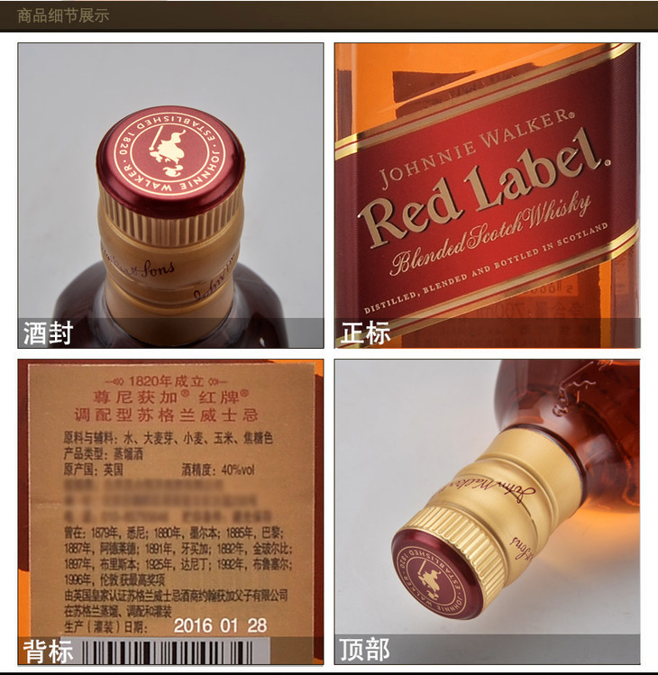 【单瓶】尊尼获加红牌调配苏格兰威士忌(红方)英国原瓶进口 700ml 40%vol