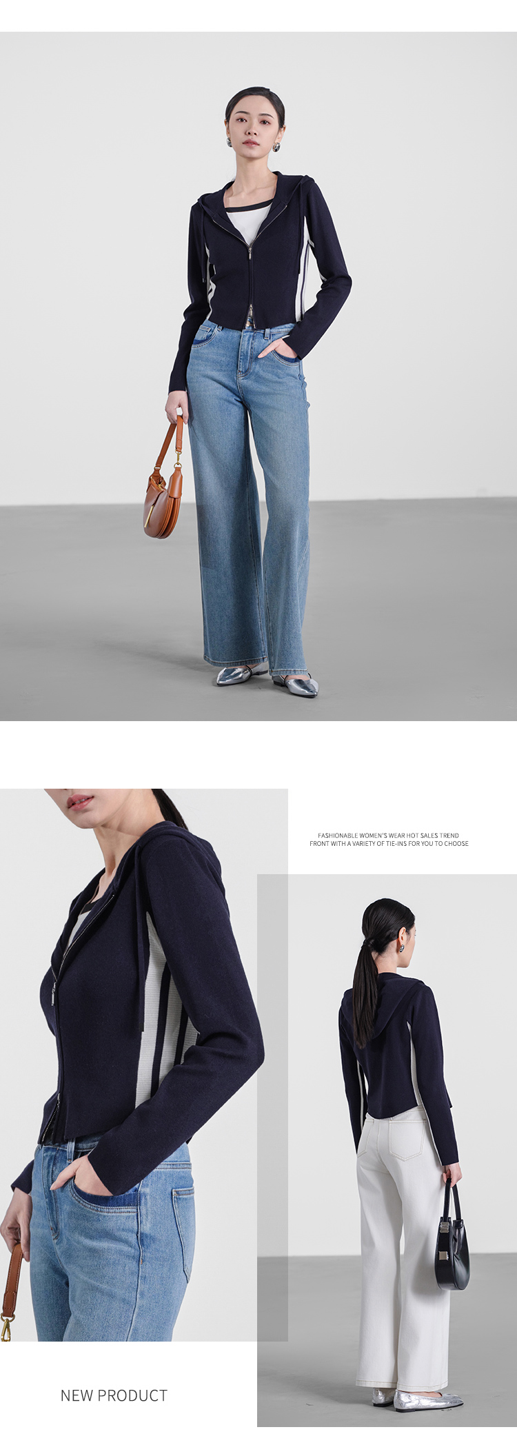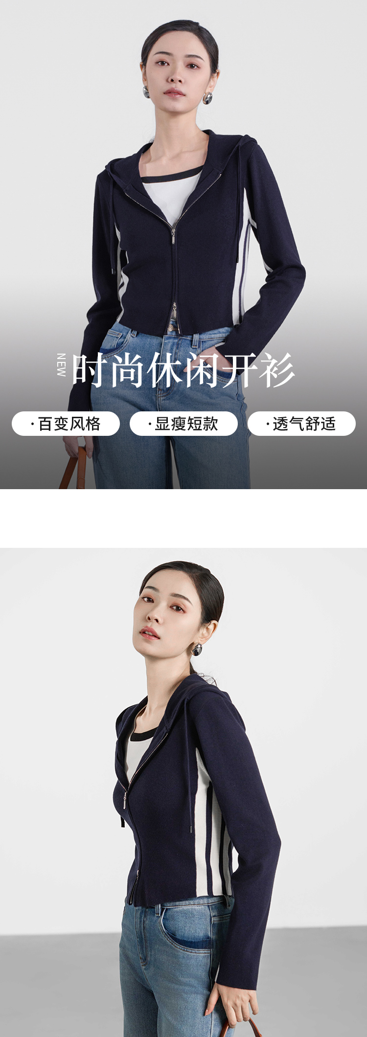【商场同款】CNR5347 “运动风开衫 ” 藏蓝色连帽开衫