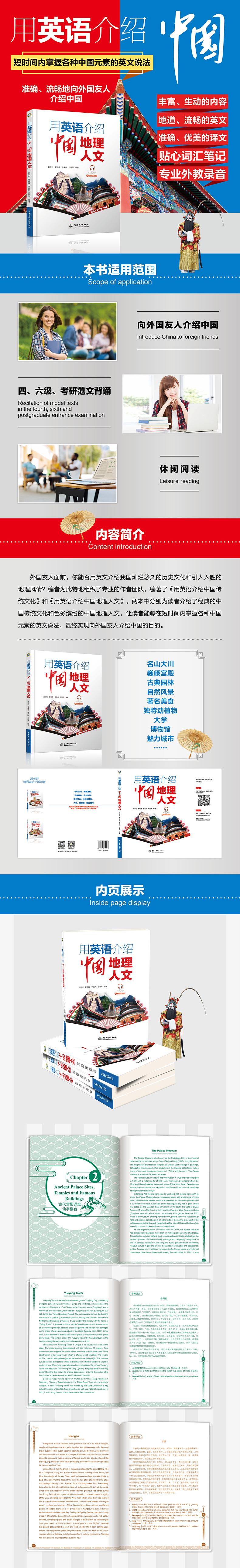 外国友人面前,你能否用英文介绍我国灿烂悠久的历史文化和引人入胜的地理风情?编者为此特地组织了专业的作者团队,编著了《用英语介绍中国传统文化》和《用英语介绍中国地理人文》。本书为读者介绍了色彩缤纷的中国地理人文,内容包括名山大川、古代宫殿遗址和仙宇楼台、自然风景、美食天下、魅力城市等,让读者能够在短时间内掌握各种中国元素的英文说法,最终实现向外国友人介绍中国的目的。本书也是山东省社科规划研究项目“文化自信融入外语教学路径探究”(18CWZJ50)的阶段性研究成果。