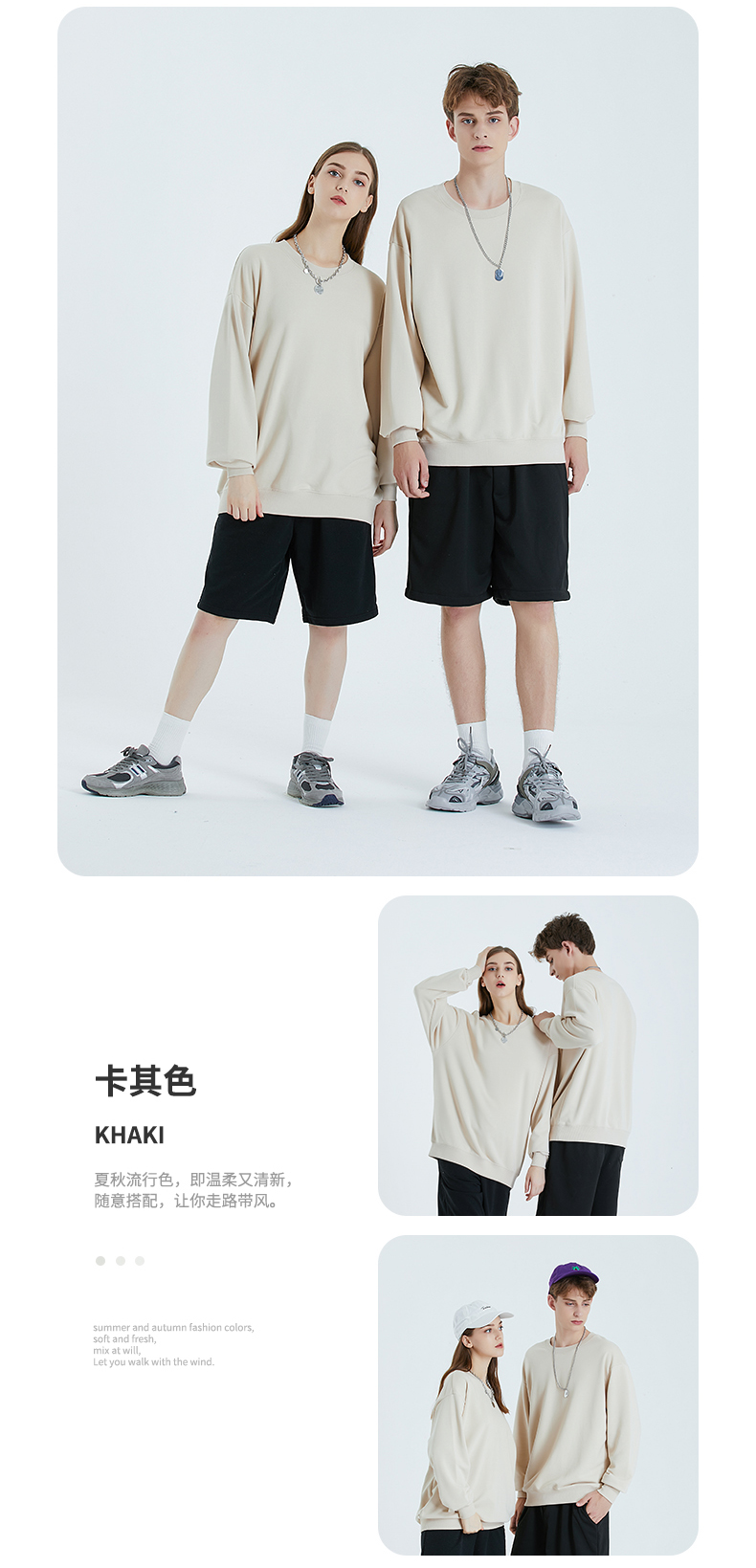 【简约舒适随心!】伊衫棉匠350g重磅宽松版情侣同款圆领卫衣 时尚休闲百搭竞松长袖T恤上衣秋冬 分享李