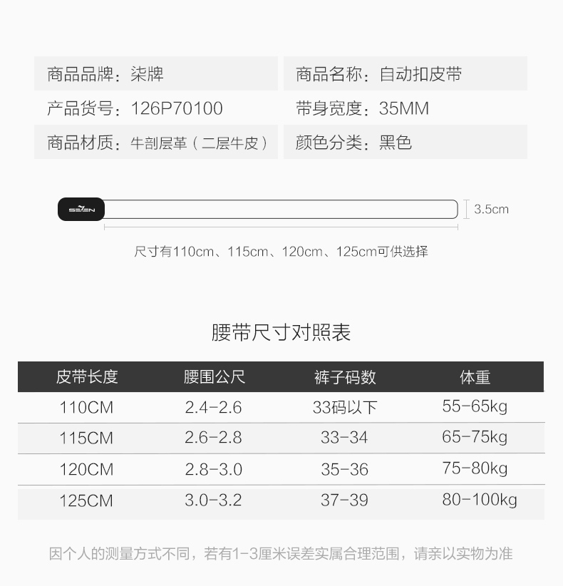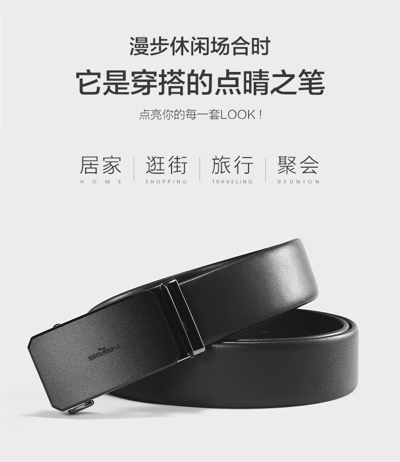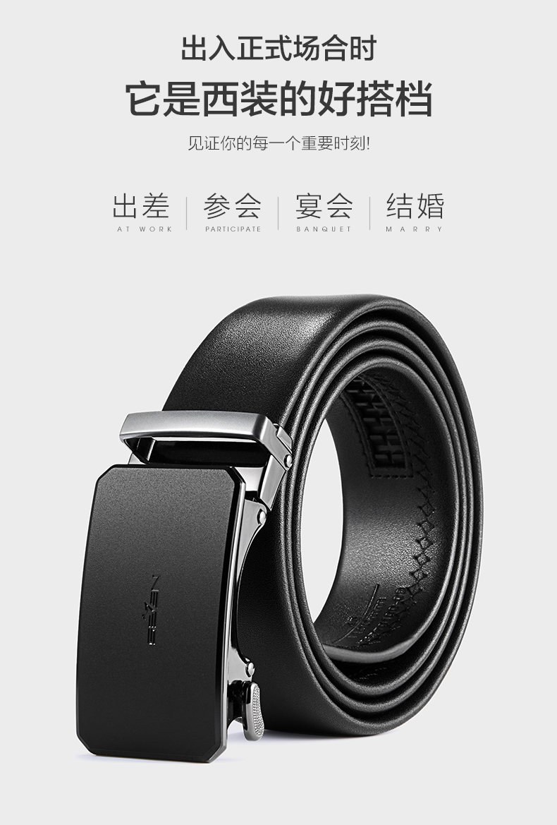 【父亲节礼盒款】柒牌配饰腰带男2025年新款自动扣商务休闲百搭男士黑色皮带礼盒装 126P70100