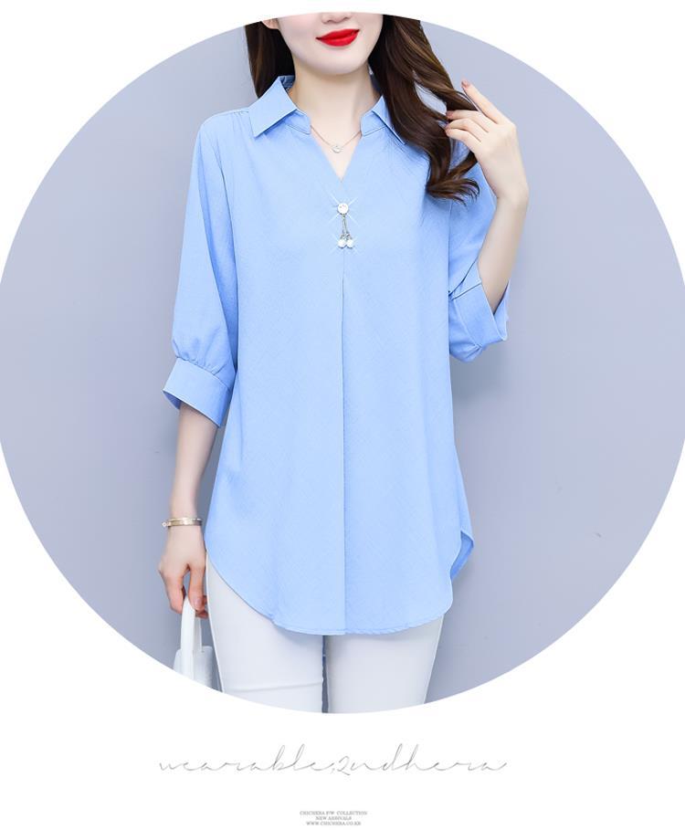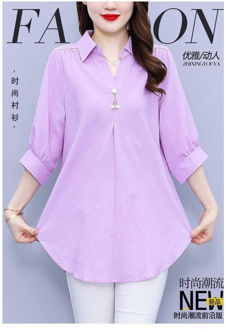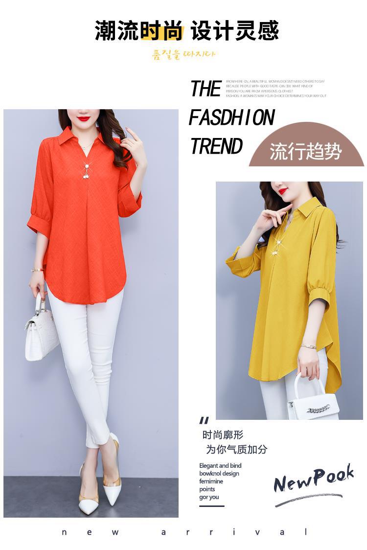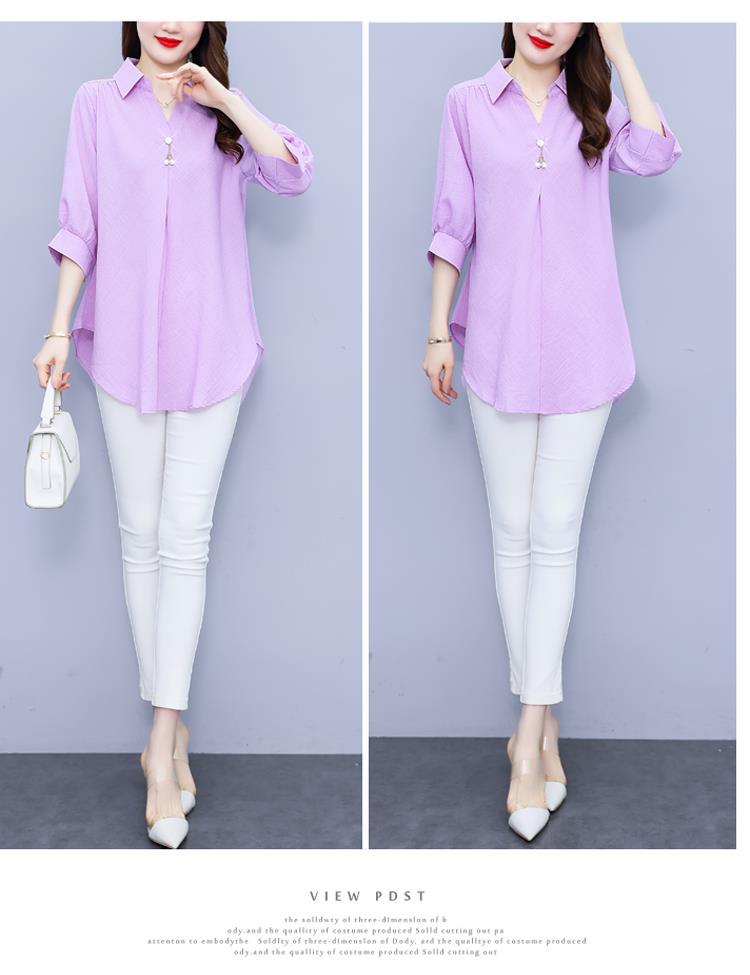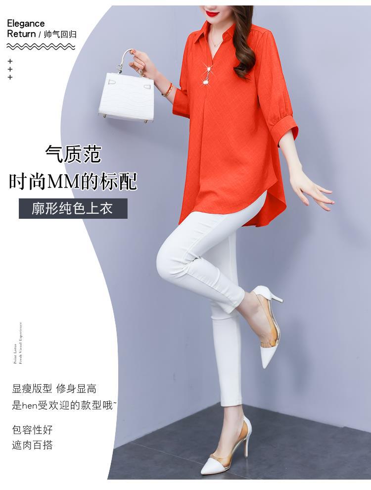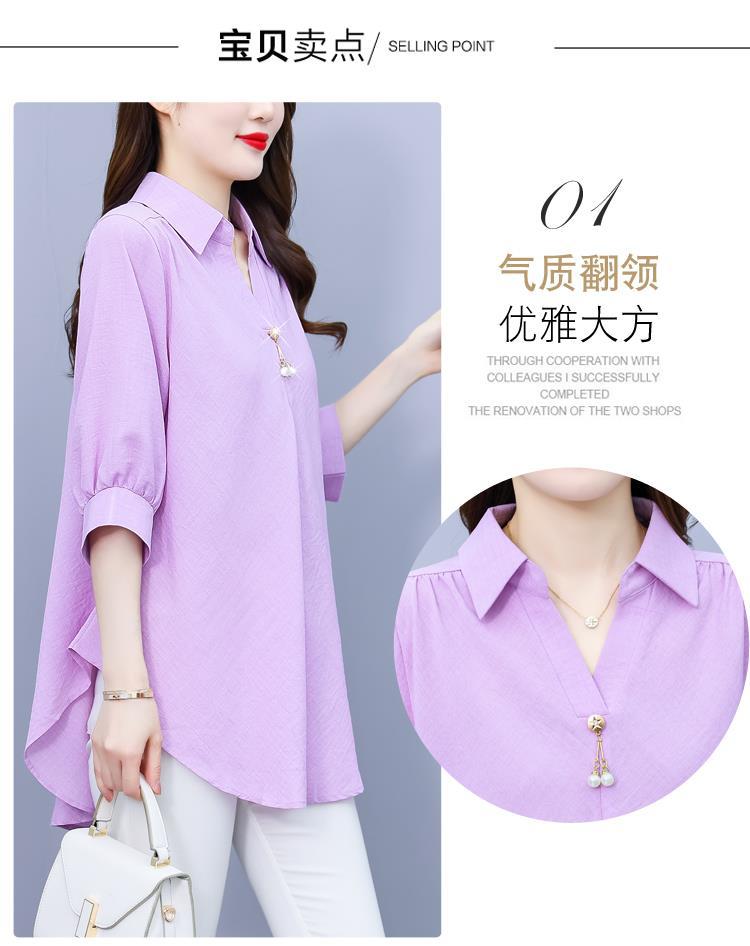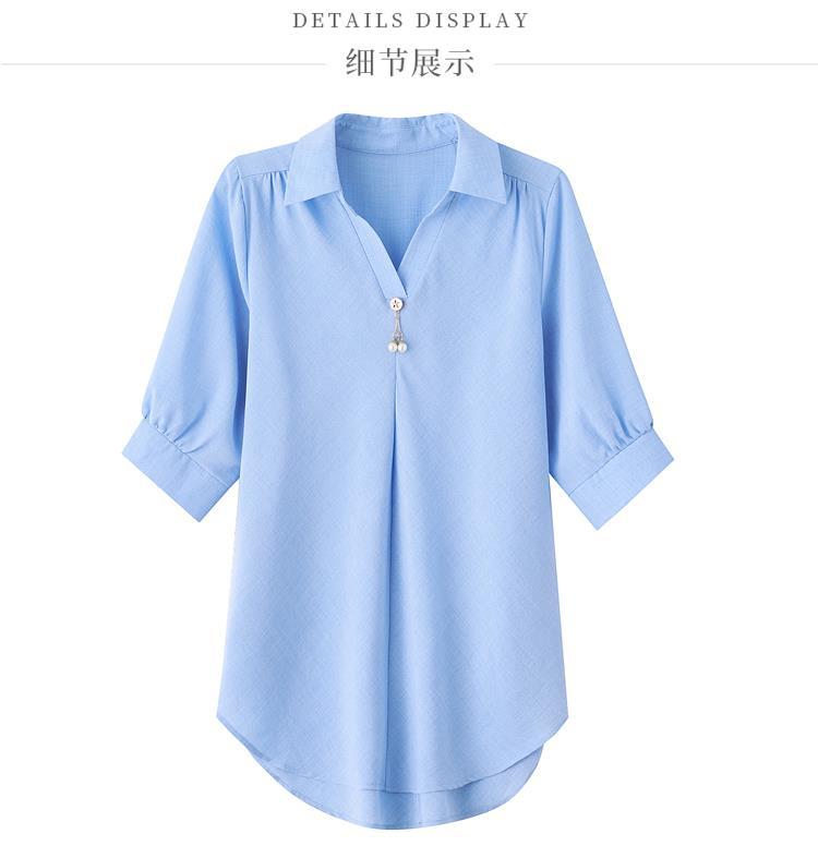 大码女装夏新款,胖mm简约V领显瘦遮肚子纯色上衣宽松雪纺衫潮KQL-E261N2238