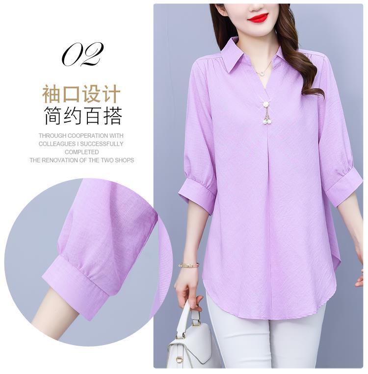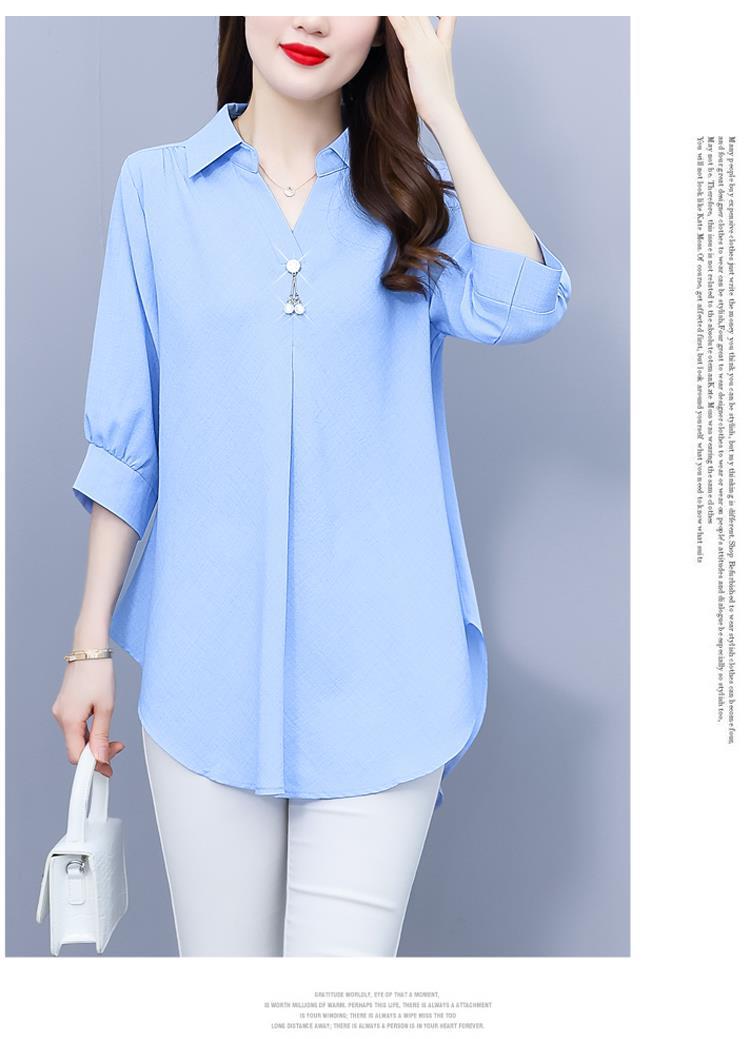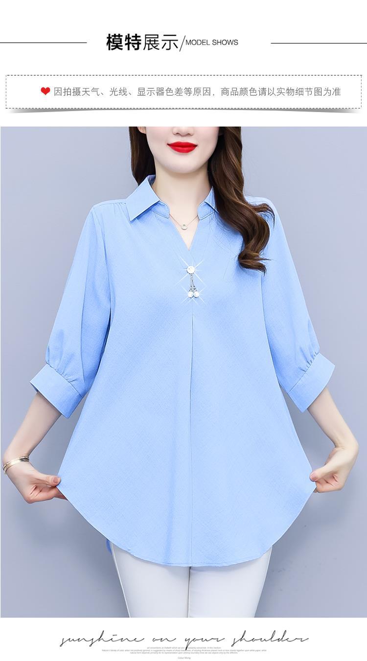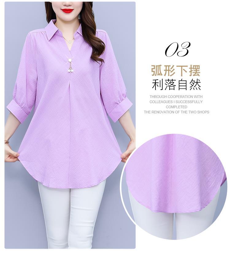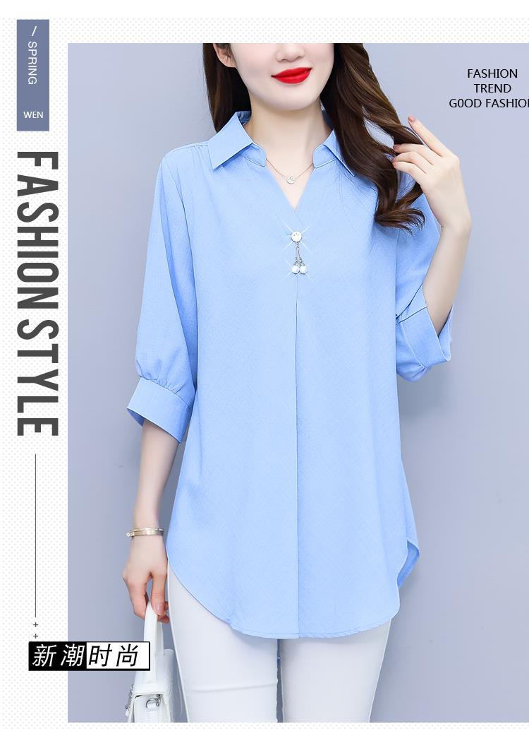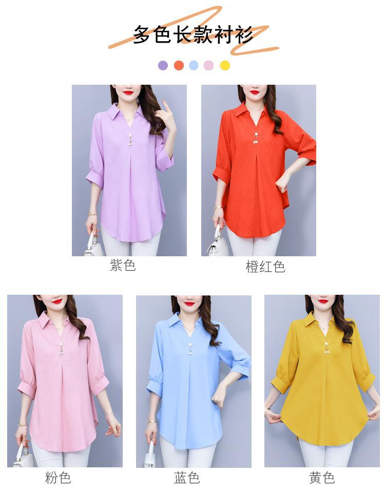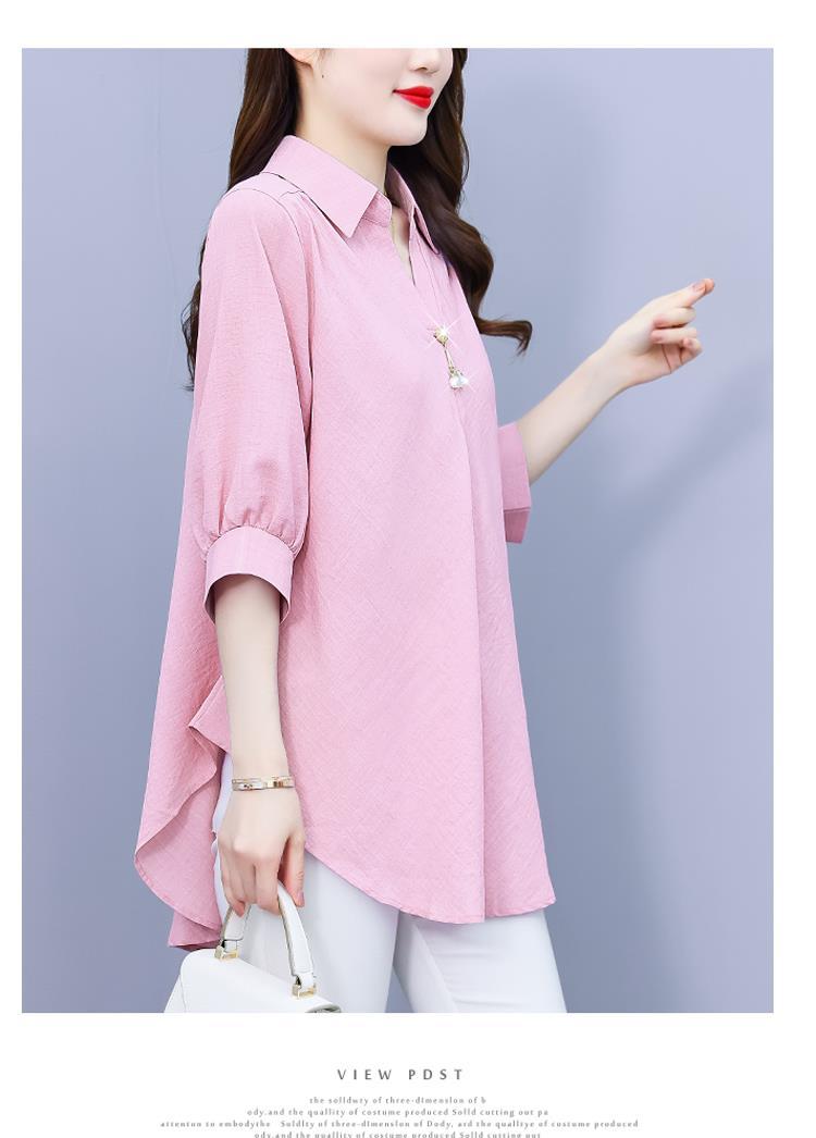 大码女装夏新款,胖mm简约V领显瘦遮肚子纯色上衣宽松雪纺衫潮KQL-E261N2238
