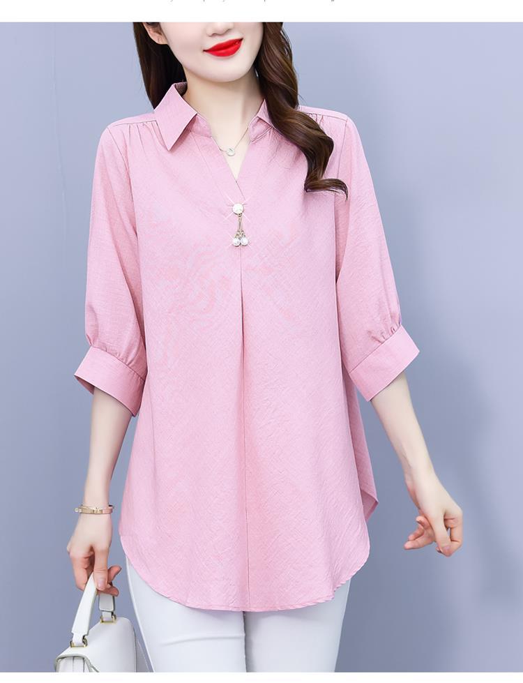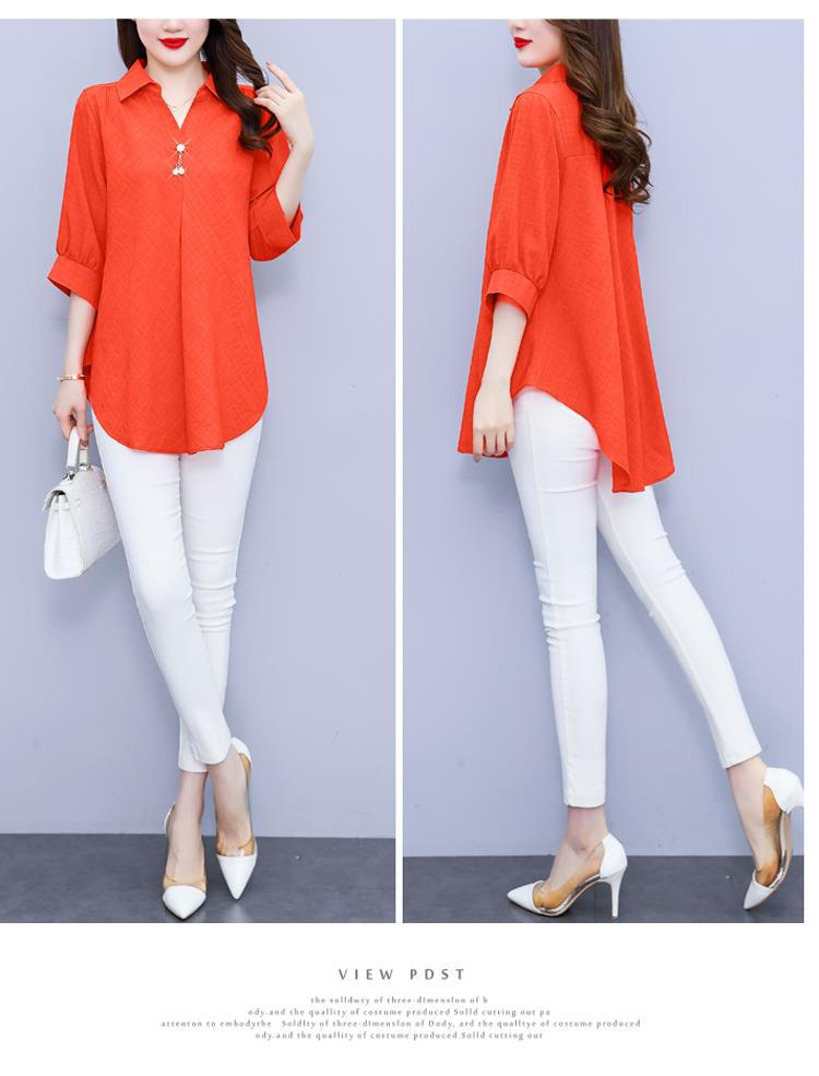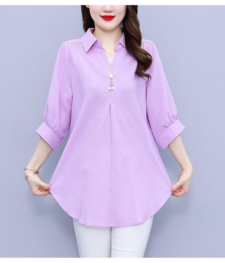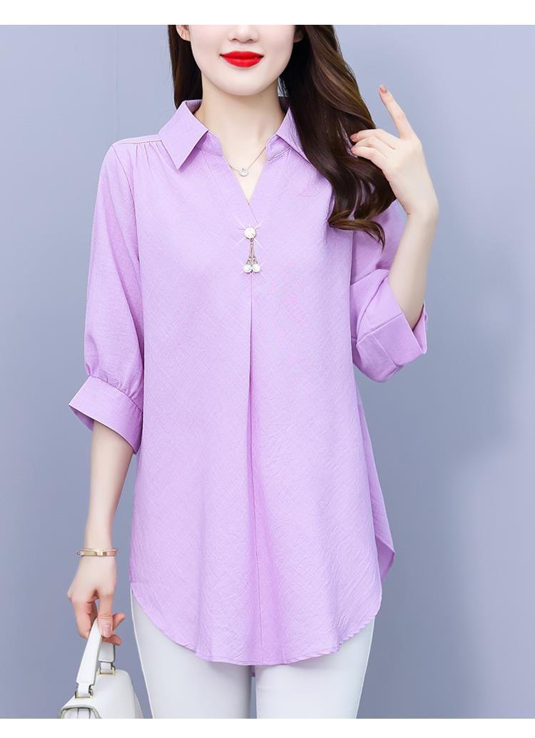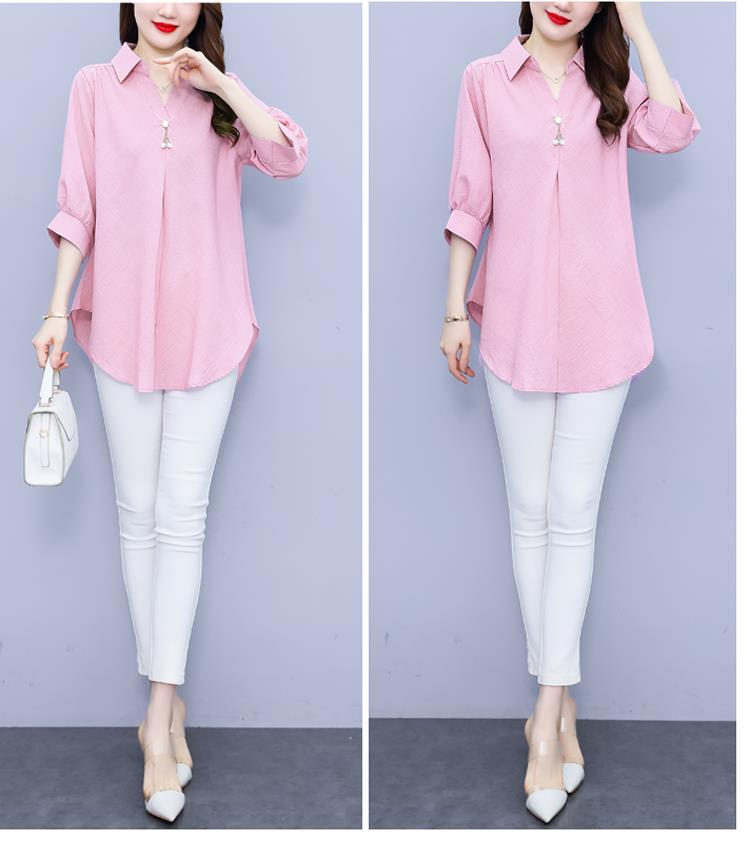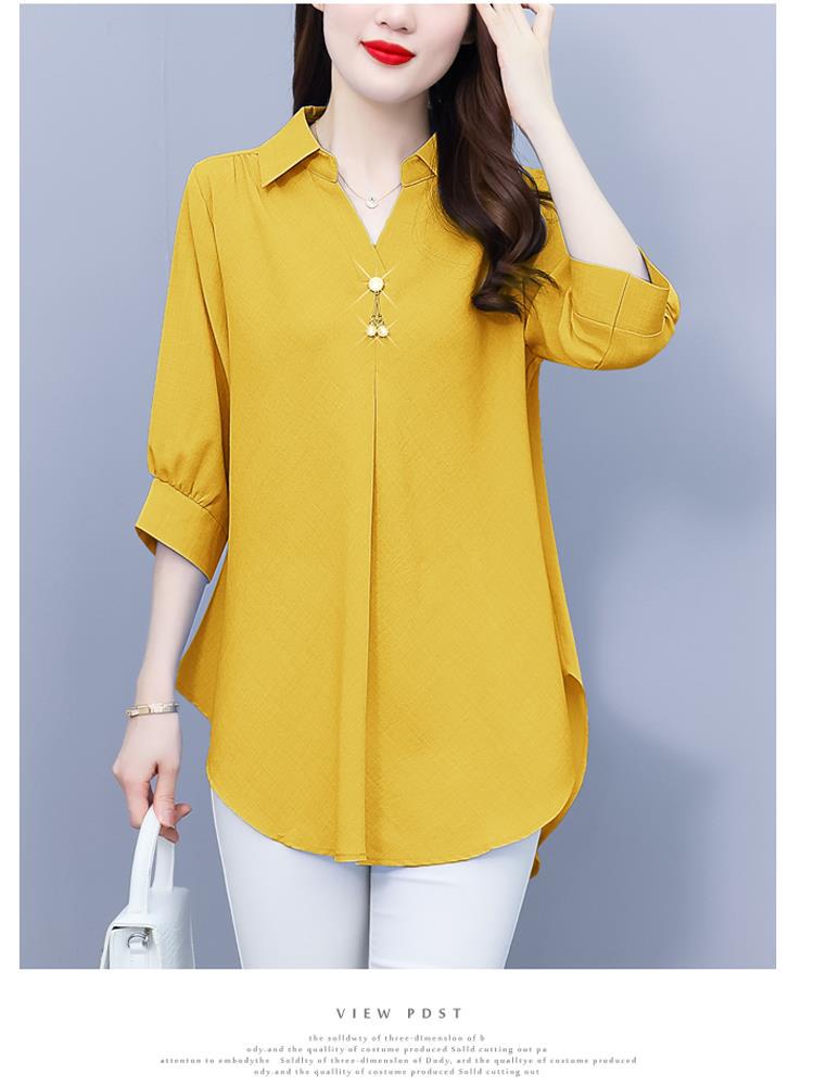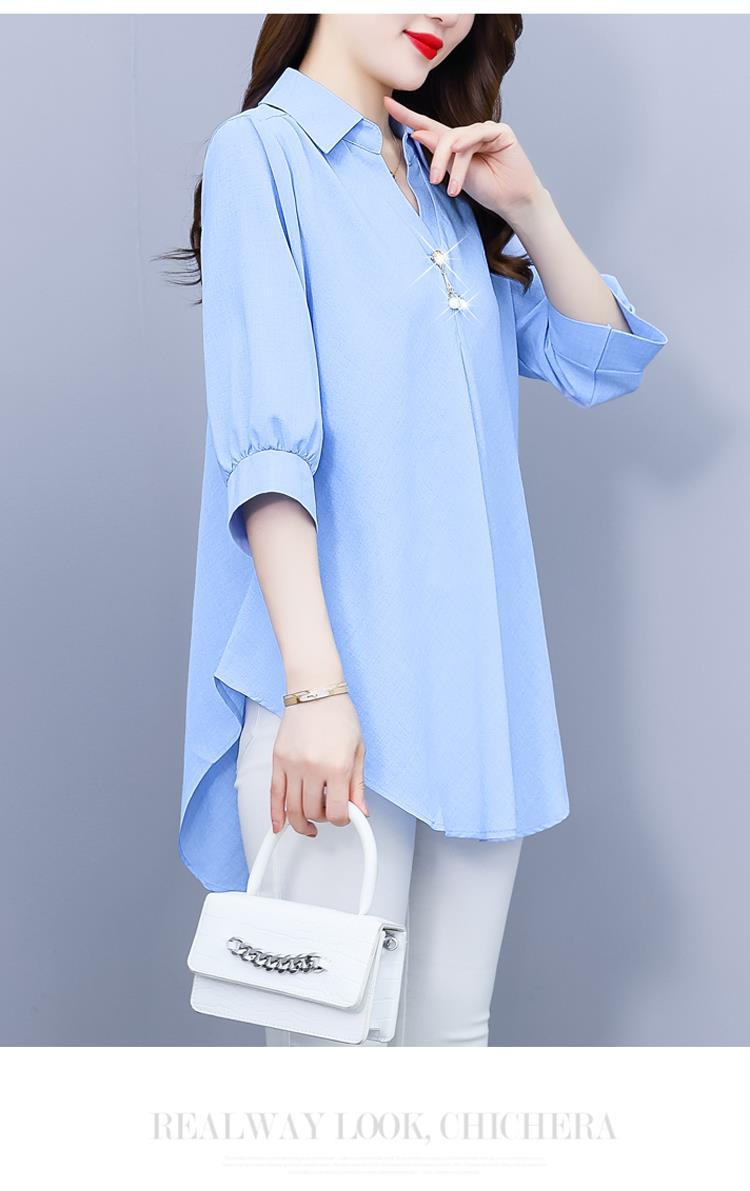 大码女装夏新款,胖mm简约V领显瘦遮肚子纯色上衣宽松雪纺衫潮KQL-E261N2238