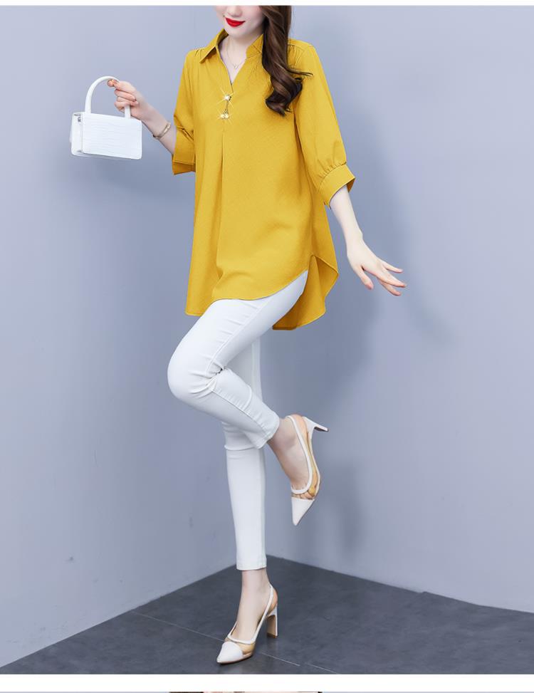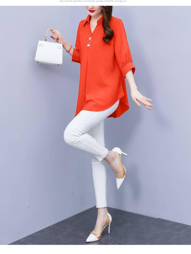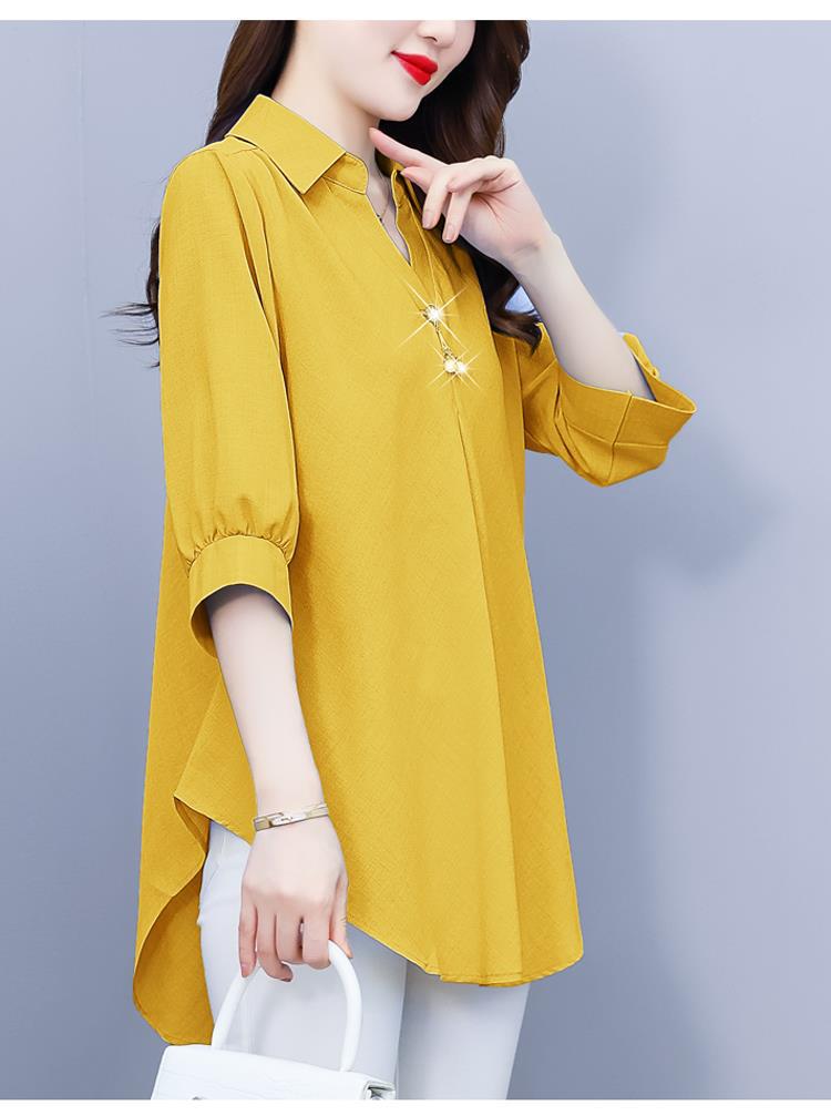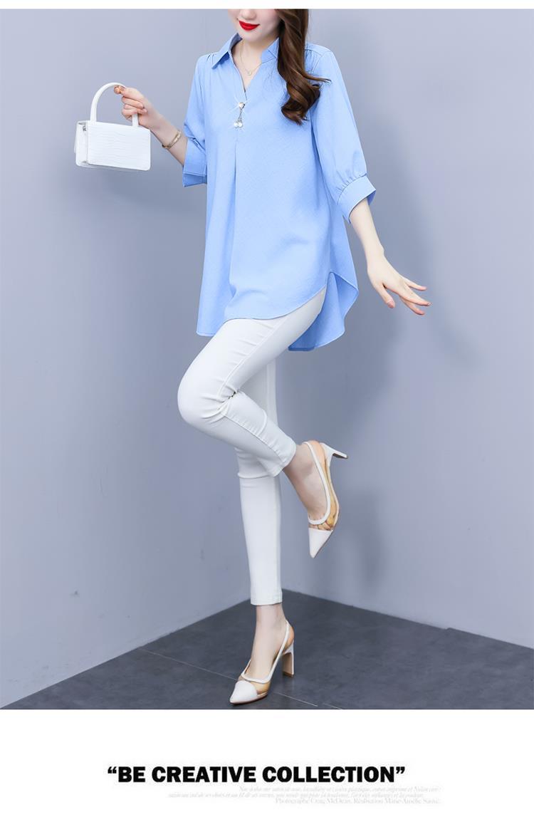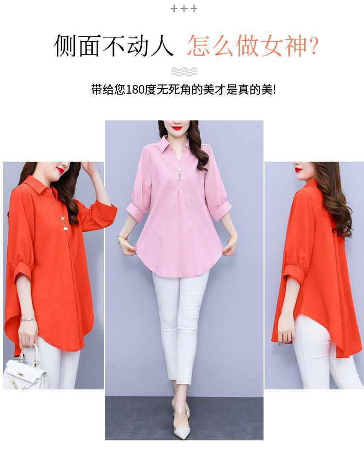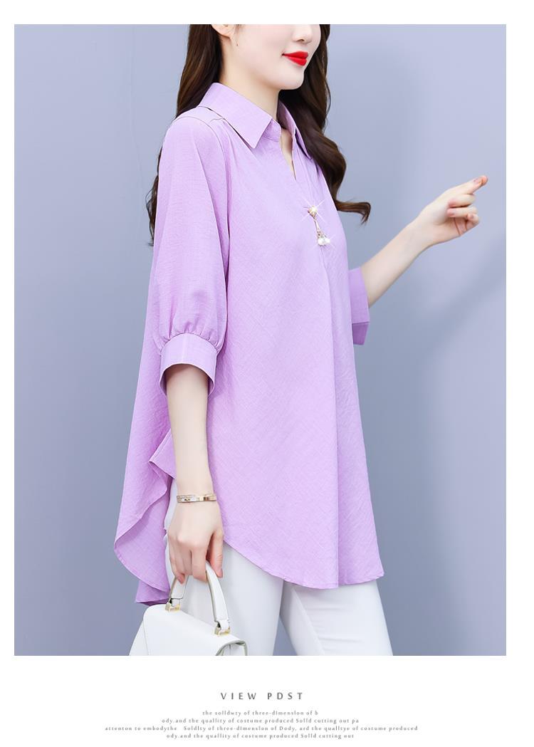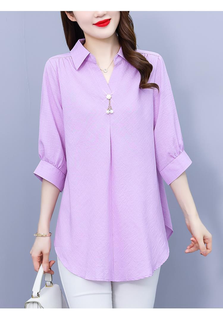 大码女装夏新款,胖mm简约V领显瘦遮肚子纯色上衣宽松雪纺衫潮KQL-E261N2238