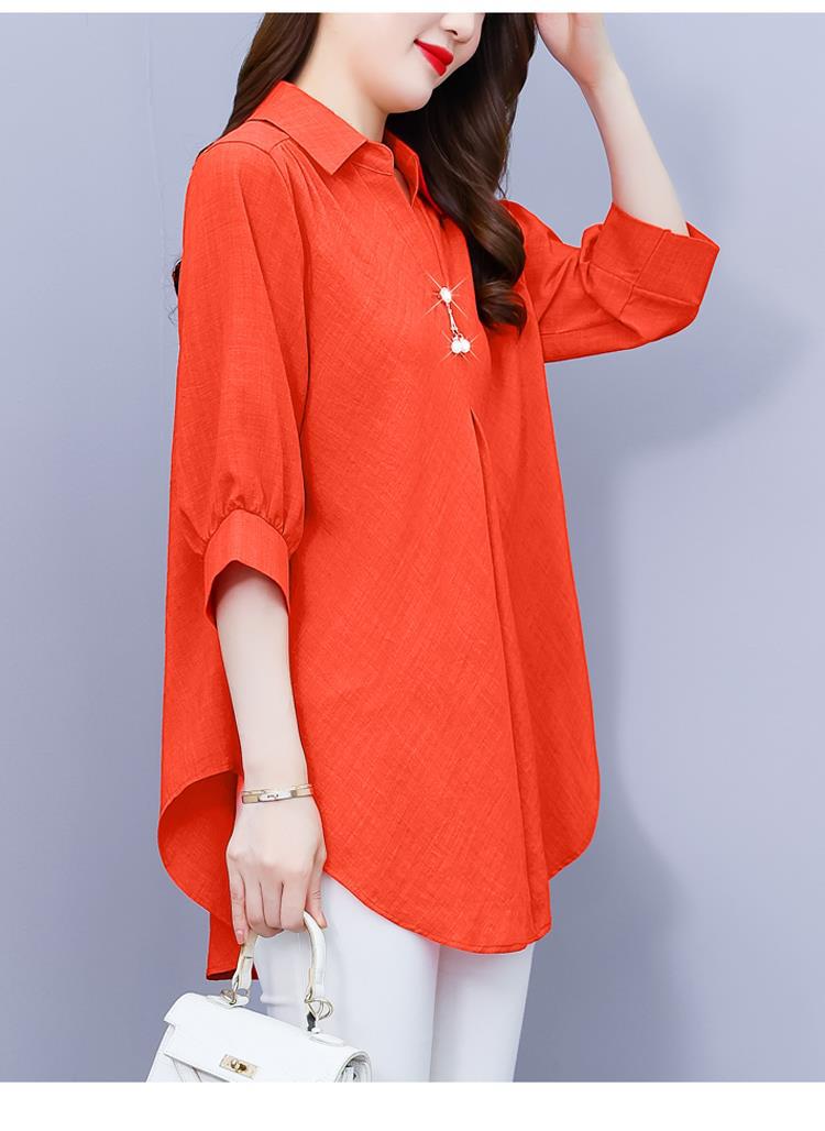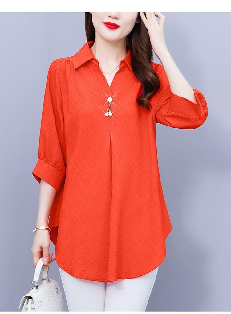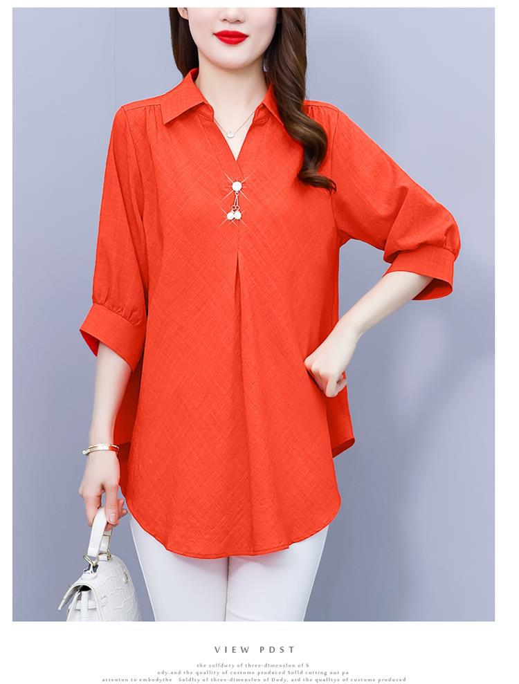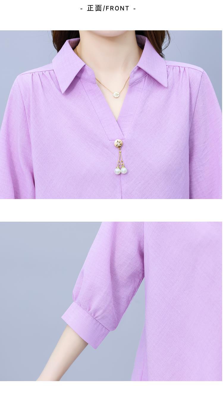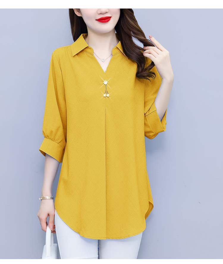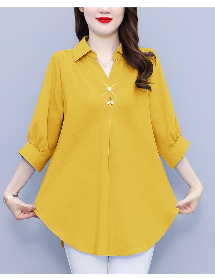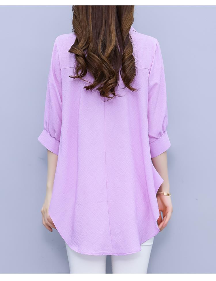 大码女装夏新款,胖mm简约V领显瘦遮肚子纯色上衣宽松雪纺衫潮KQL-E261N2238
