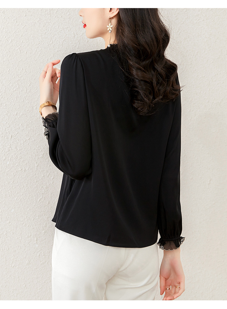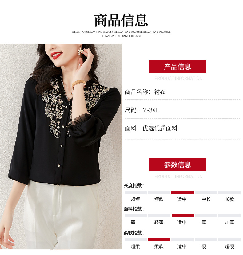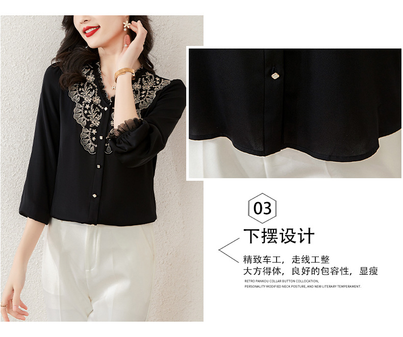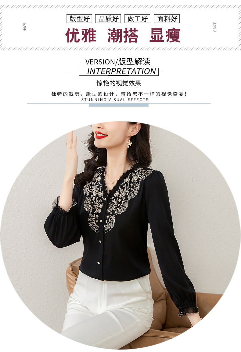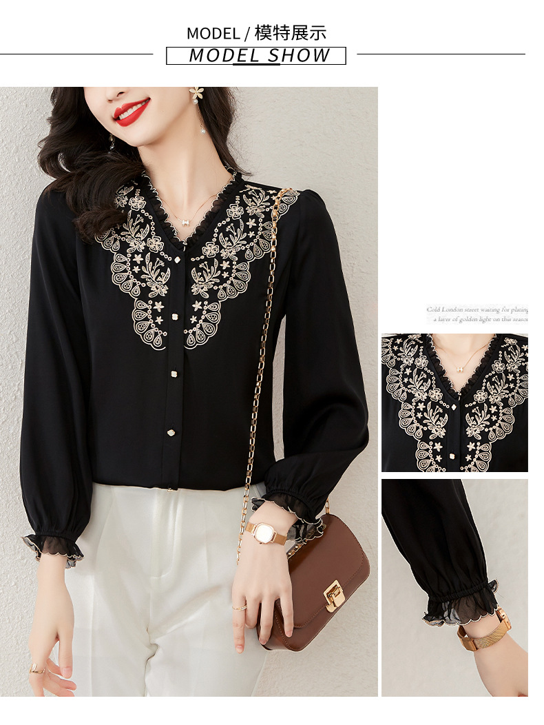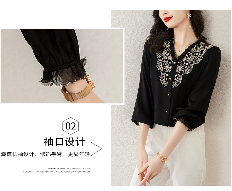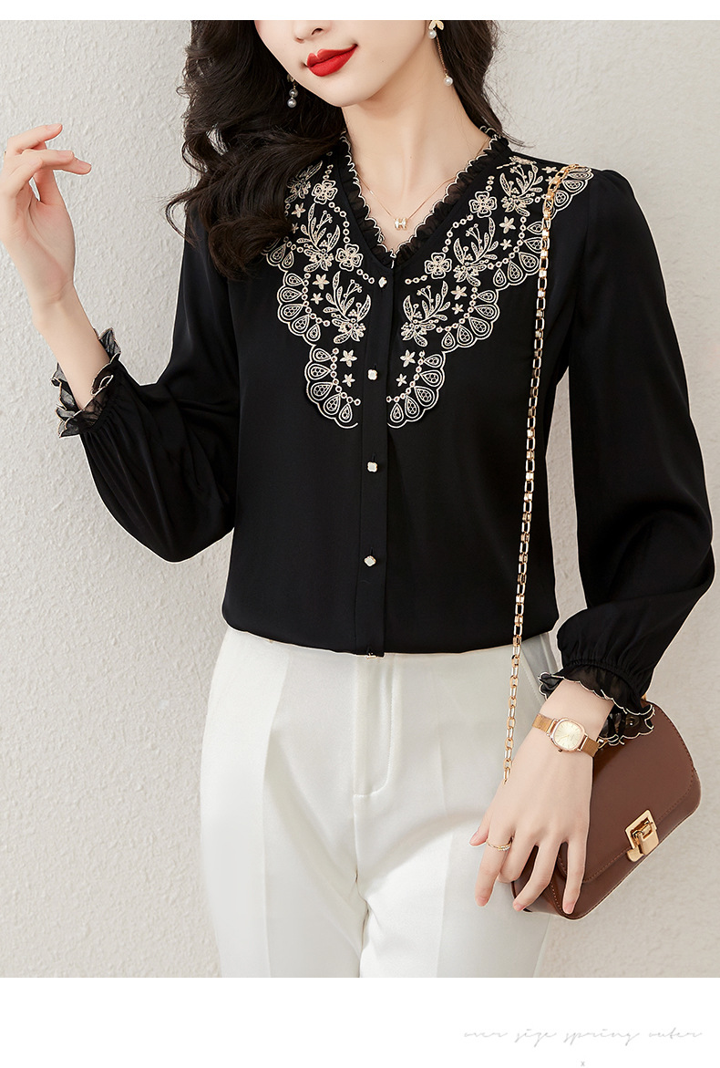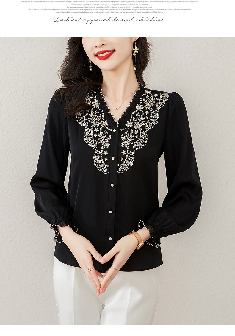 甜美女人味,木耳花边v领仿真丝刺绣小衫KQL-3068