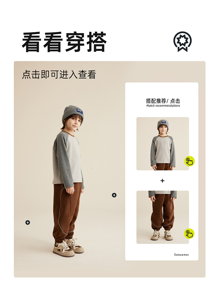 【亲子款 300g高克重】百搭拼色磨毛打底衫PDT2310