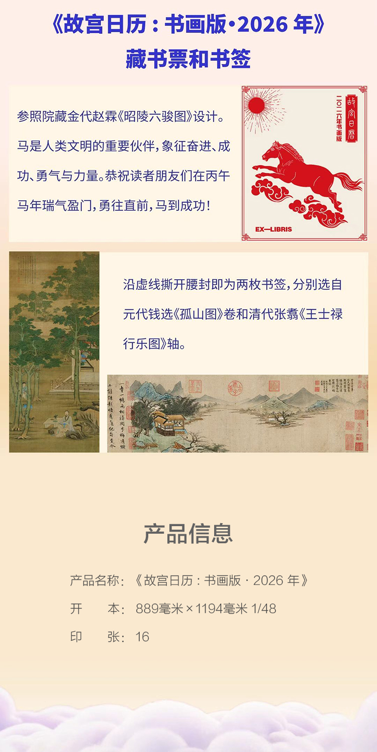 【故宫日历】2026年《故宫日历》书画版 随书附赠徽章 书签 藏书票