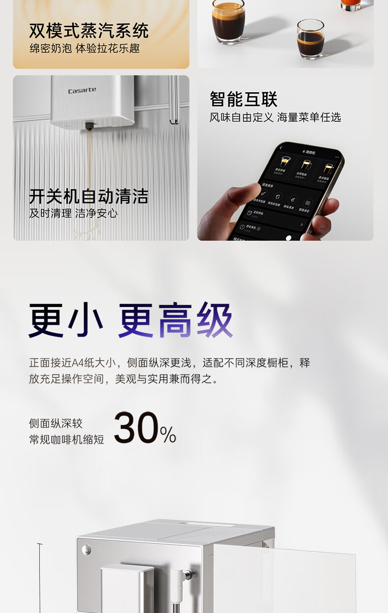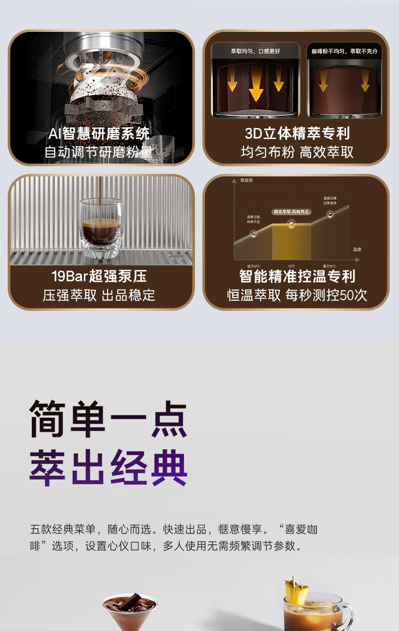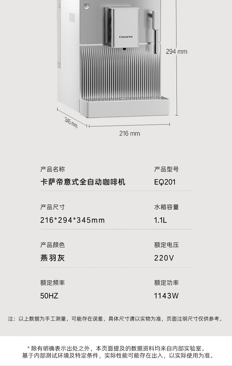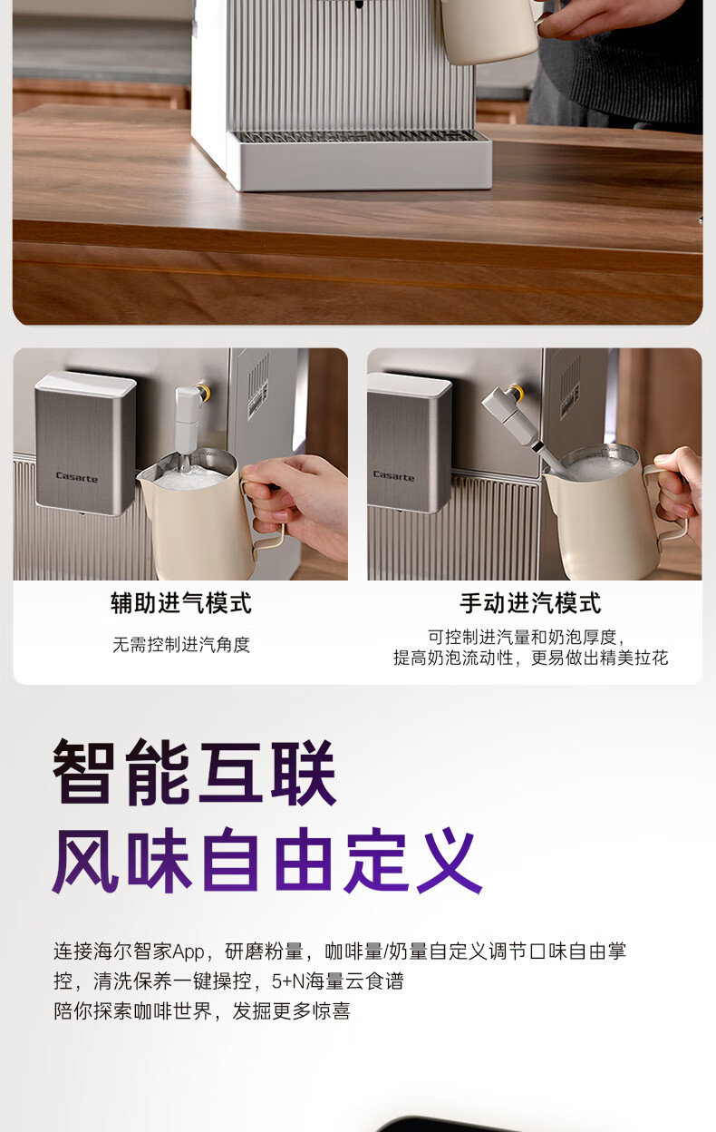 【金杯mini】海尔卡萨帝小型家用意式全自动智能咖啡机现研磨一体AI智萃19bar泵压研磨自动奶泡家用咖啡机EQ201L