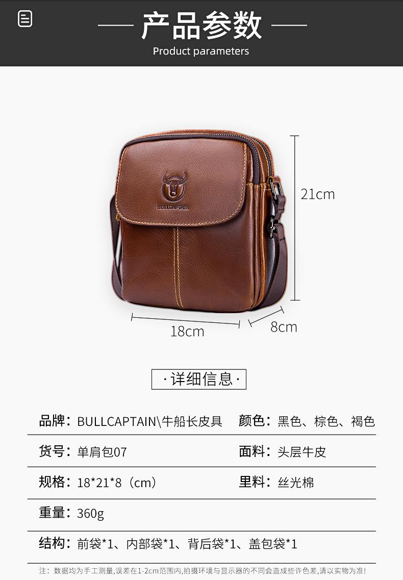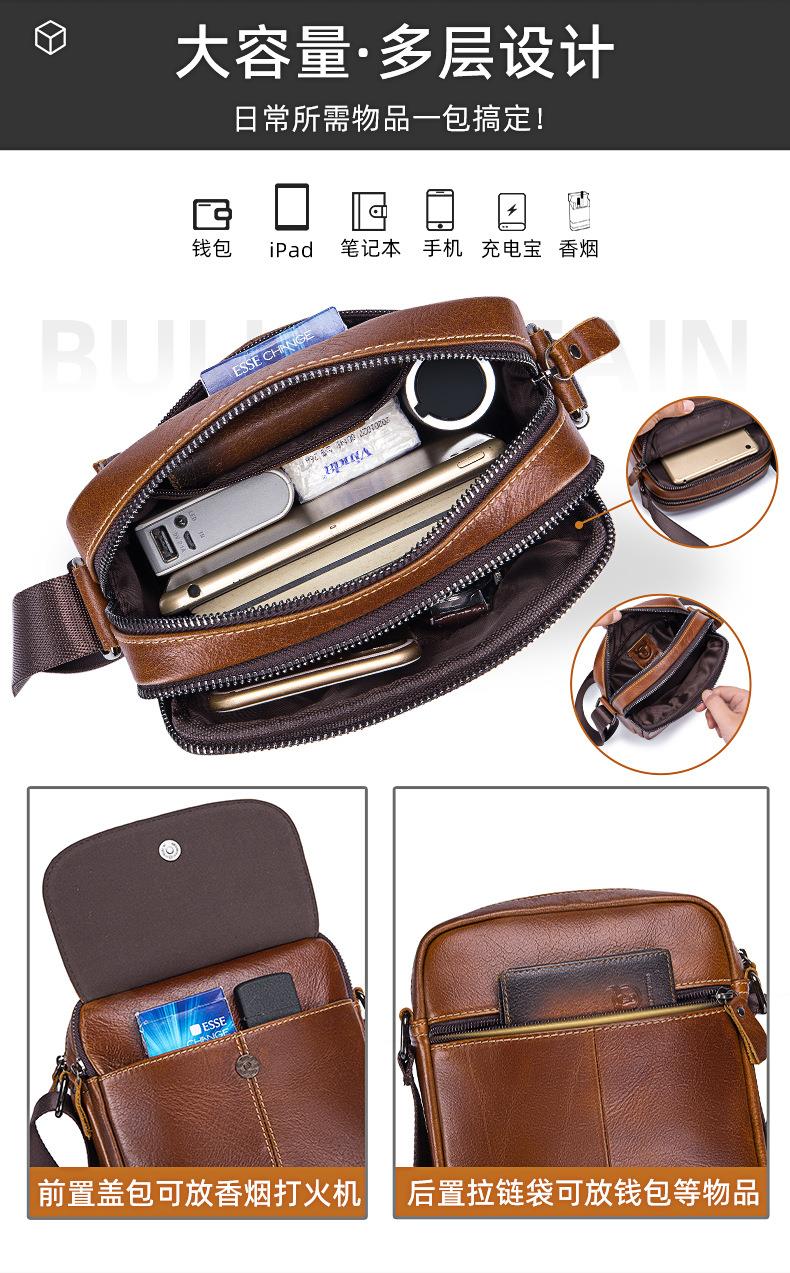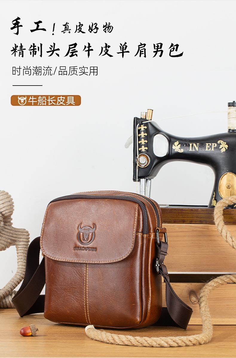 牛船长男士真皮单肩斜挎休闲街头潮流韩版青年盖头牛皮运动小包包