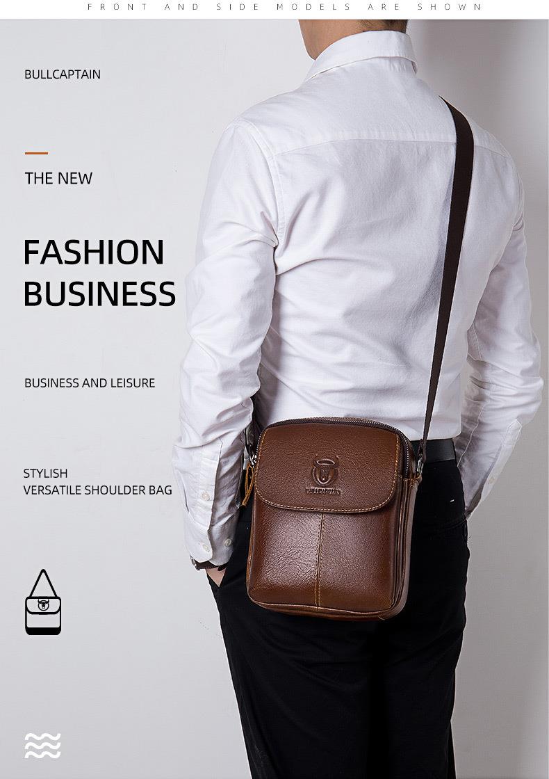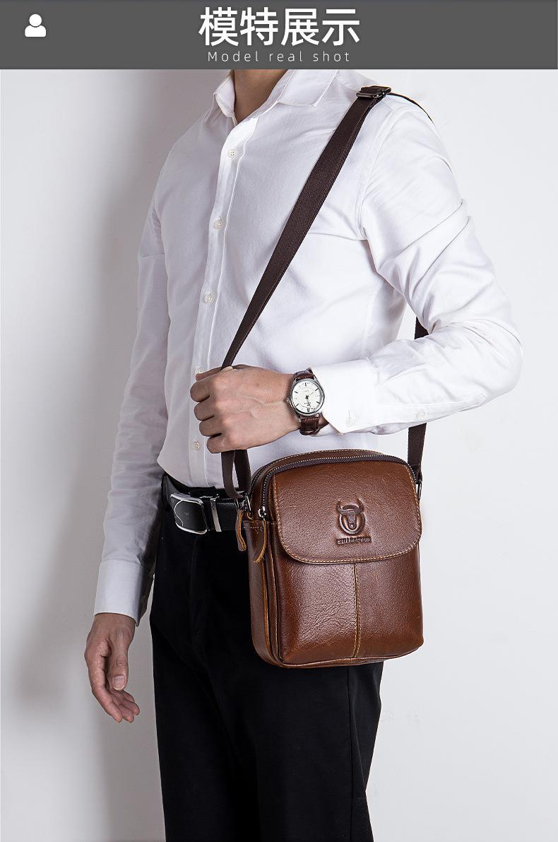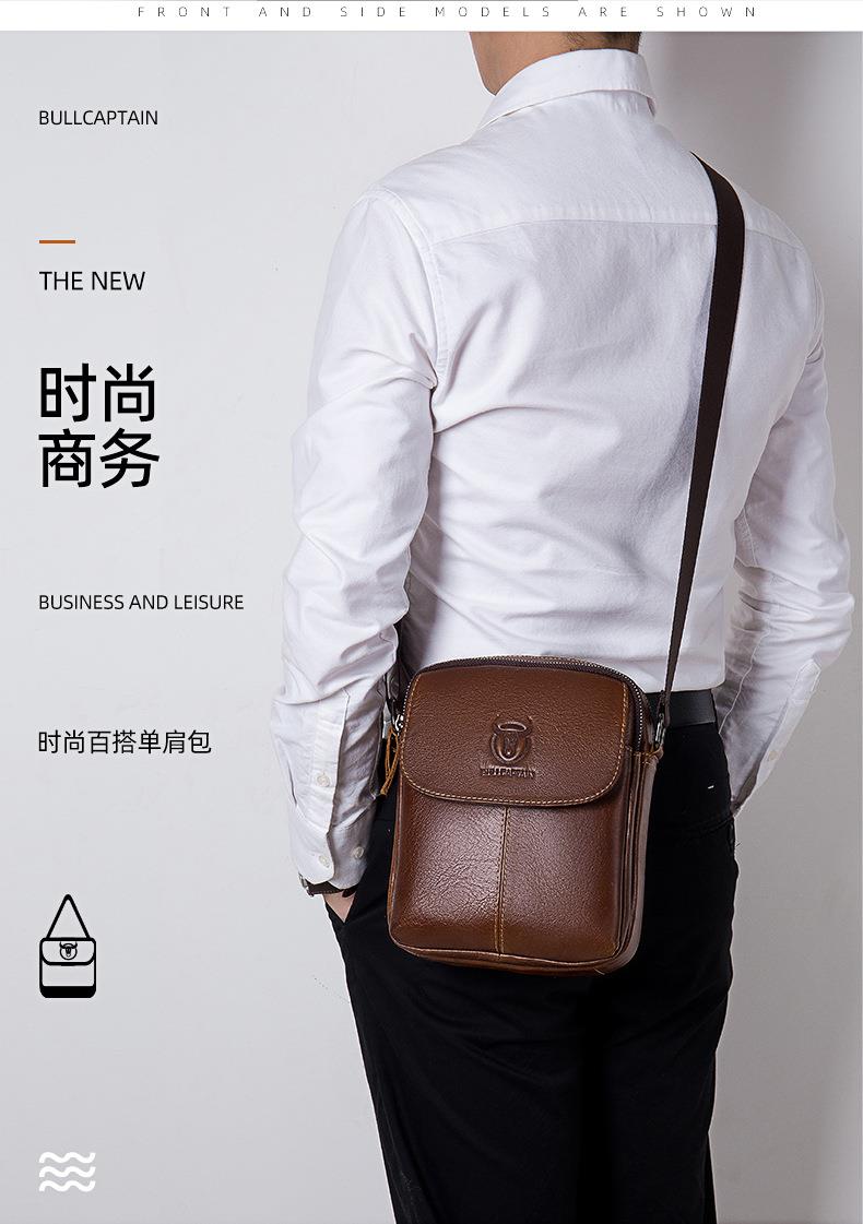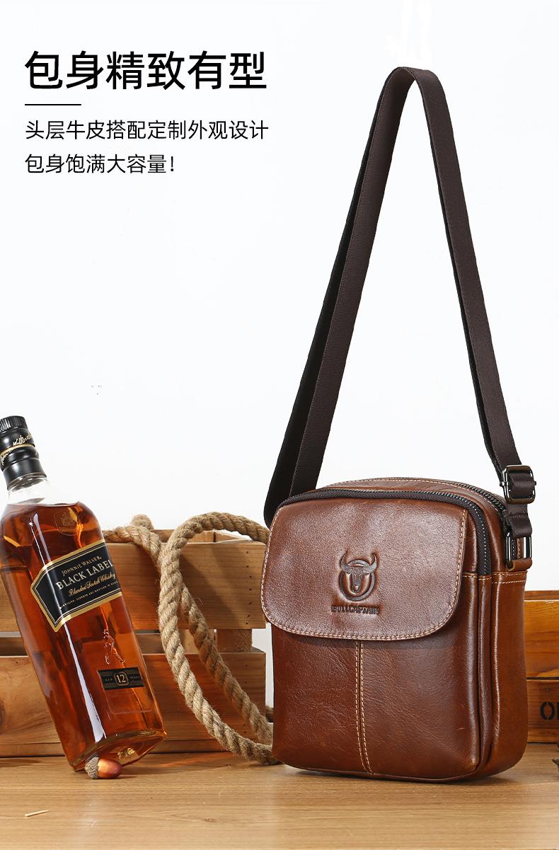 牛船长男士真皮单肩斜挎休闲街头潮流韩版青年盖头牛皮运动小包包