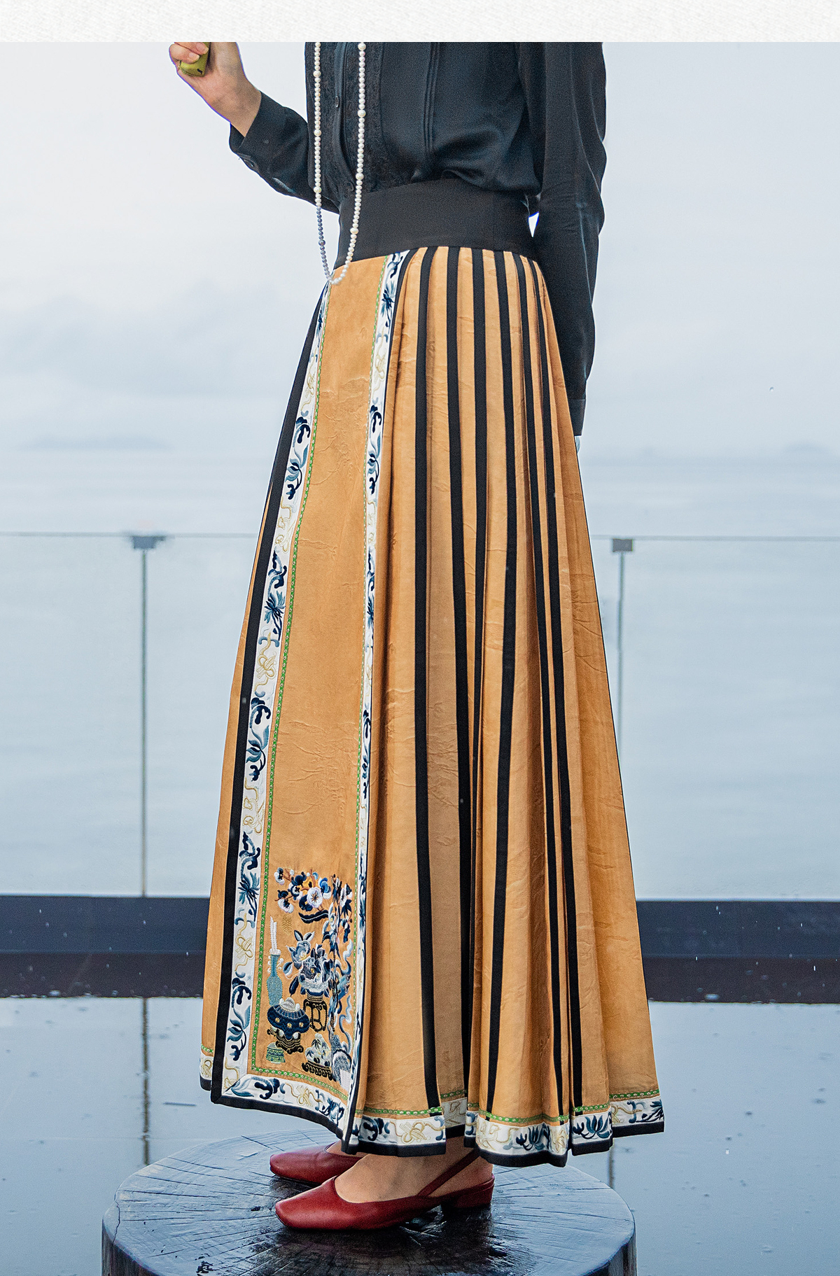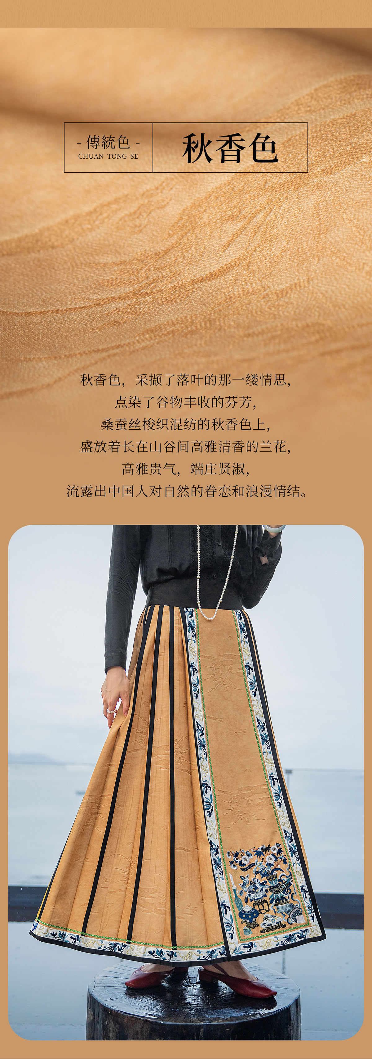 【林栖设计小店】【现货】【植物染】生活在左绣花改良马面裙高腰气质复古国潮2023秋冬新品半身裙女1933202