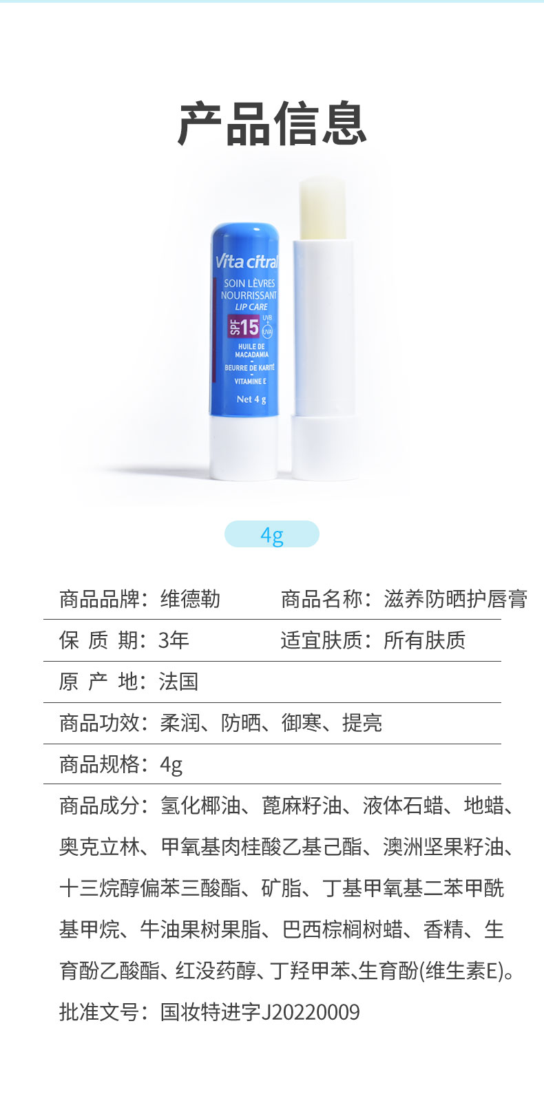 维德勒滋养防晒护唇膏