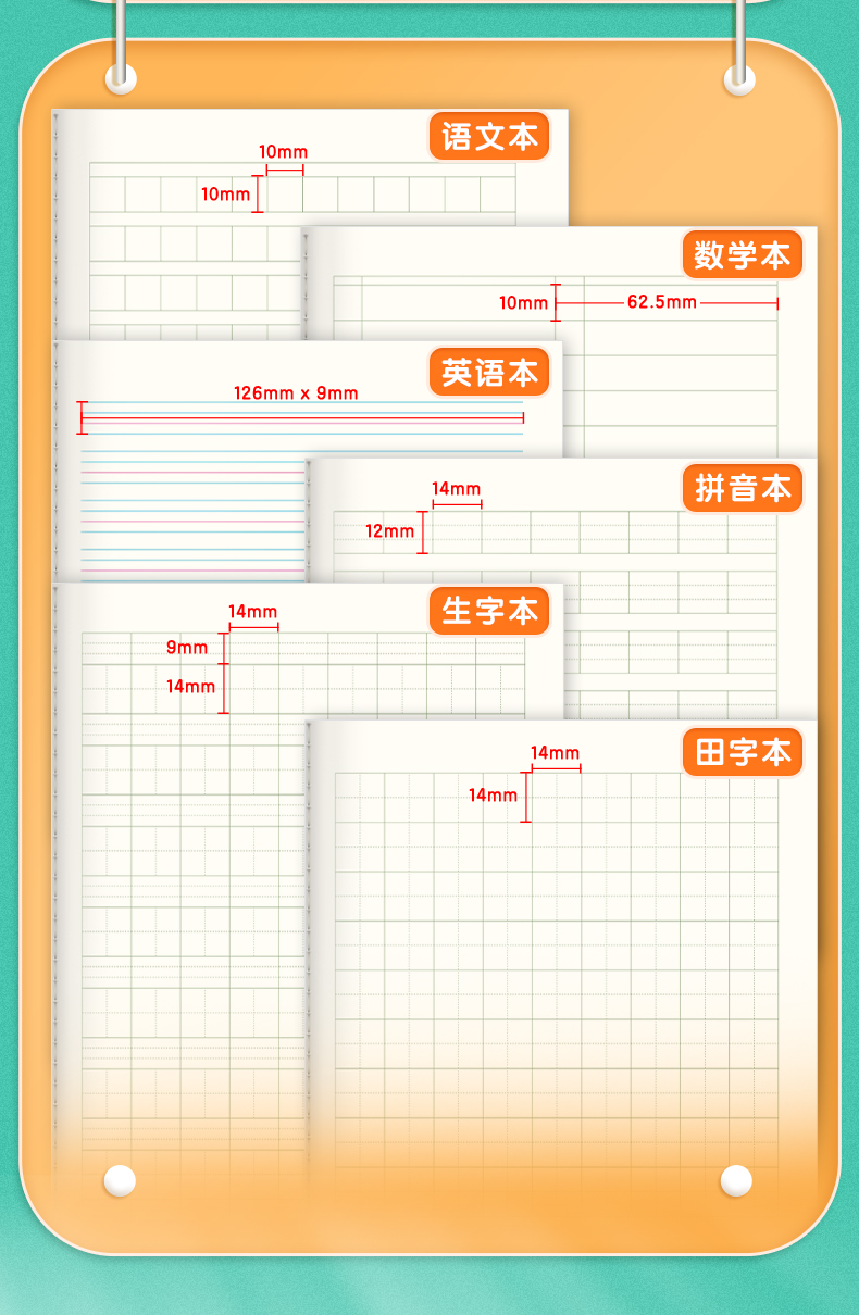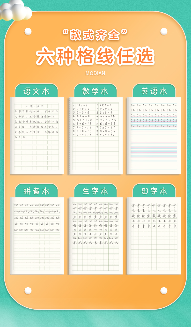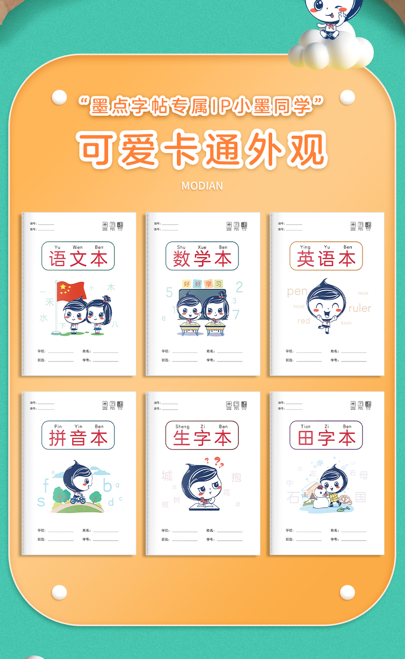 墨点文创 作业本 小学生田字格语文本数学本英语本生字练习本多种可选幼儿园标准拼音本笔记本一二年级统一作业本