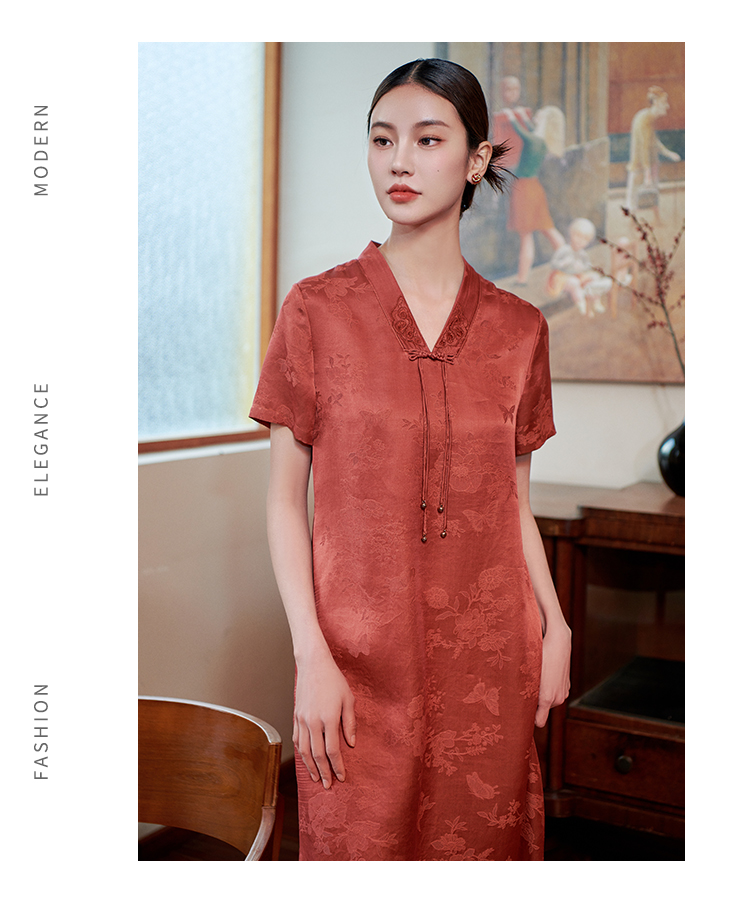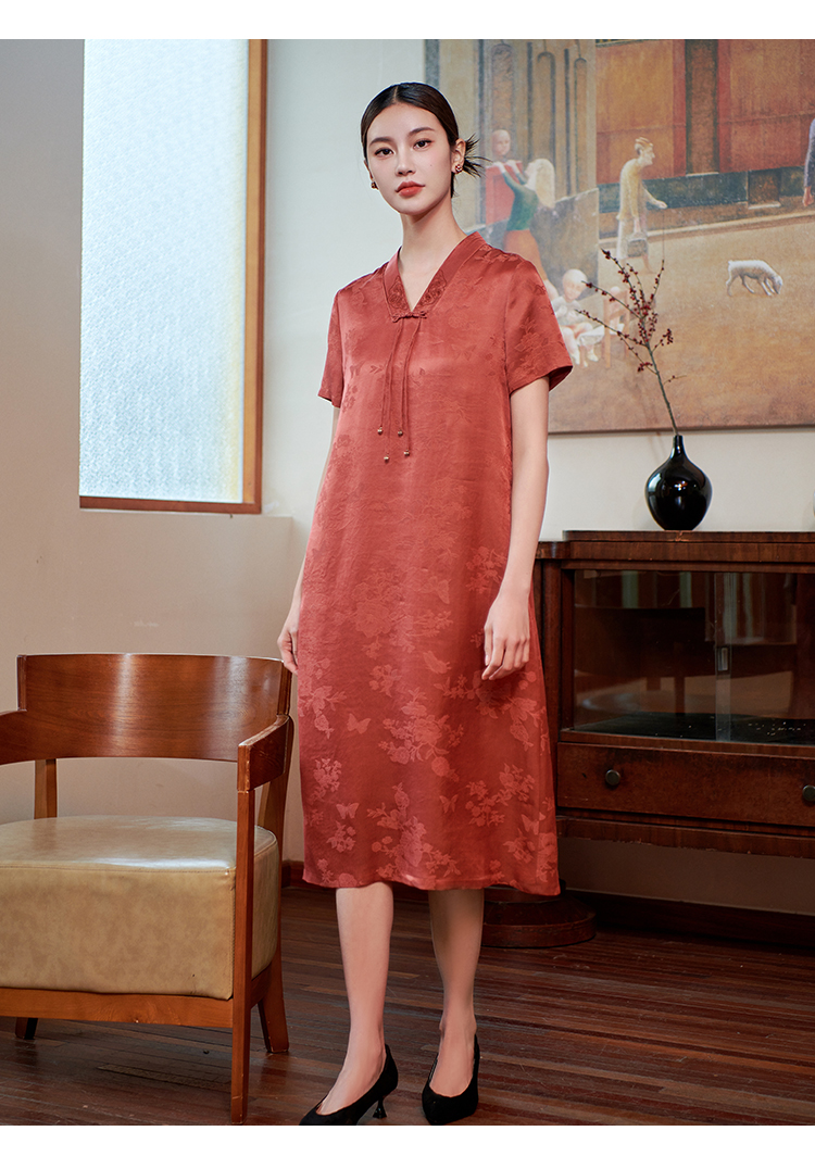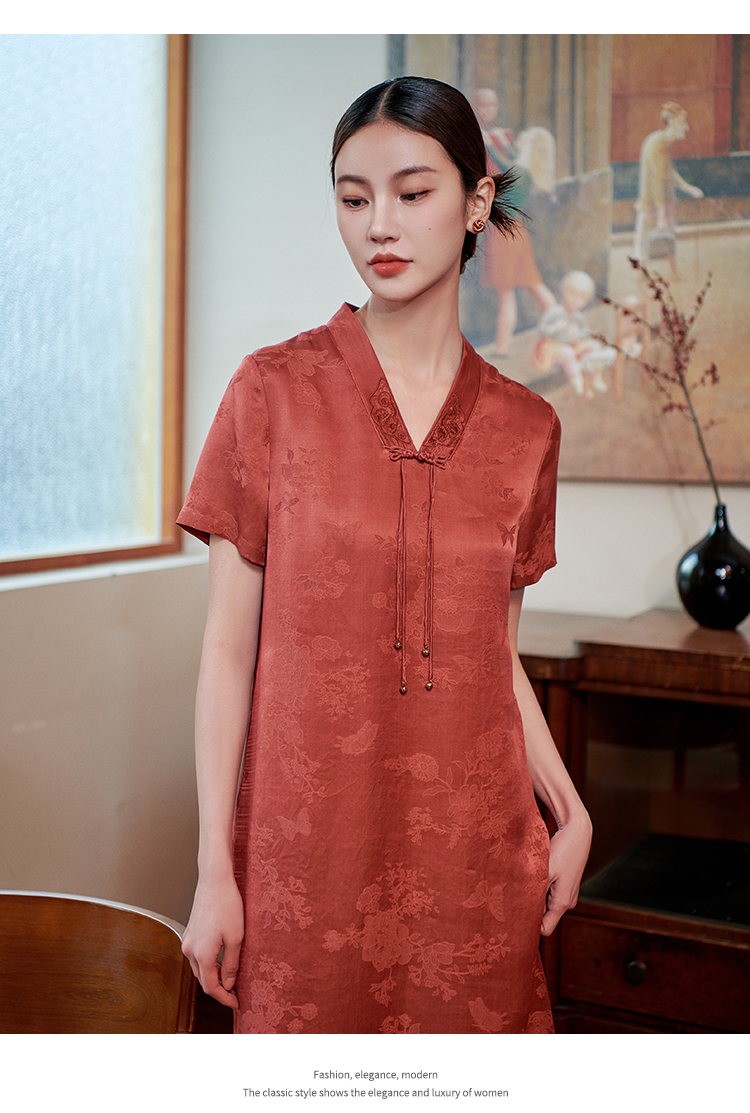 夏季新款 气质新中式国风莨绸100%桑蚕丝连衣裙女M42LS19