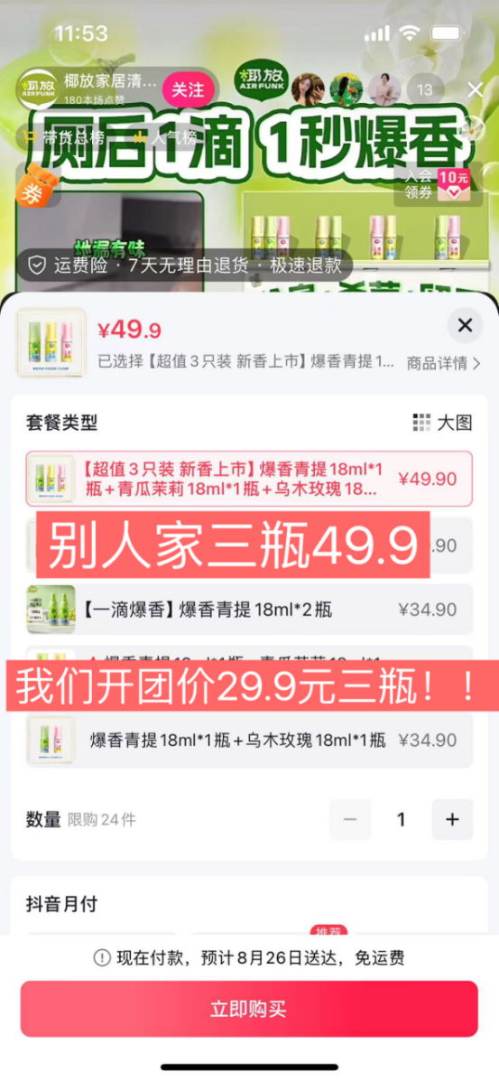 别人家三瓶49.9❗❗ 我们开团价三瓶29.9元 超划算~