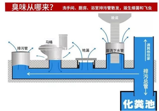 最可怕的并不是臭味 而是细菌的传播🦠 异味主要是来源于污垢的废水和污水 这里面有各种各样的细菌 有些细菌经呼吸管道进入人体 是对人体有害的 所以长期呆在环境不佳的 身体也容易出现各种病症