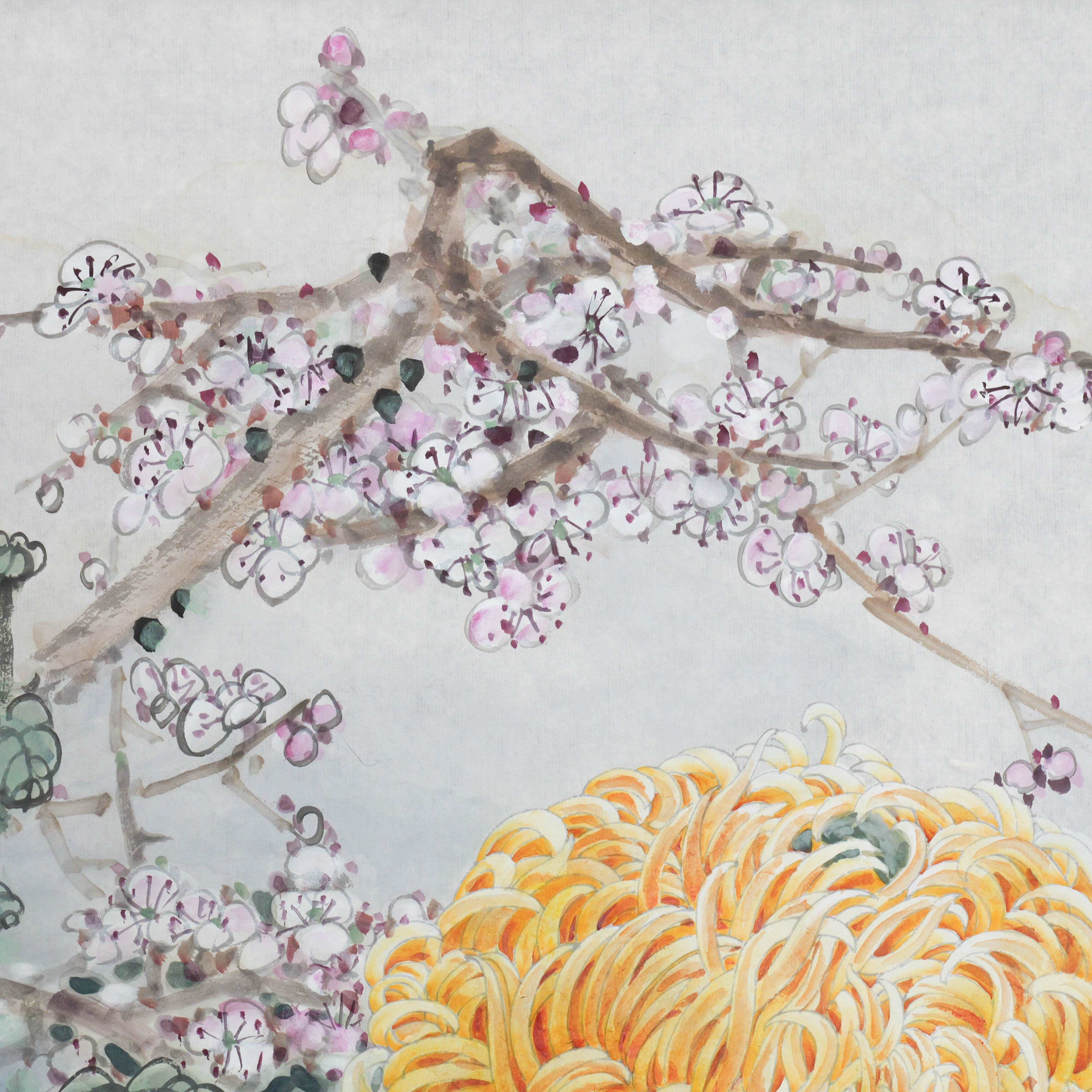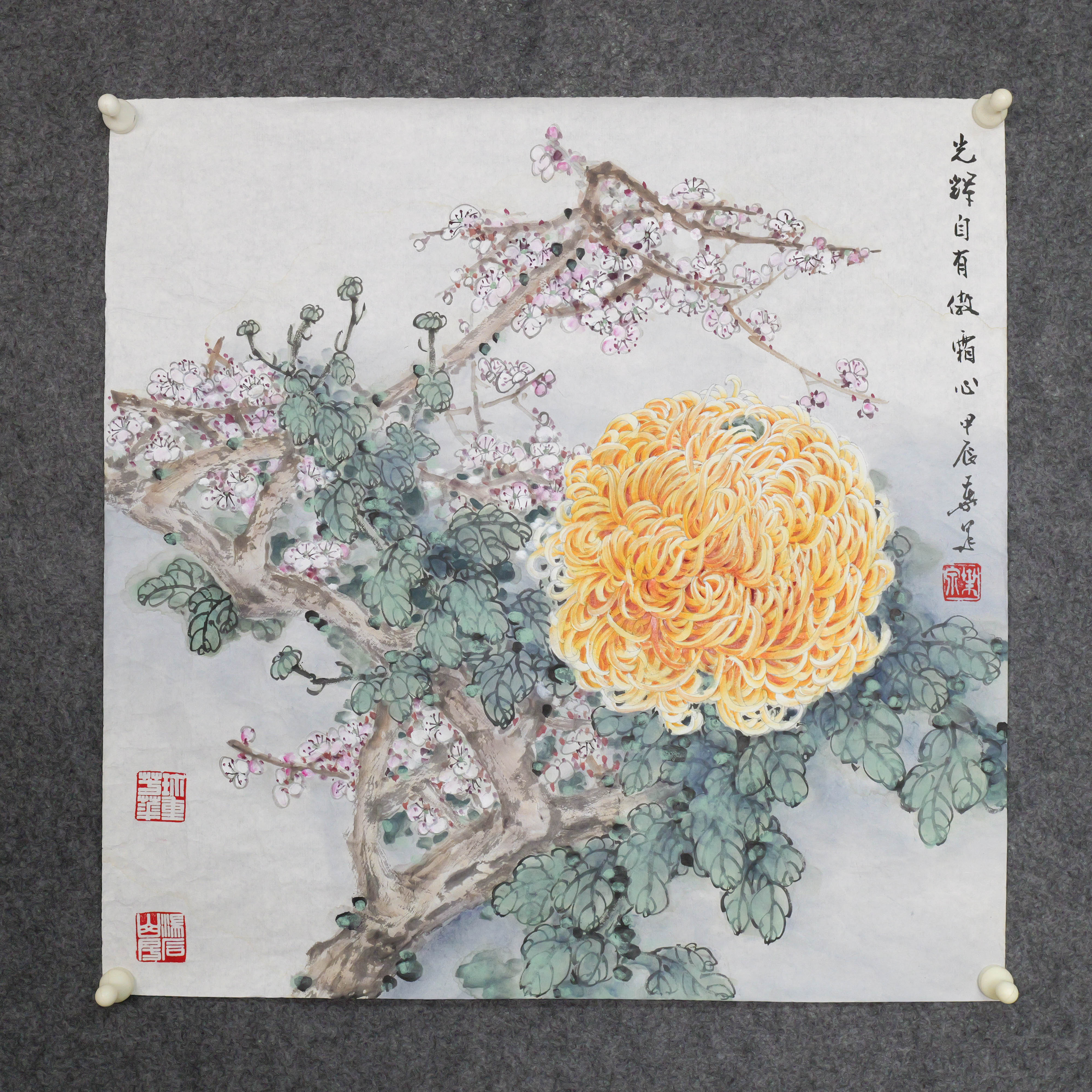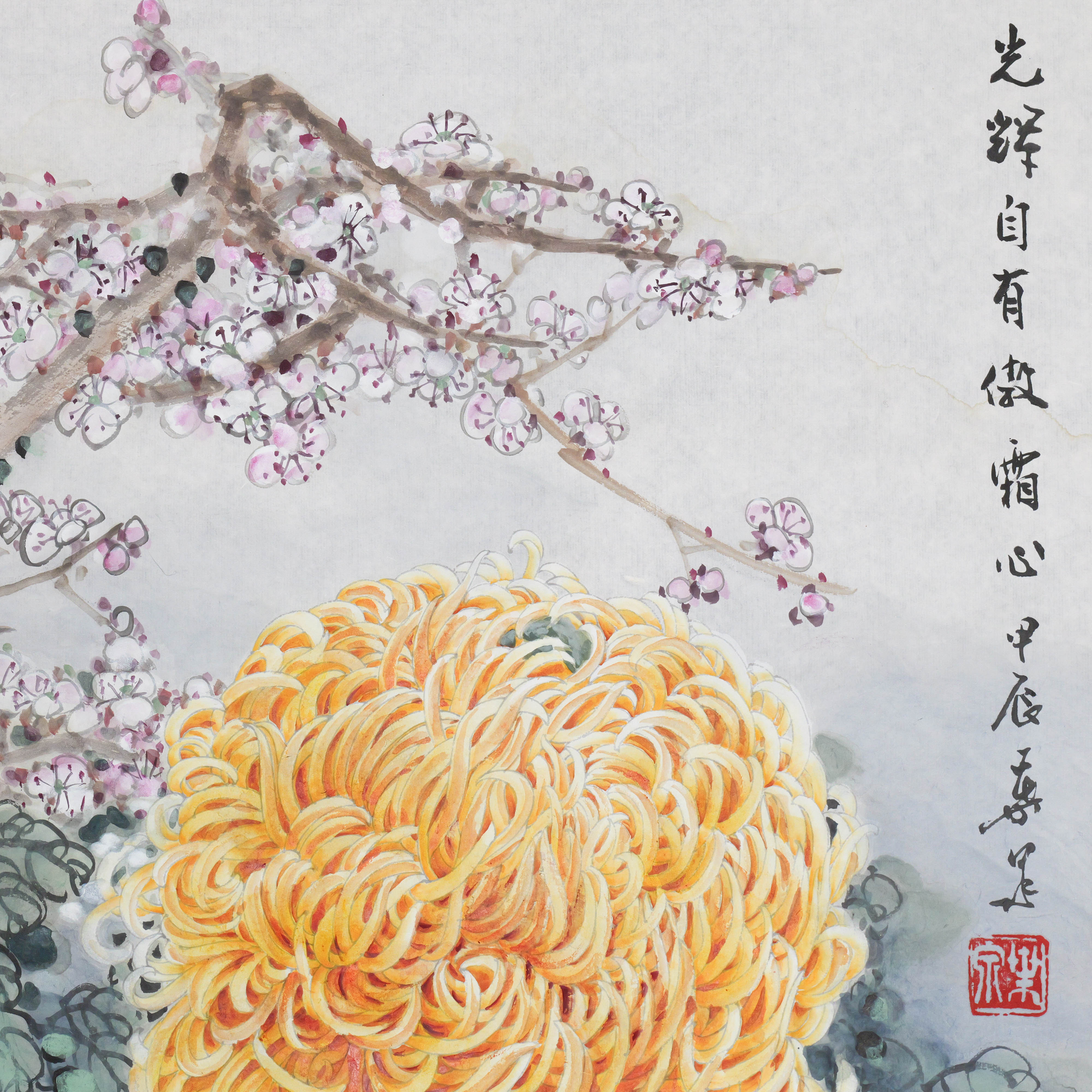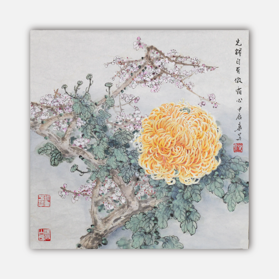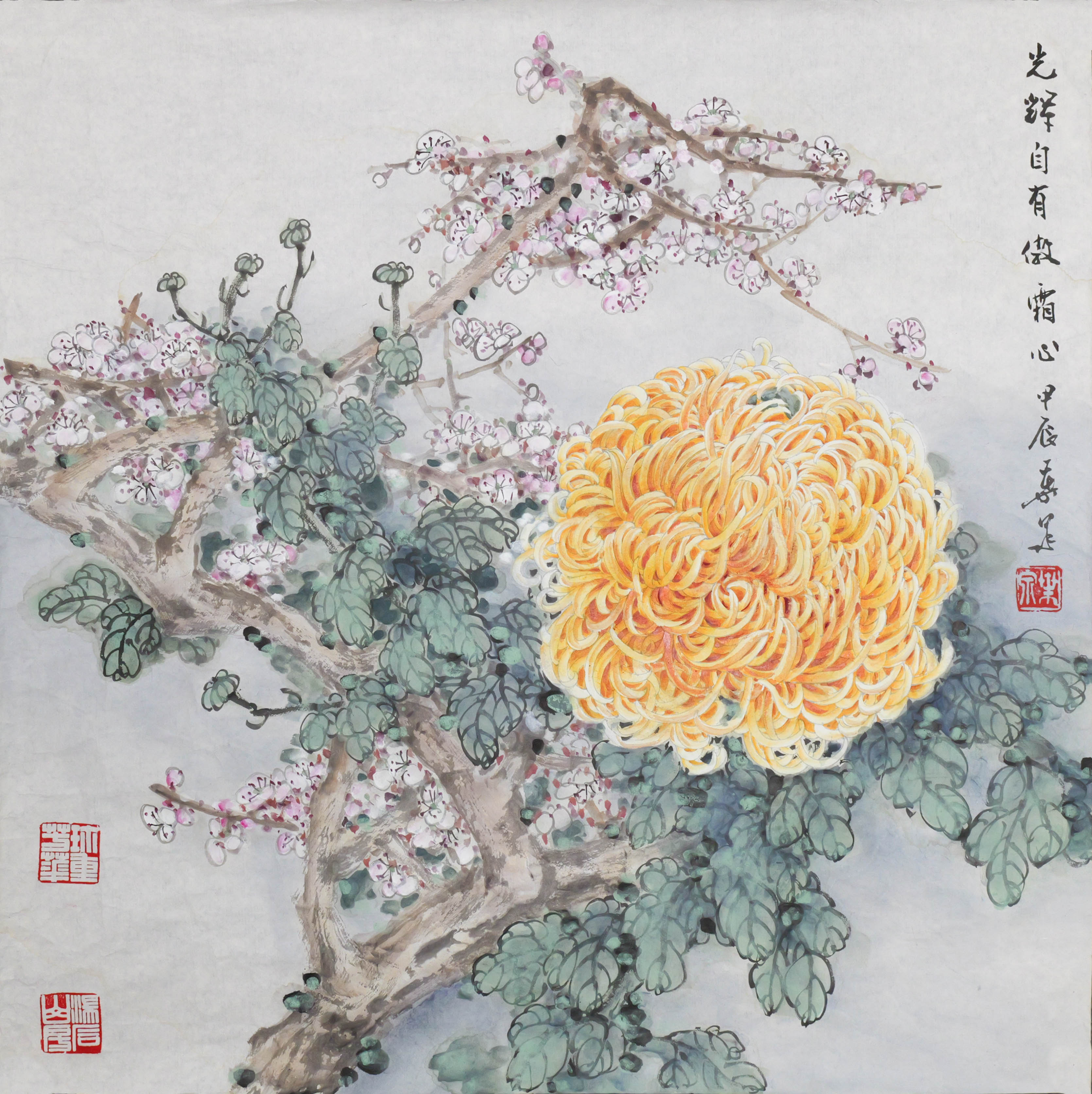 叶泉《光辉自有傲霜心》国画原作68CM*68CM 手绘宣纸花卉作品