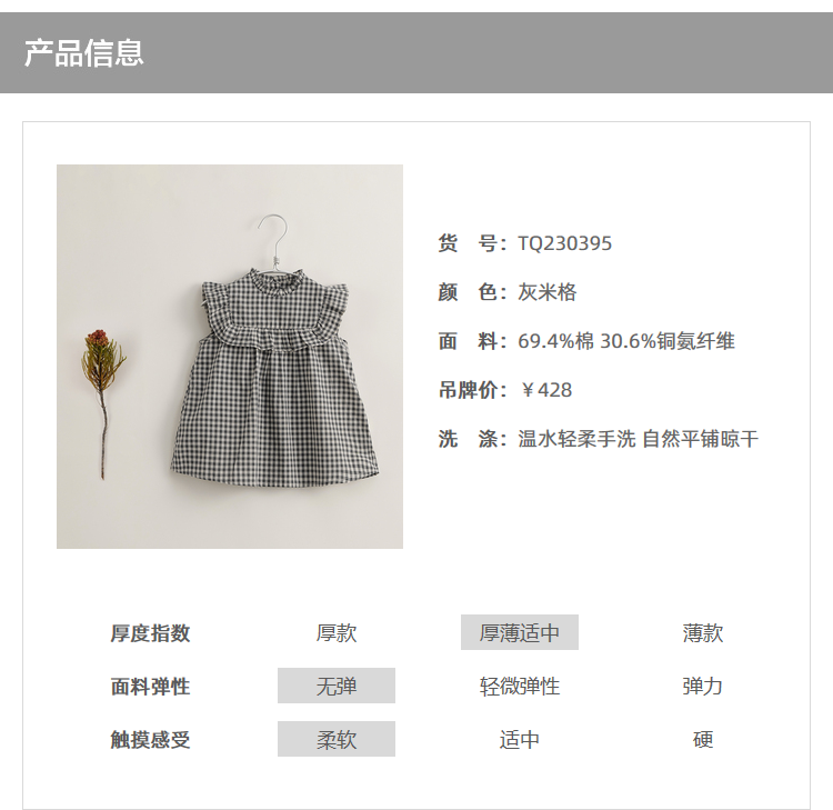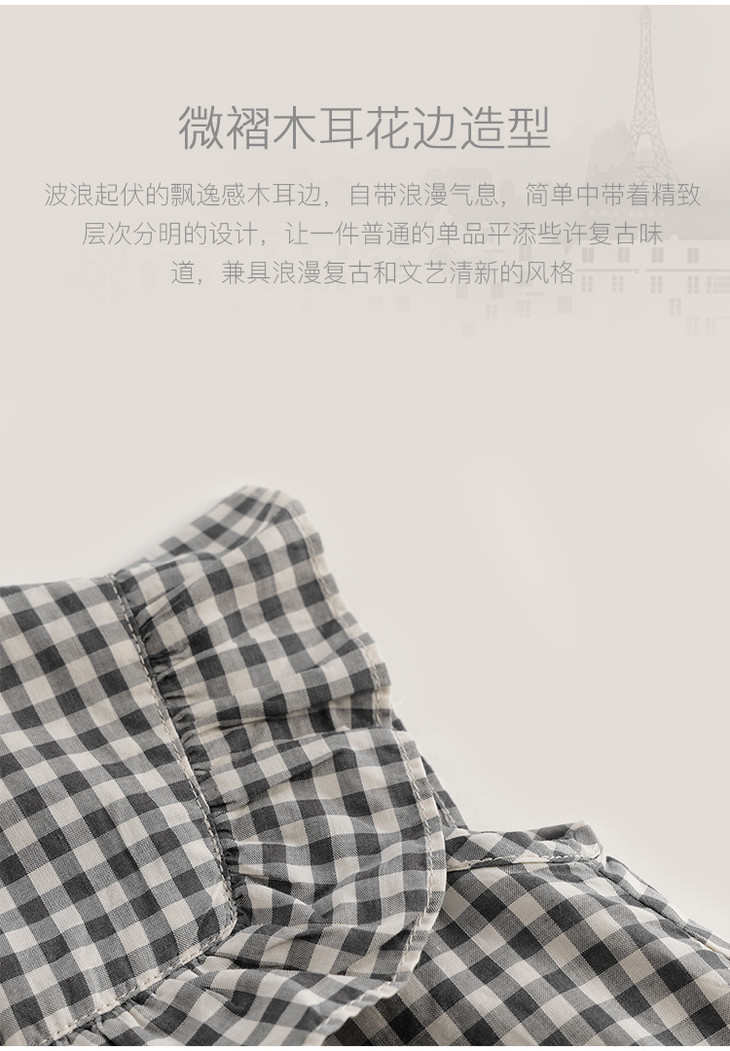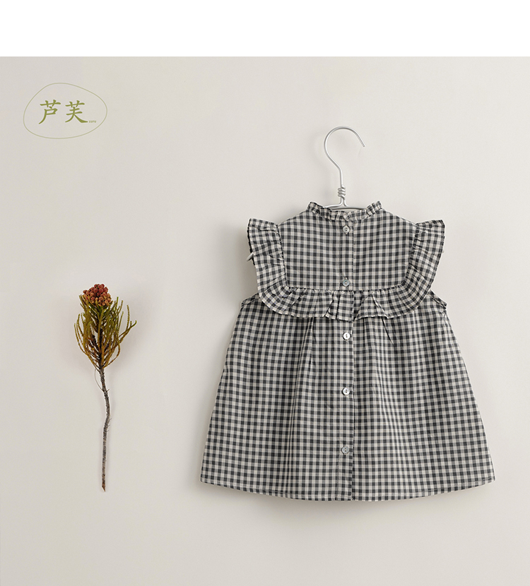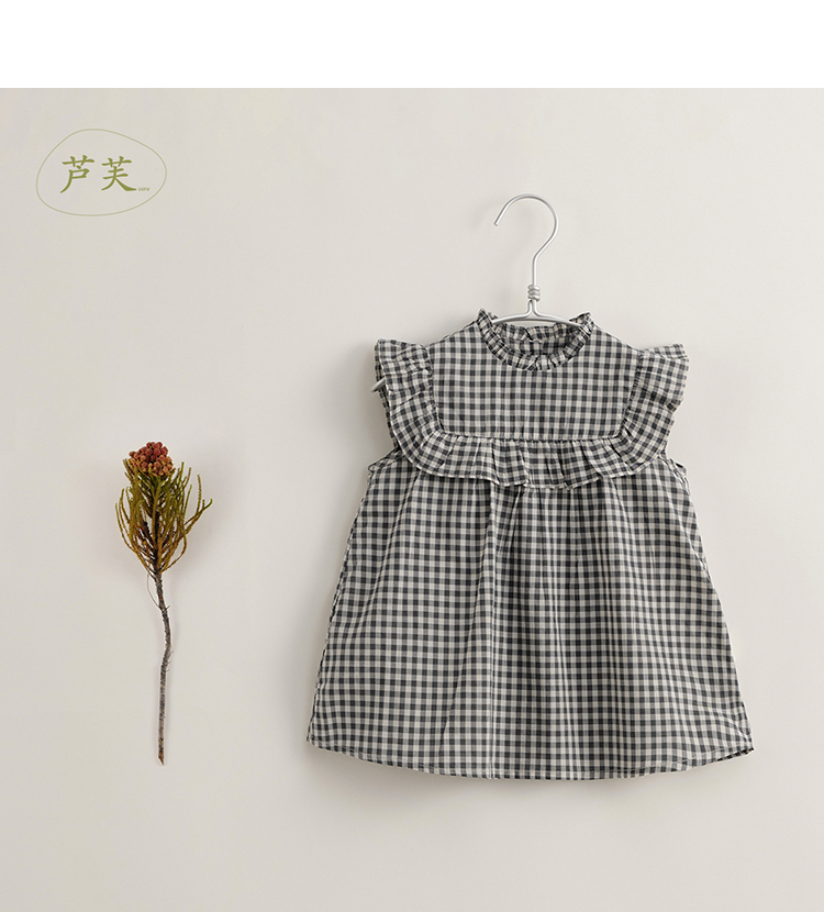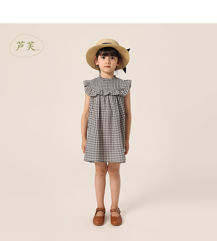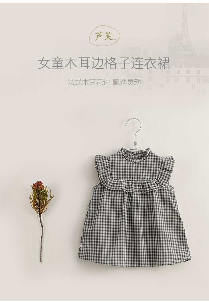 【马克珍妮 芦芙】夏装新款 女童法式木耳边格纹连衣裙230395