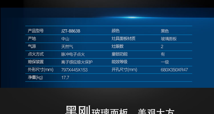 华帝(508698 )(vatti) JZT-B863B 燃气灶 大火力 黑色