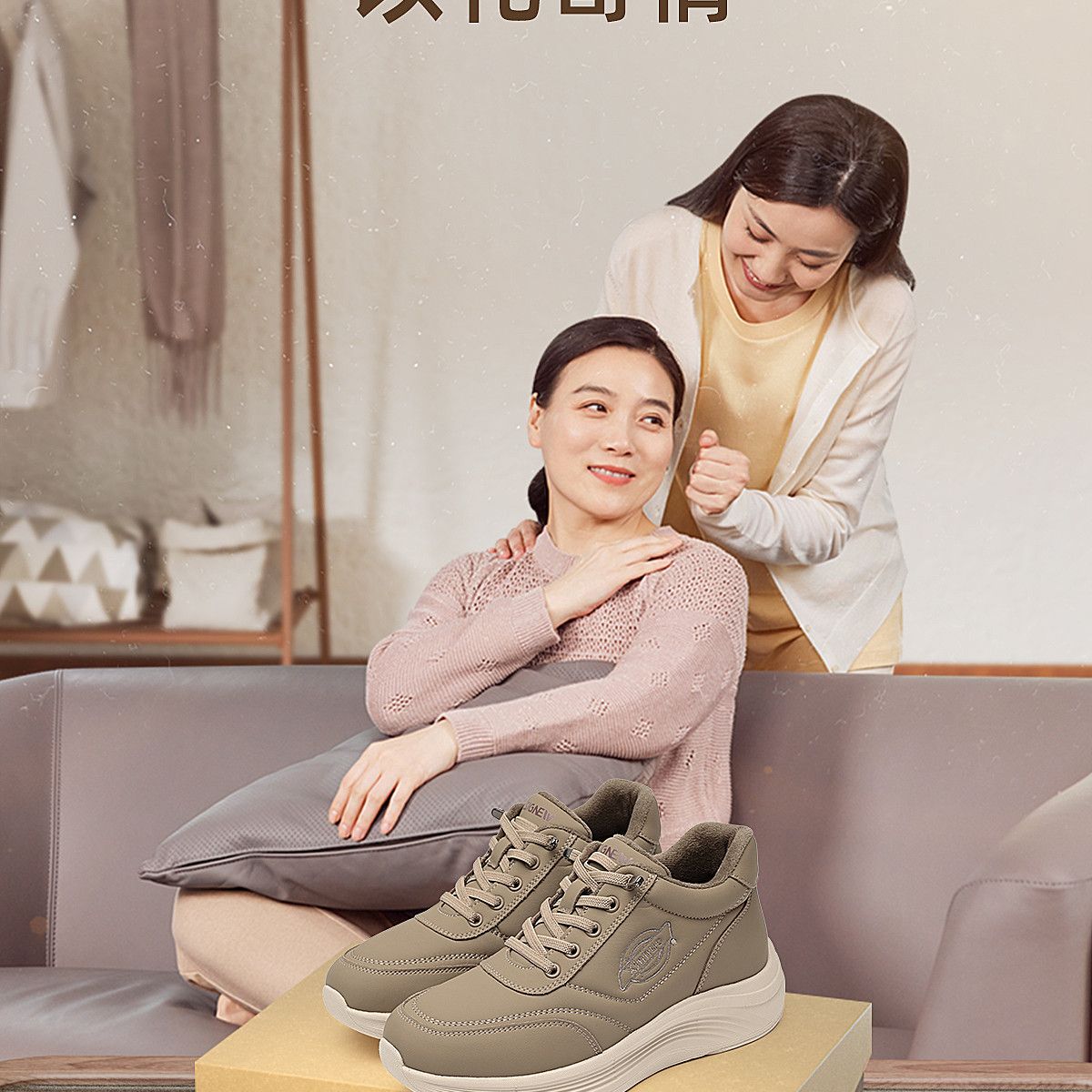 信诺舒适轻便妈妈鞋加绒软底运动鞋子2025新款冬季保暖中老年棉靴5M125-11TD