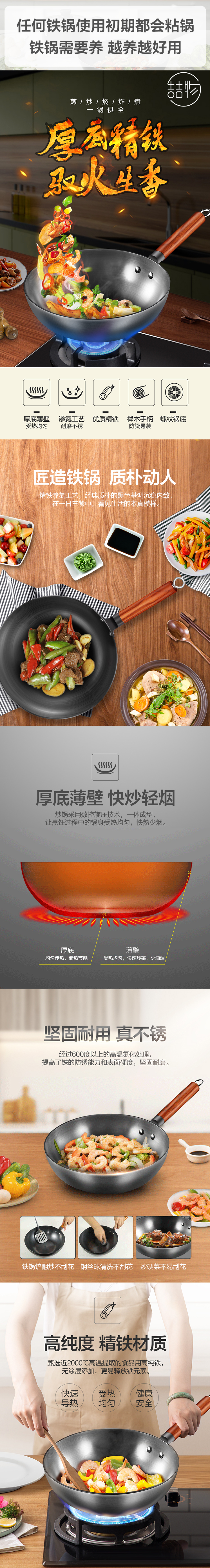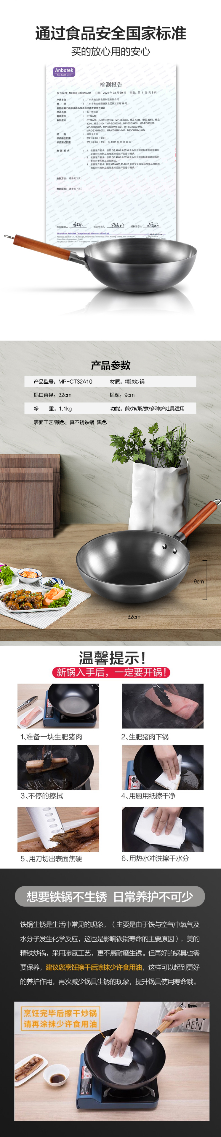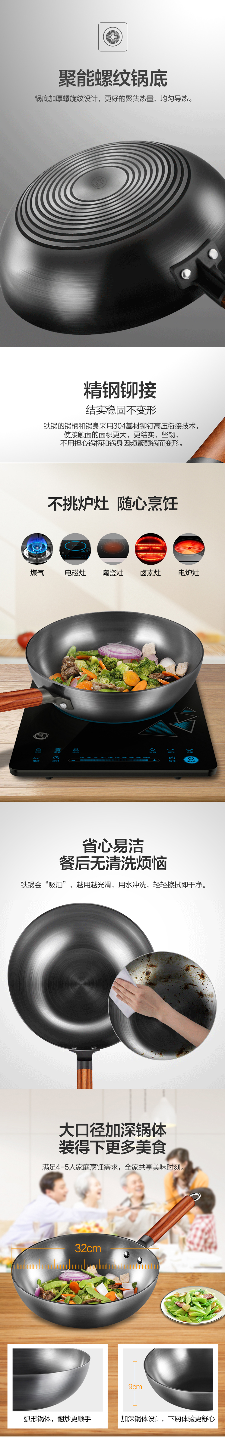 美的(509531) 炒锅铁锅炒菜锅 32cm无涂层聚油爆炒精铁锅 中式家用不易锈带盖燃气电磁炉通用 MP-CT32A10 喆物系列